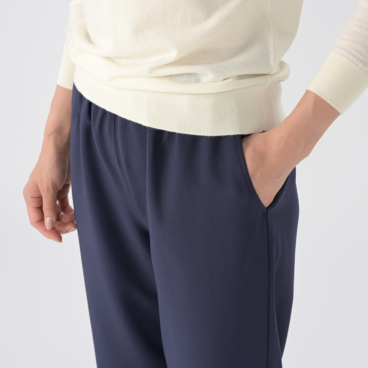 動きやすく楽な穿き心地で、作業パンツとして古来から親しまれてきたモンペスラックス。本品は日本製にこだわり、備後福山で生産したもんすらパンツで、ラクさとは裏腹に、スタイリッシュなシルエットです。ウエストは総ゴム仕様で深めの股上設計なので、ウエストから下にかけてしっかり包み込みます