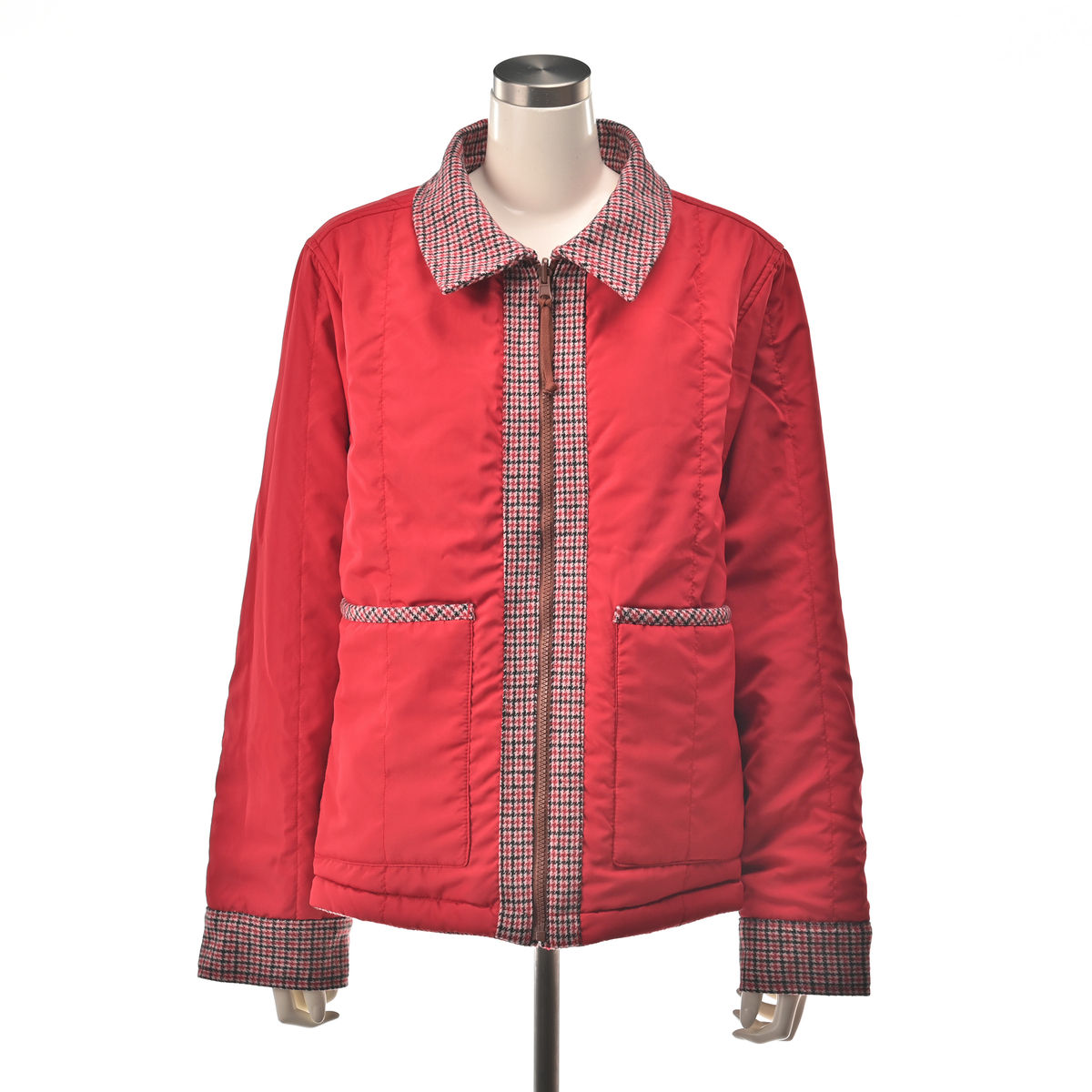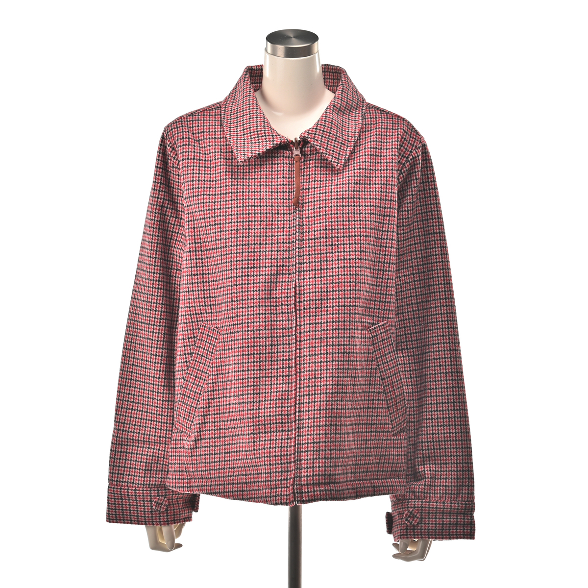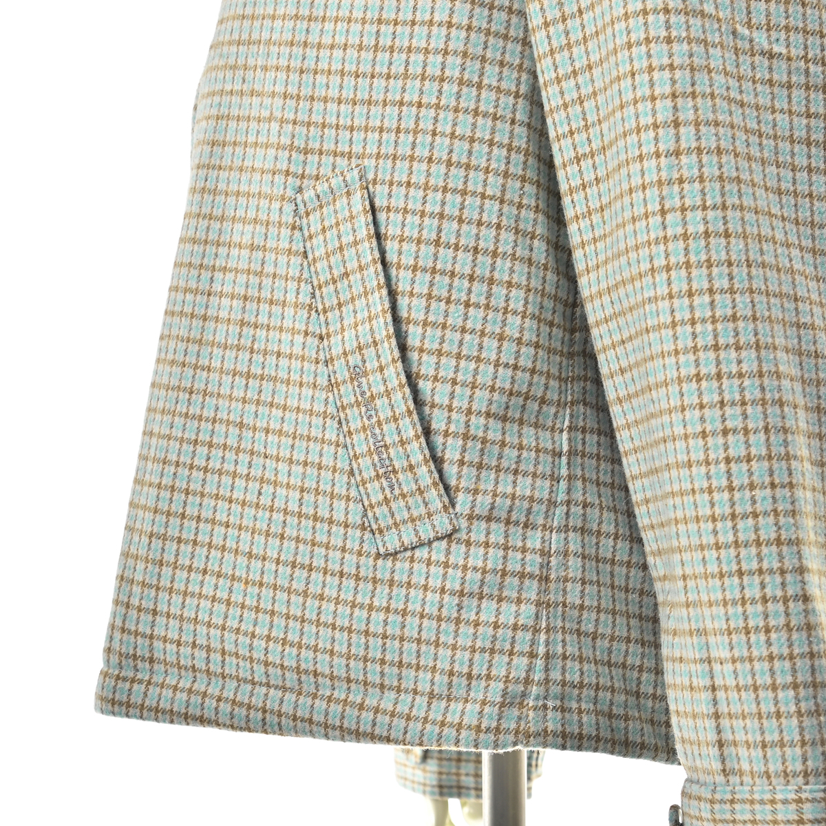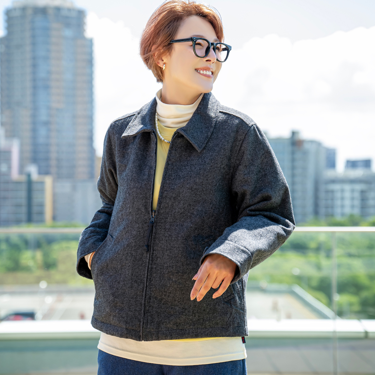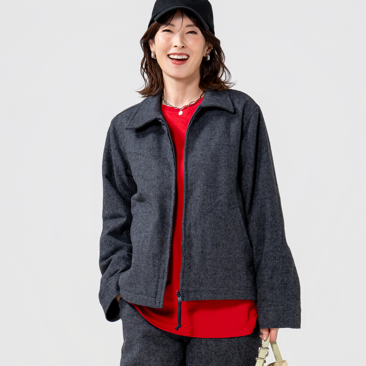 クラシカルなポリエステルウール混の布帛素材を表側に使用したショート丈ブルゾンです。フェミニンな配色カラーで仕上げたチェック柄と、ツイル素材で落ち着いた色合いの単色カラーをご用意。美しいカーブのステンカラーや程良いゆとりのシルエットで、トレンド感のあるカジュアルな着こなしをお楽しみいただけます