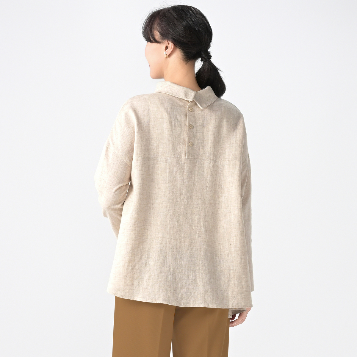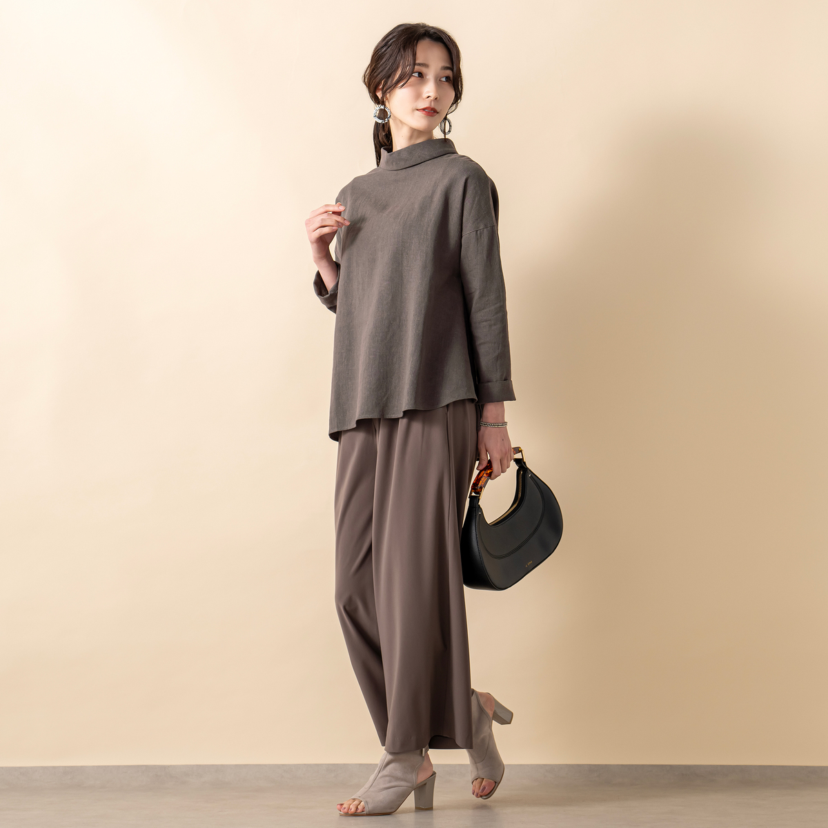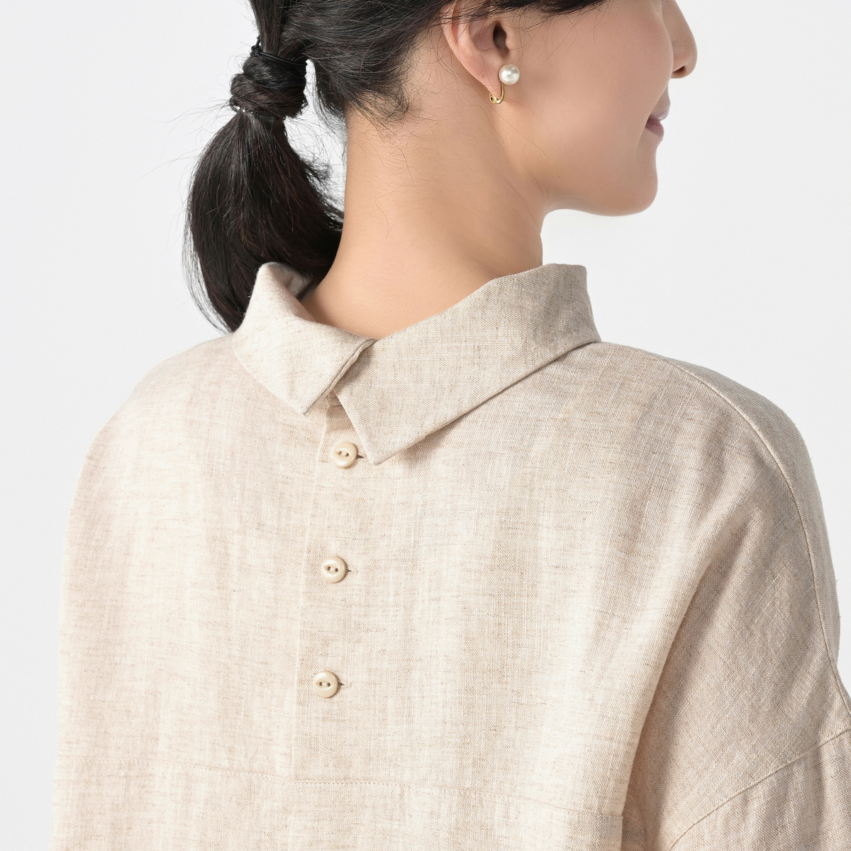 麻素材のドライな肌触りに再生繊維の柔らかさが加わった、着心地の良い麻混素材の2wayブラウスです。スラブ糸の優しい凹凸がナチュラルな印象を演出します