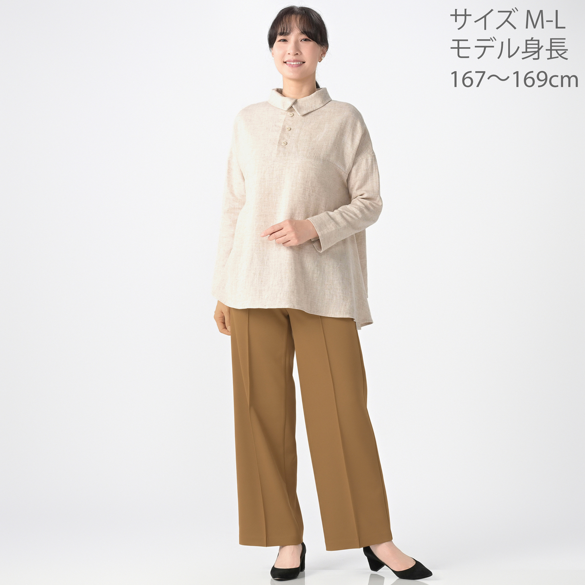 [商品寸法(ヌード)cm] サイズ バスト 着丈 裄丈 MーL:111(79〜94) 63 73 LーLL:117(86〜101) 64 74.5 LLー3L:123(93〜108) 65 76 [素材] 麻 50% 再生繊維(セルロース) 50% [お手入れ] 手洗い可 [注意事項] ※商品寸法の誤差は多少発生します。ご了承下さい ※無蛍光洗剤使用 ※洗濯ネット使用 ※あて布使用 ※着用時の摩擦(特に雨や汗により湿った状態での摩擦)で他の衣料やバッグ、椅子やソファー、車のシート等に色が移る場合がありますのでご注意下さい。万が一移染した場合は、移染した衣類等の早めのお手入れをお願いします ※濃色は水洗いで色落ちや色移りの恐れがありますので淡色との洗濯は避け、洗濯後は速やかに干して下さい。長時間のつけ置き洗いや濡れたままの重ね置きはお避け下さい ※この商品は長時間日光に当たり続けると色あせの恐れがあります。ご注意下さい。洗濯後は必ず陰干しして下さい ※生地の特性上、過度の引っ張りを受けると縫い目が開いたり、破れたりすることがありますのでお取り扱いにはご注意下さい ※洗濯後は形を整えて干して下さい ※この商品は生地の特性上、表面にふし糸(スラブ)や小さな固まり(ネップ)、毛羽立ちが出ることがありますが、それが当製品の味となっております。その独特の風合いをお楽しみ下さい ※強い摩擦や揉み作用により白化したり風合いがかたくなることがありますので、お取り扱いには十分ご注意下さい ※お洗濯は手洗いでやさしく押し洗いして下さい ※汗や水に濡れるとしみ状に見える部分ができますが、再度手洗いするかクリーニングに出していただくと軽減します 【中国製】