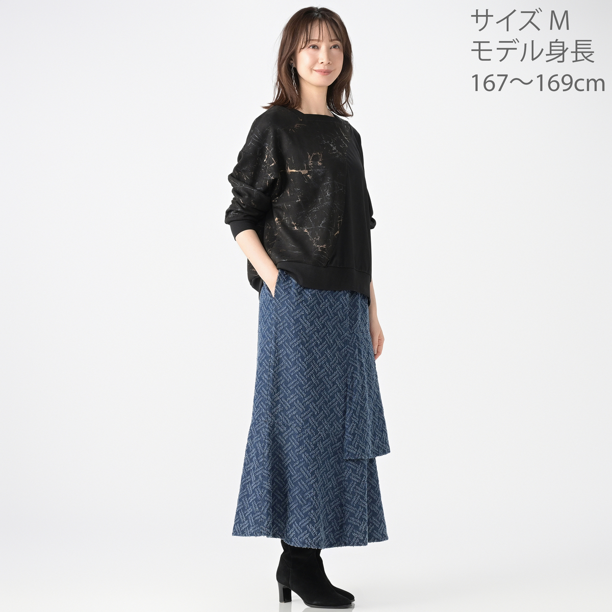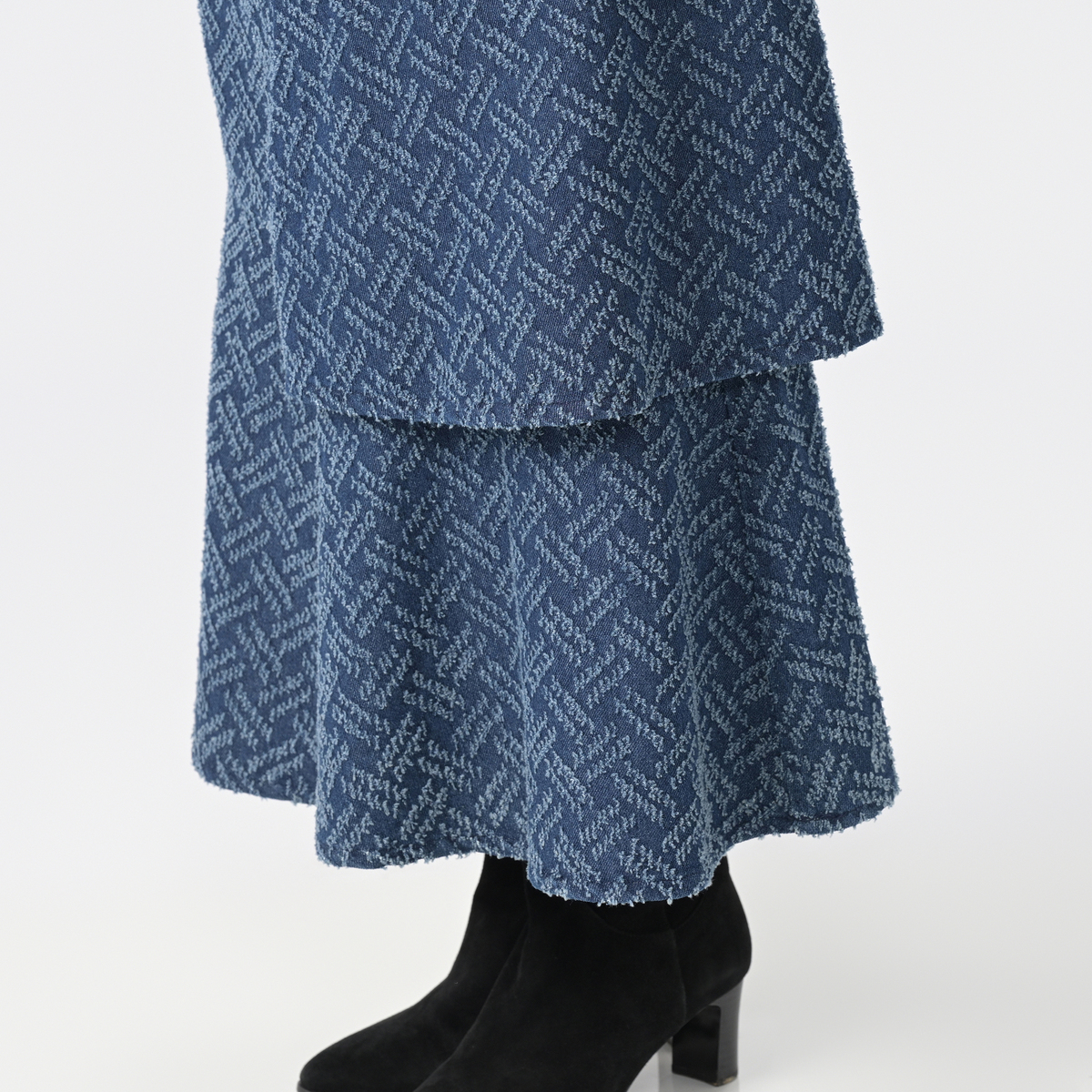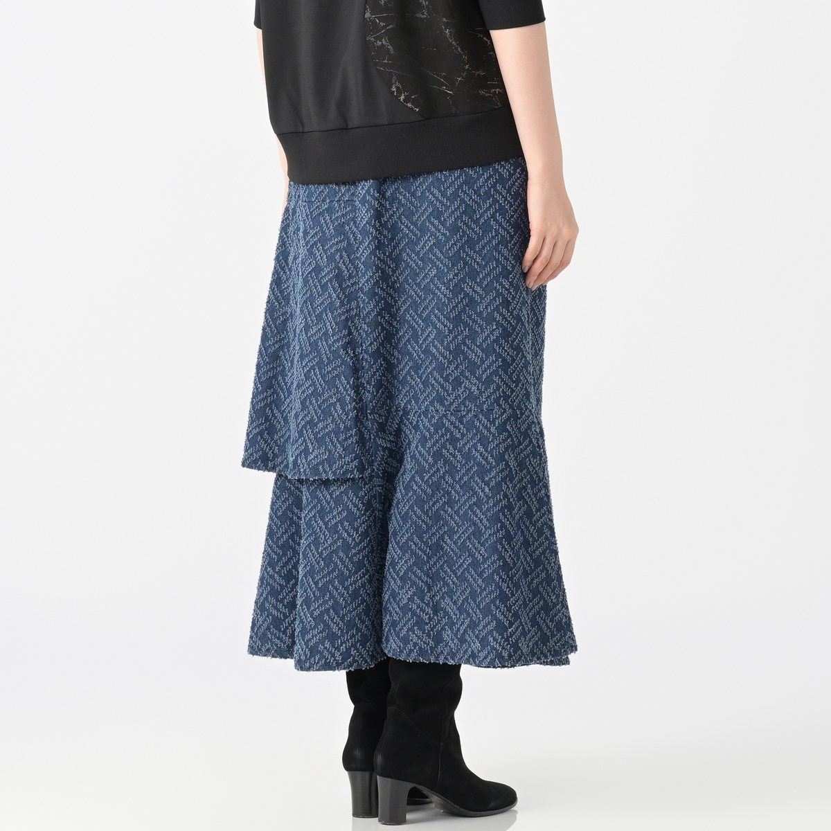 表情豊かなジャガードデニムで仕立てたマーメイドスカート。カジュアルながらも上品な雰囲気が楽しめるアイテムです