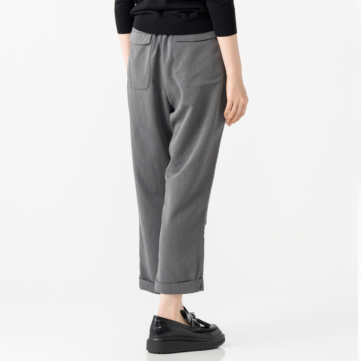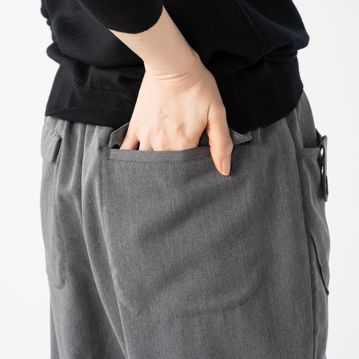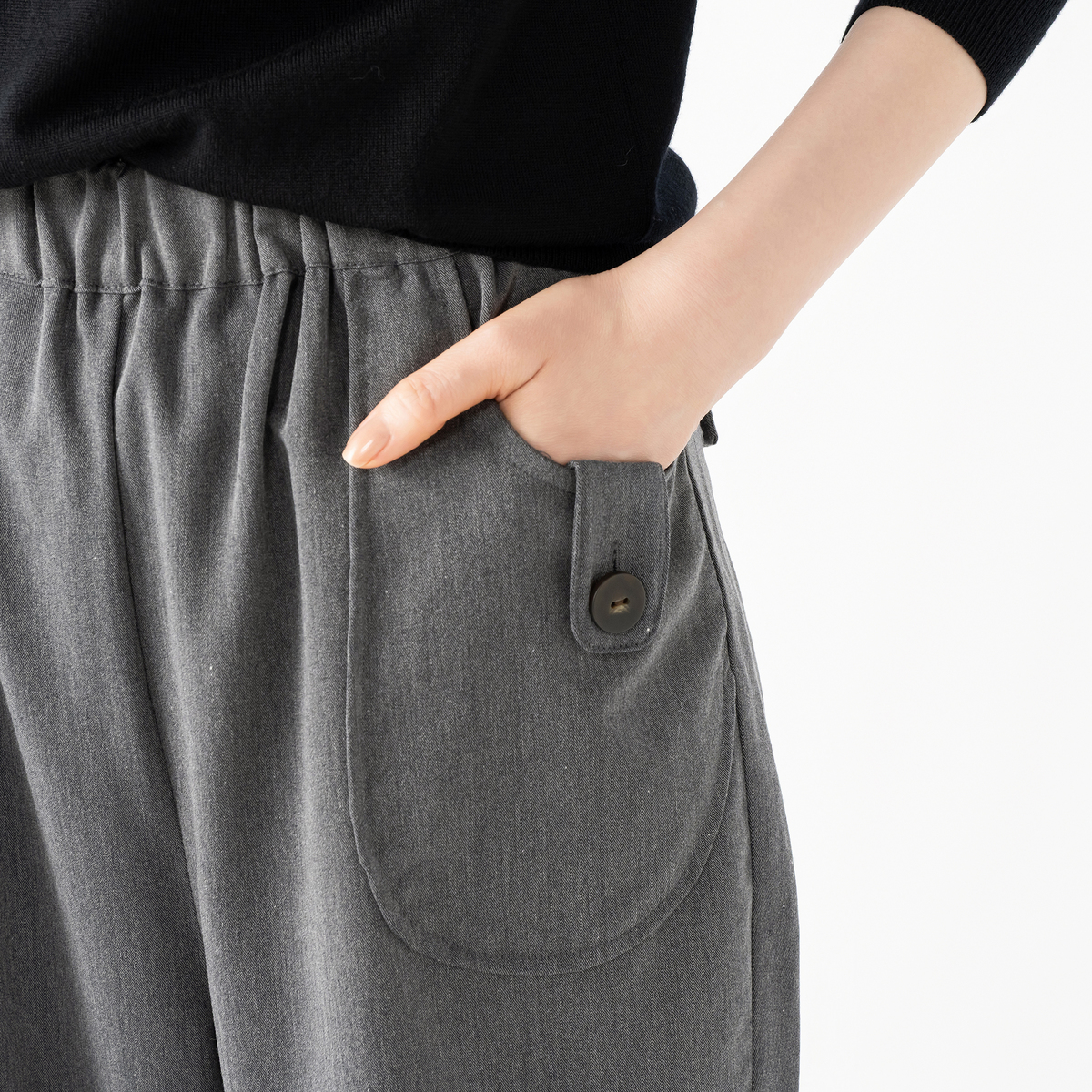 脇線に2本のタックを開くように配置したニュアンスパンツ。丸みのあるシルエットが自然な立体感を作り出し、脚をほっそりと見せてくれます
