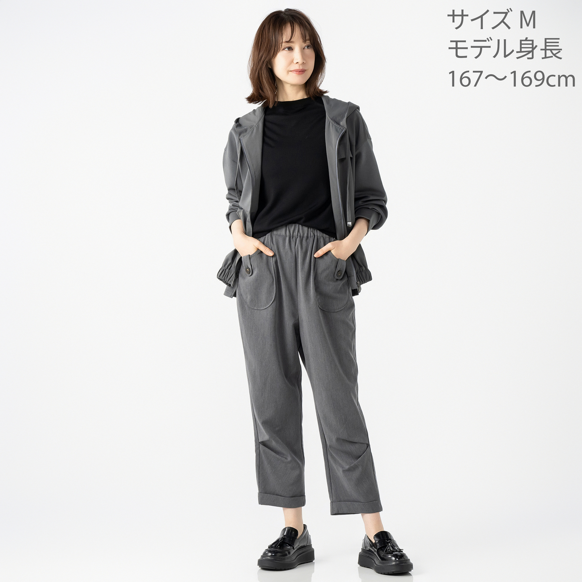 杢調の表情がある生地を採用し、カジュアルな雰囲気の中に上品さを感じる仕上がりに。肌当たりが良く、快適な穿き心地を叶えています