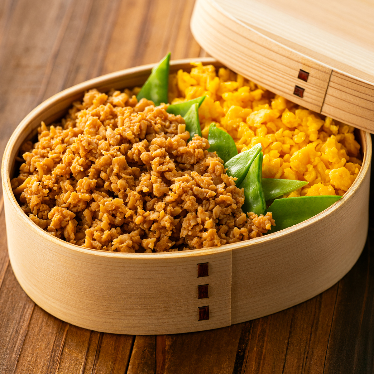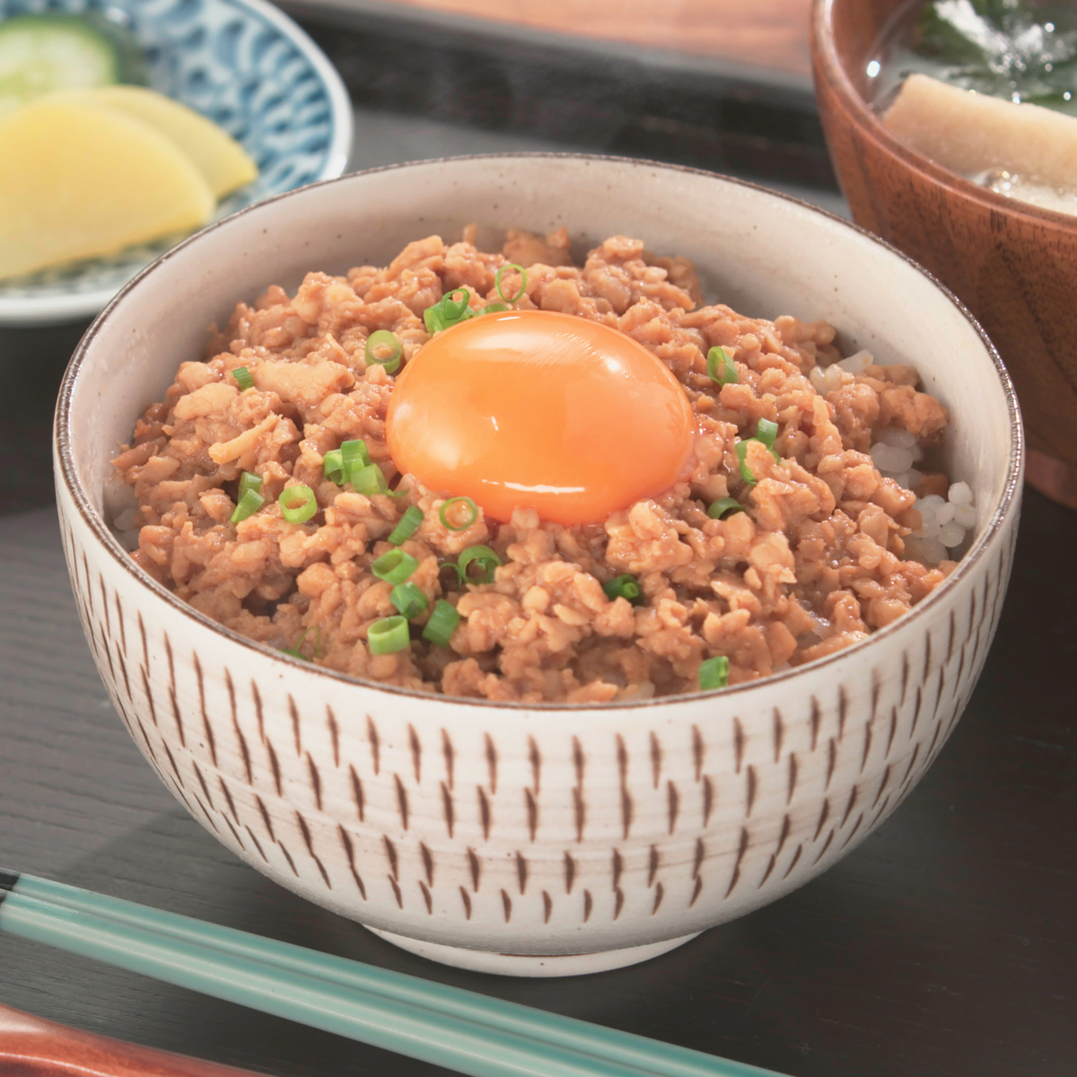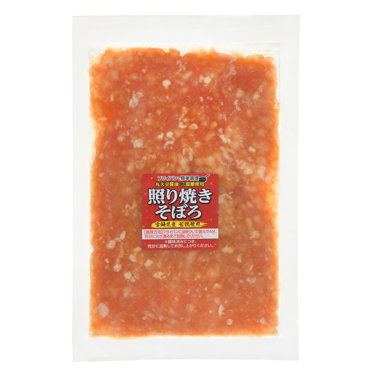 甘辛いたれで味付けした照焼きそぼろ。宮崎県産若鶏のむね肉を使い、ほぐれるような柔らかさが特長です。お子様も食べやすく、忙しい日の食卓にも便利な一品です