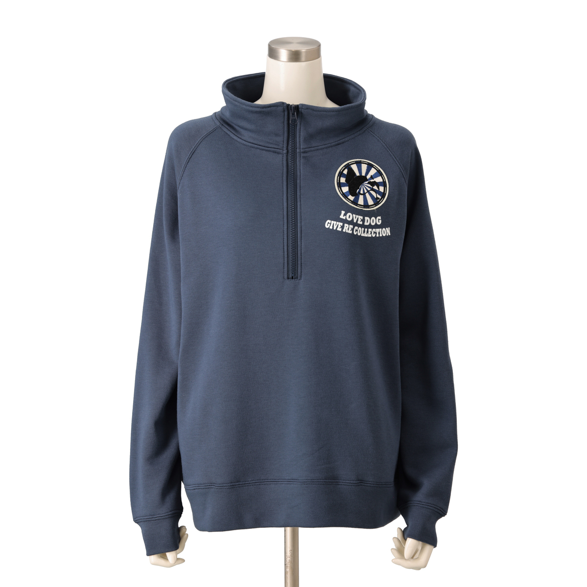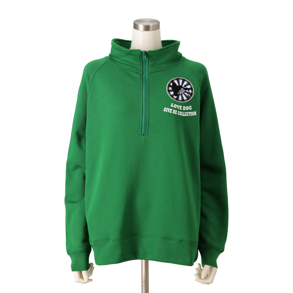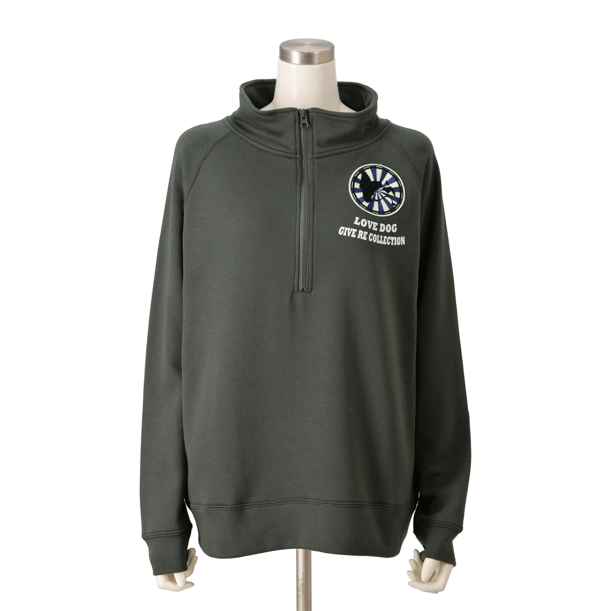 AsrabbitとGive Re-Collectionコラボのハーフジッププルオーバー。スタンド衿のファスナーを少し開けて衿を倒すと、抜け感のあるこなれた印象に。薄手のインナーやタートルネックとのレイヤードも楽しめて、季節の変わり目にも活躍します