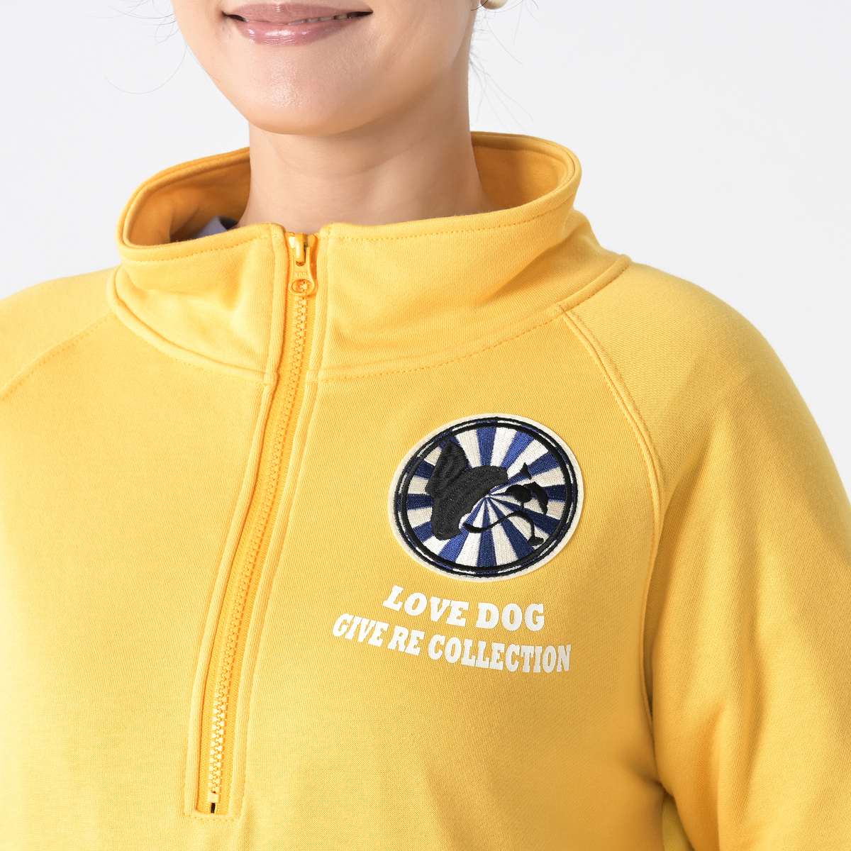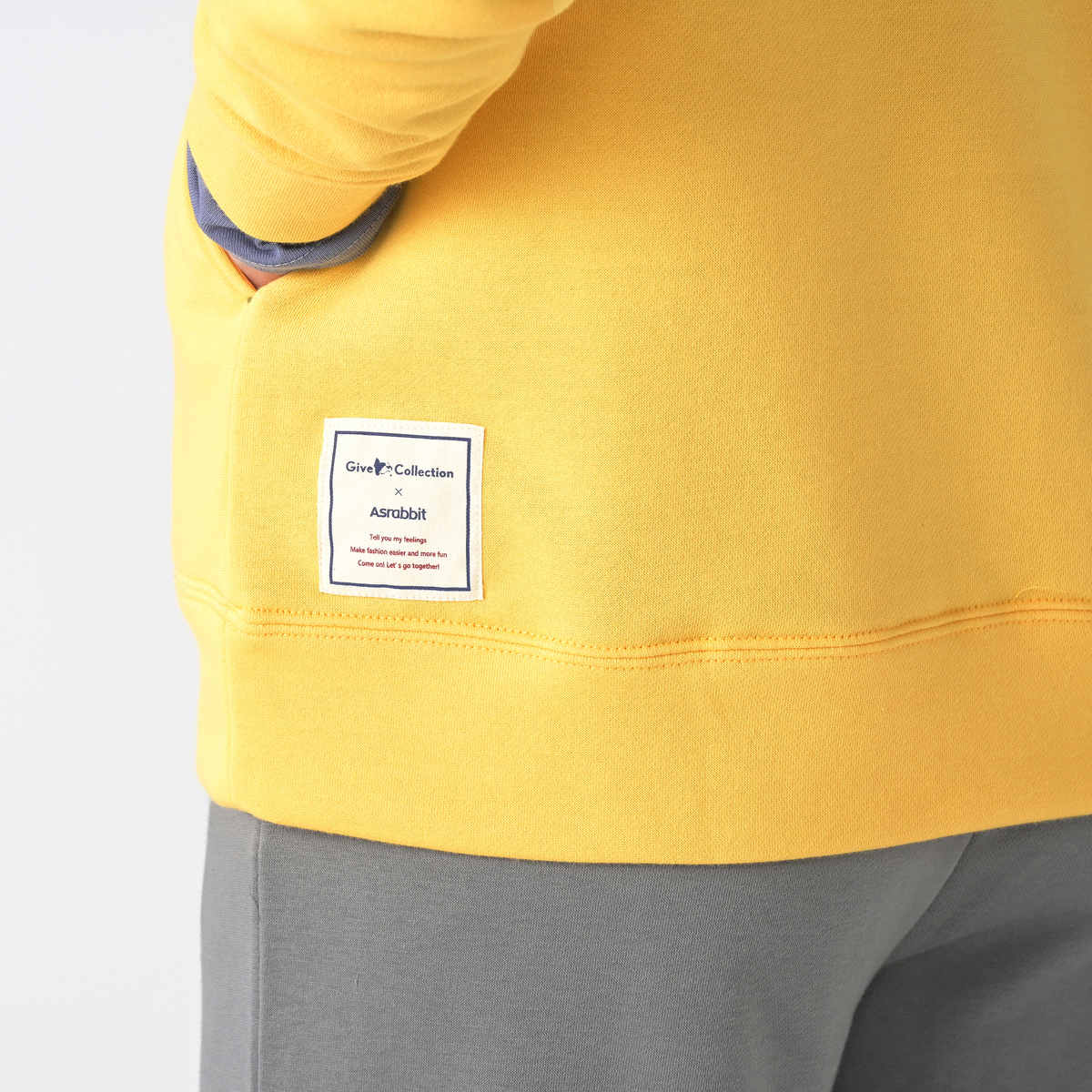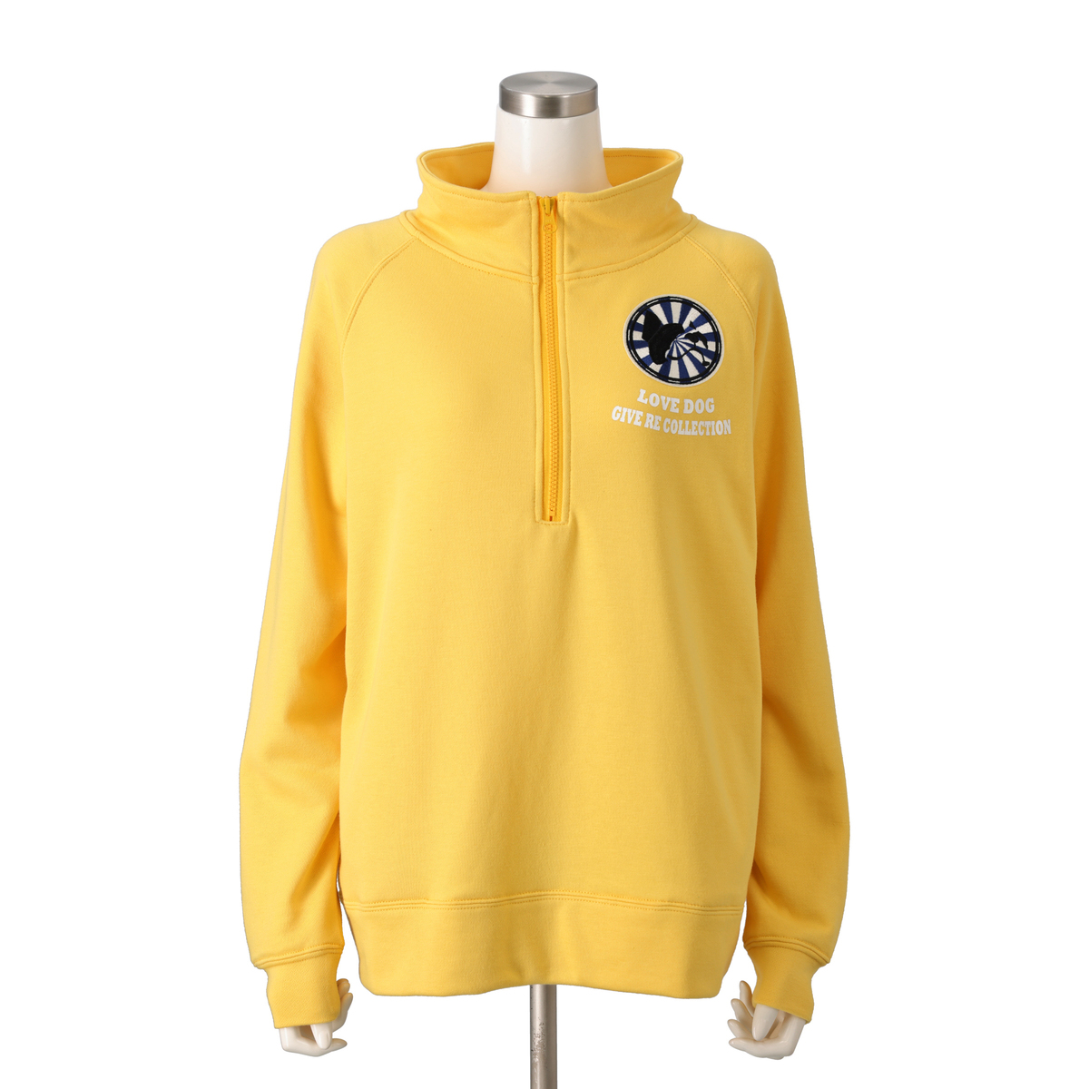 AsrabbitとGive Re-Collectionコラボのハーフジッププルオーバー。スタンド衿のファスナーを少し開けて衿を倒すと、抜け感のあるこなれた印象に。薄手のインナーやタートルネックとのレイヤードも楽しめて、季節の変わり目にも活躍します