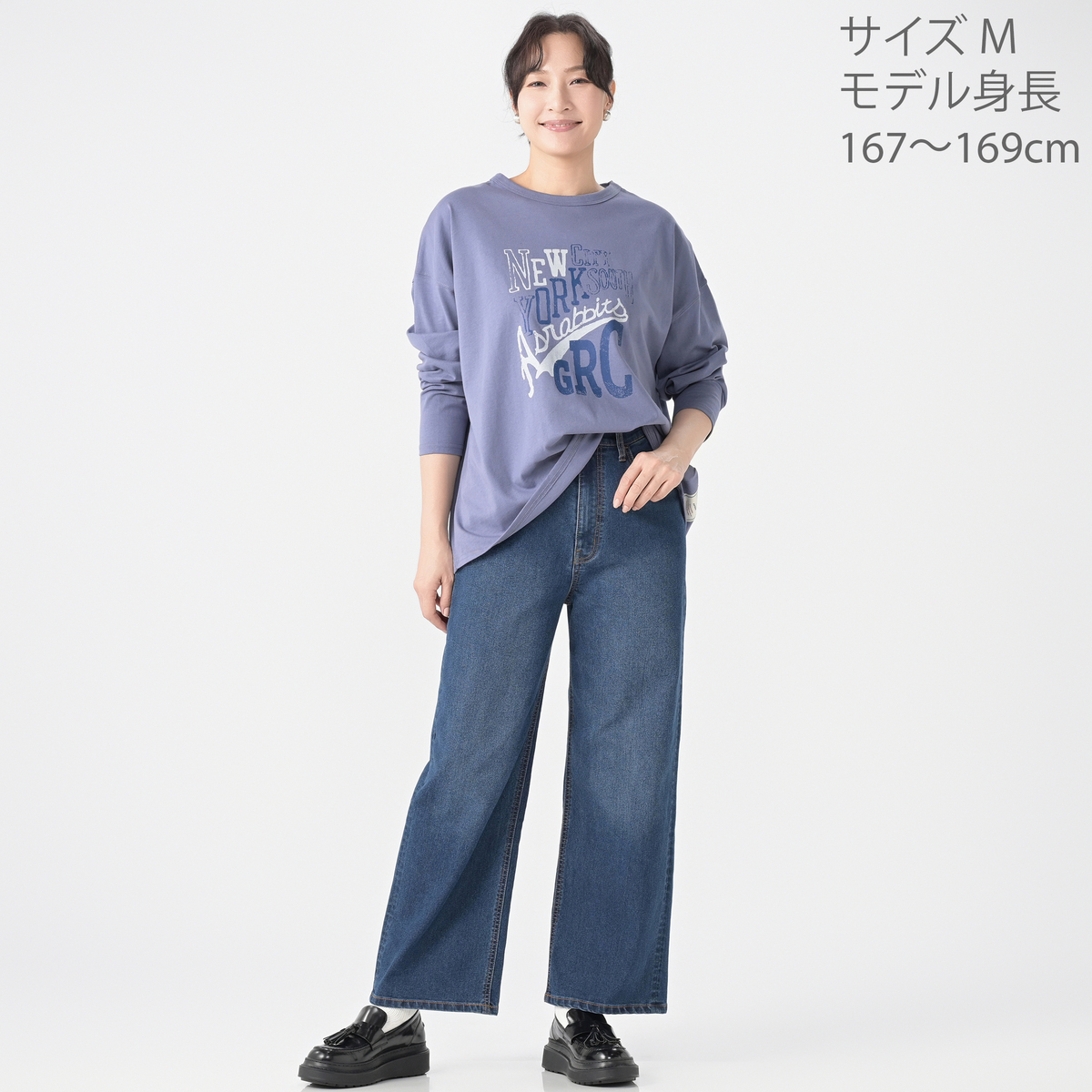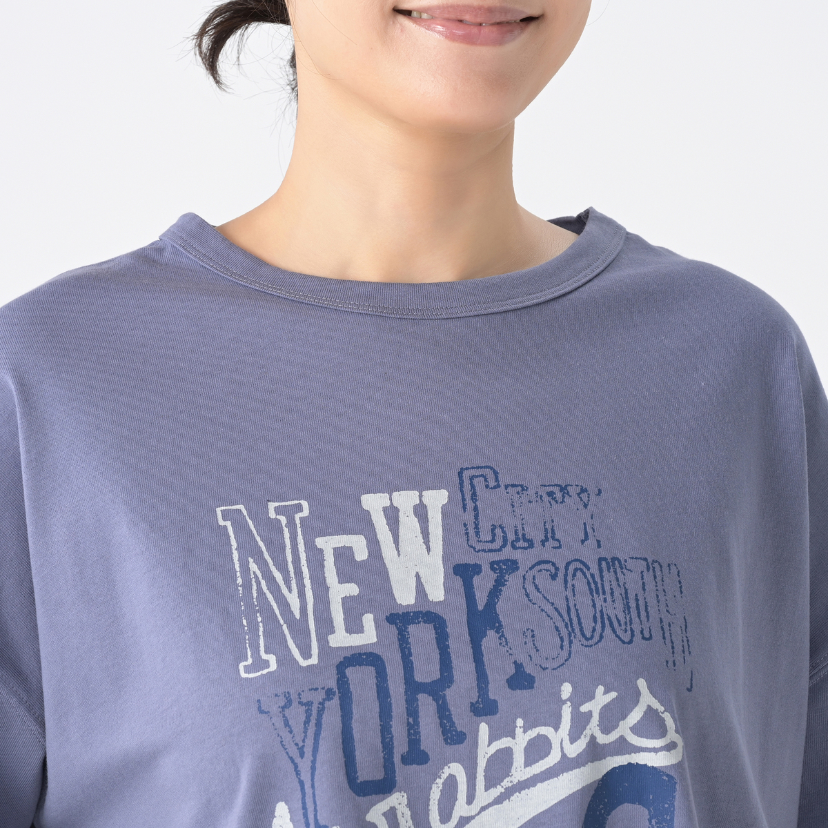 後身頃裾のGRCとエーズラビットコラボのロゴがおしゃれなのと、ゆったりと楽ちんでストンとした落ち感が着心地良く!!アメリカンナイズのビッグプリントも気に入り、初オンエアで購入したブルーグレーがヘビロテ状態なので、¥1000オフを利用して2枚目にホワイトLL購入。早くも朝晩の冷え込みを感じるので、朝晩はロンTをインナーにビッグプリントが見えるようジャケット前開きにして、日差しが強い昼間はロンT1枚で過ごすのに重宝している!!真冬はロンTに厚手のカーディガンを重ねて、アウターはカポックで大いに楽しむ!!ホワイトは色々な色彩に合わせられるので、組合せも楽しめて!!おしゃれなロンTを2枚ゲット出来て大満足!!