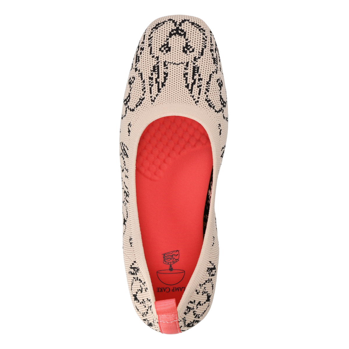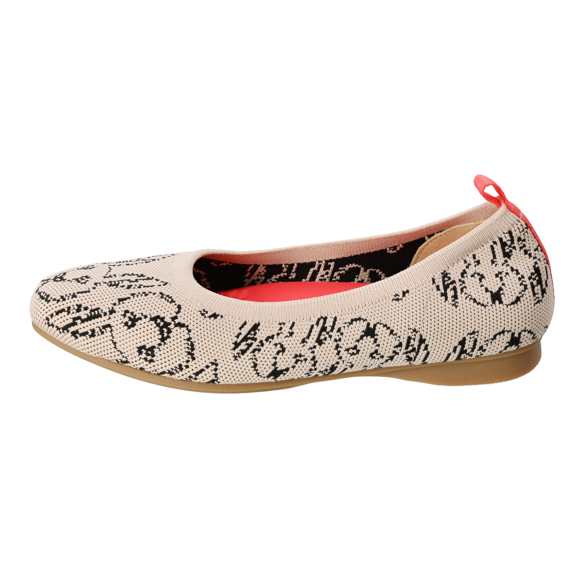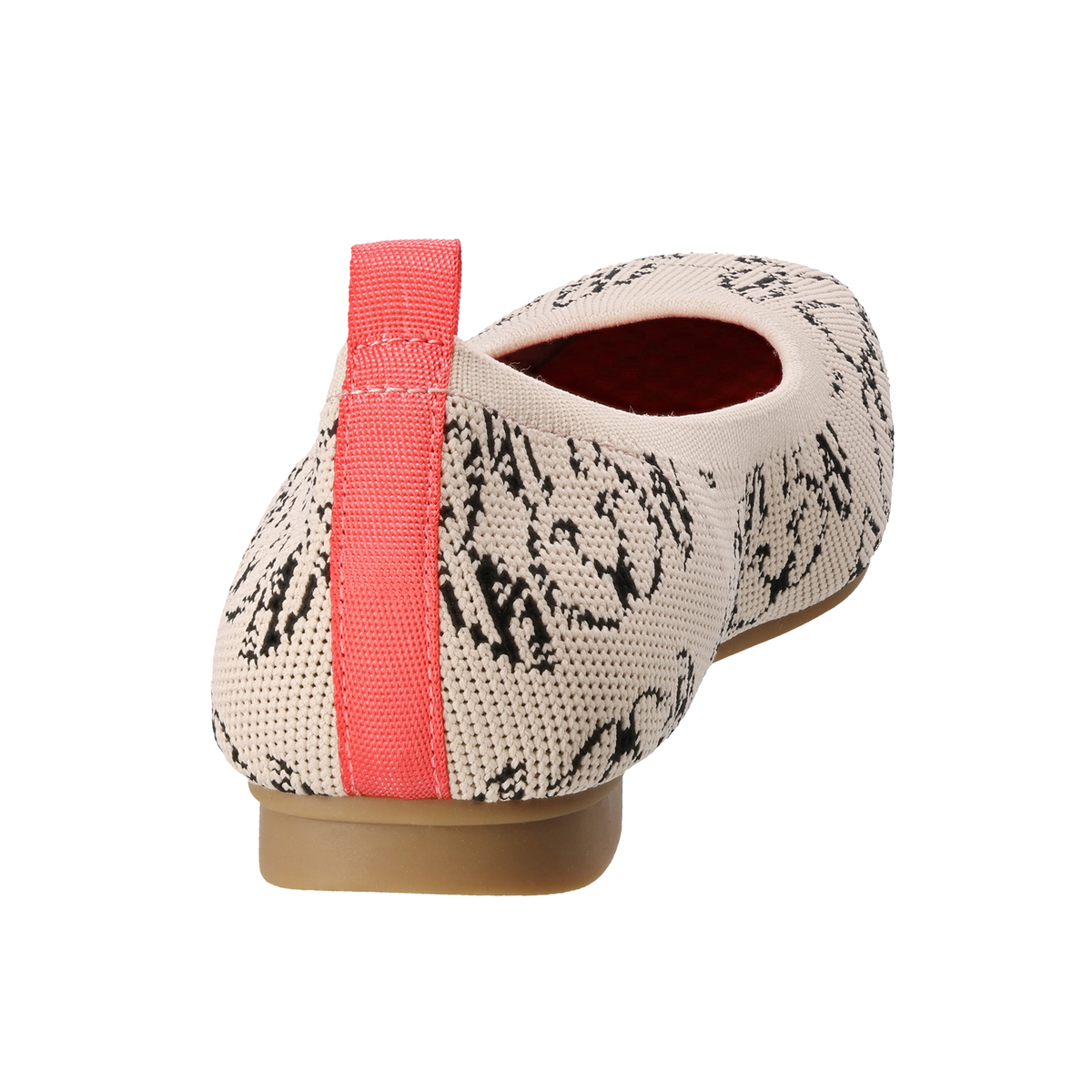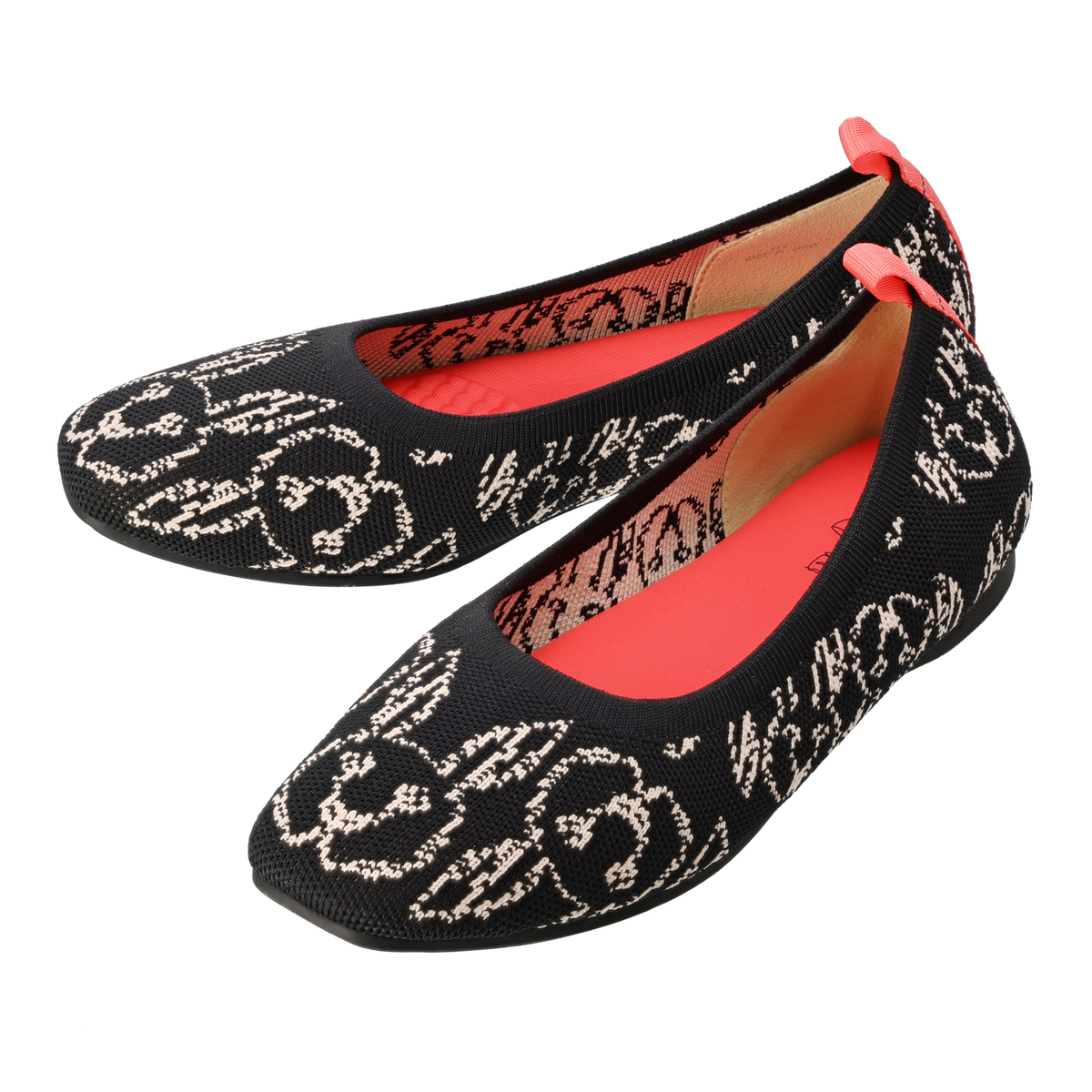 ベージュに続きブラックを購入。絶妙な中敷きのデコボコが足裏にピタリの為か長時間着用しても疲れ少なく、スクエアでつま先の痛み無し。ニットなのに型崩れせず、バツクと中敷のピンクは脱いだ時にも可愛くて久々スニーカー以外のヘビロテに出会えました。