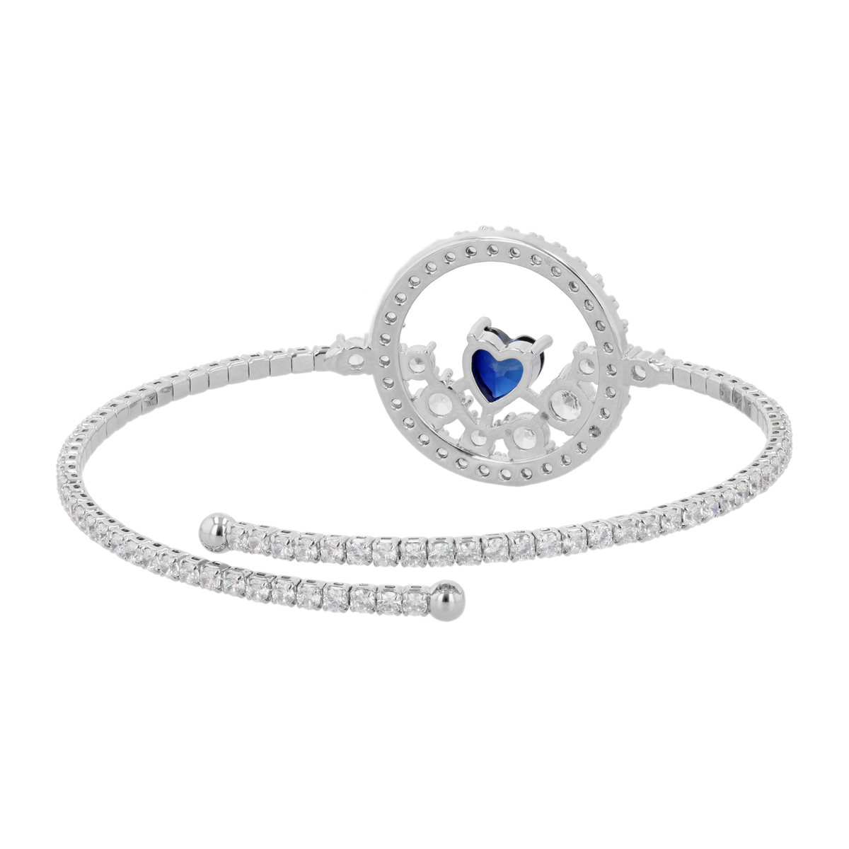 [合成サファイヤ] ハートシェイプ 爪留め 1石 約1.78ct [キュービックジルコニア] ラウンドシェイプ 爪留め 合計約4.80ct 総重量(約) 6.0g 内周(約) 17.5cm 幅(約) 大:24.0mm 小:2.3mm 留具の形状 無 アジャスターの有無 無 チャームの有無 無 [地金] 真鍮 [メッキ] ロジウムメッキ ■素材の大きさ・形・色合い、製品のサイズは1点1点多少異なります ■Ct数値はダイヤ換算です 【中国製】