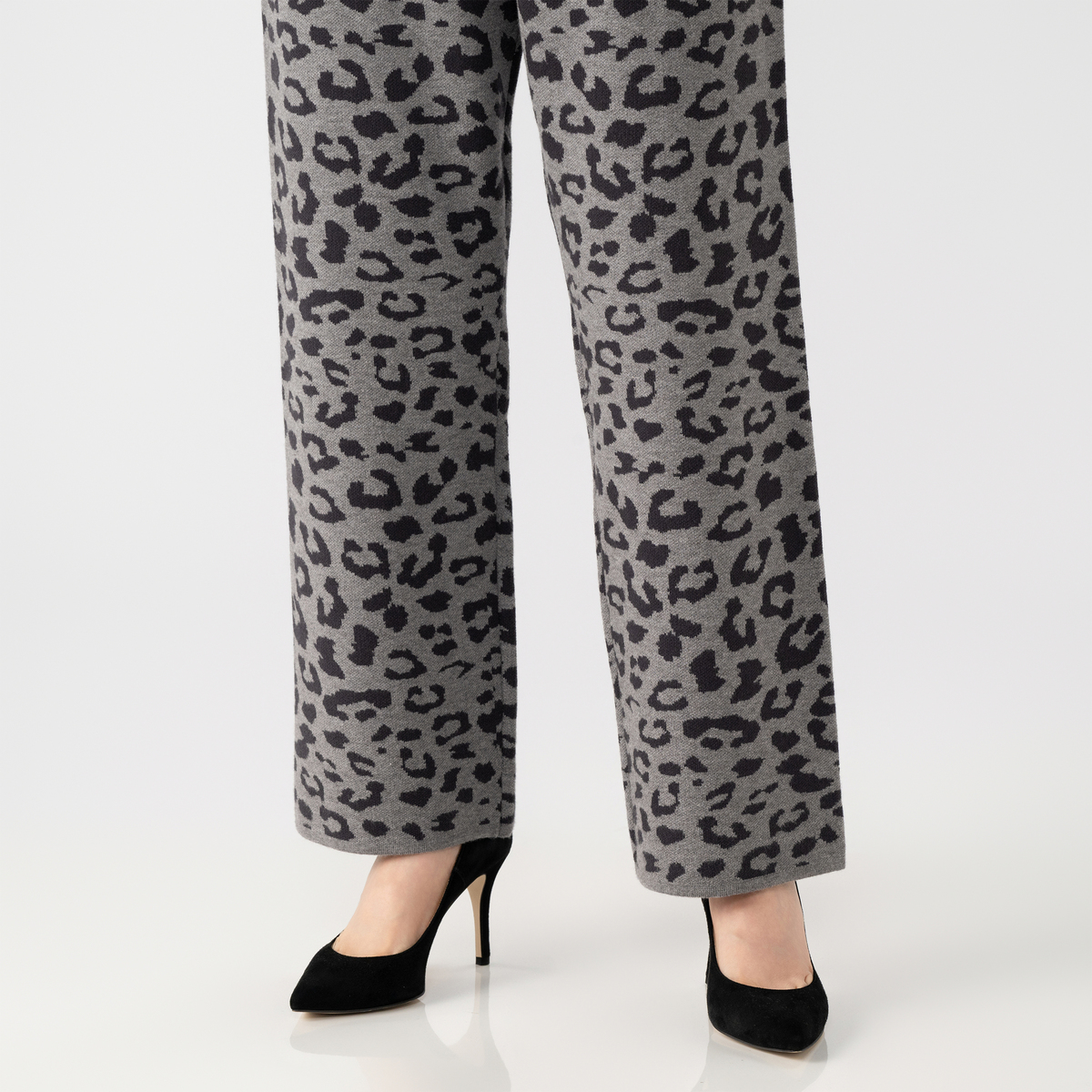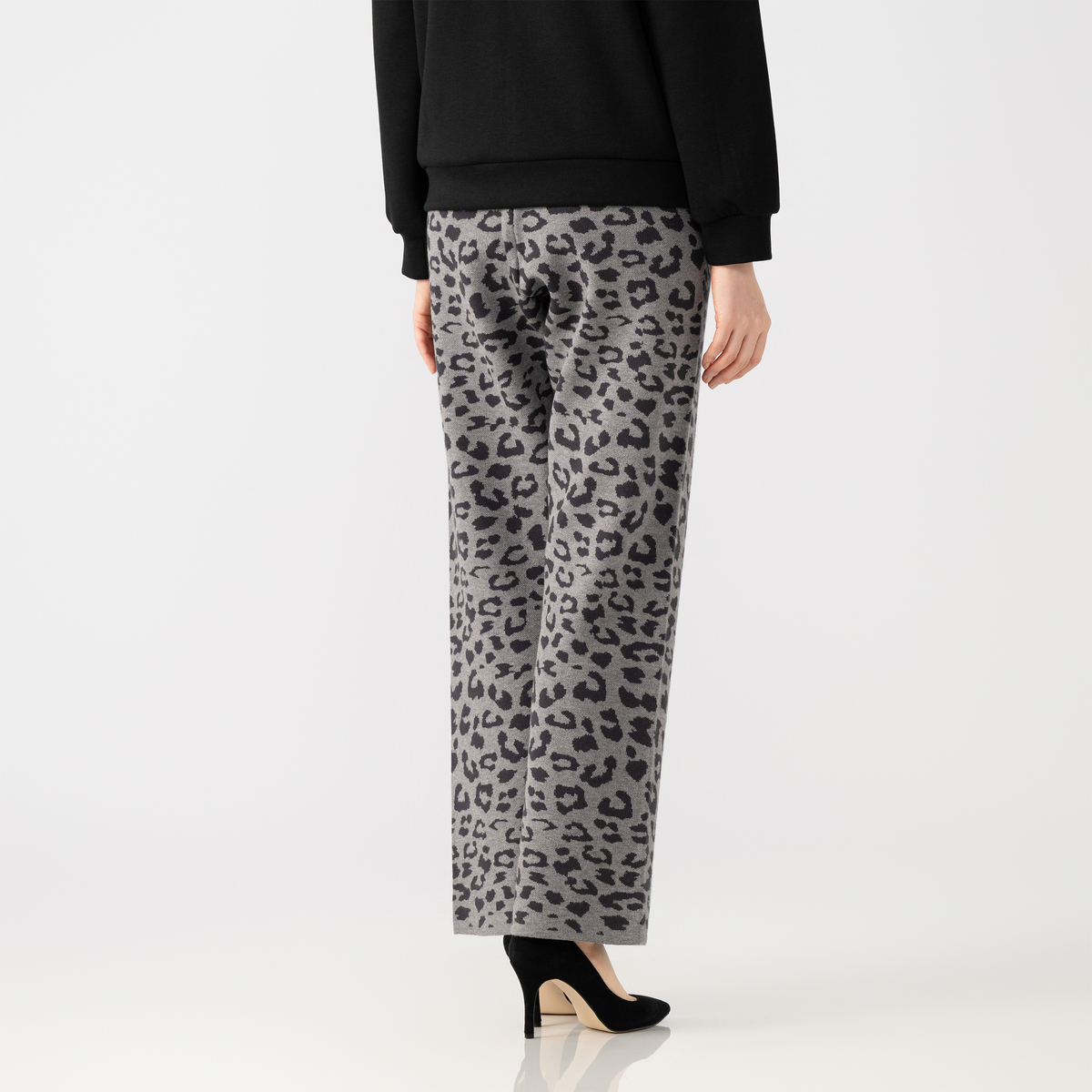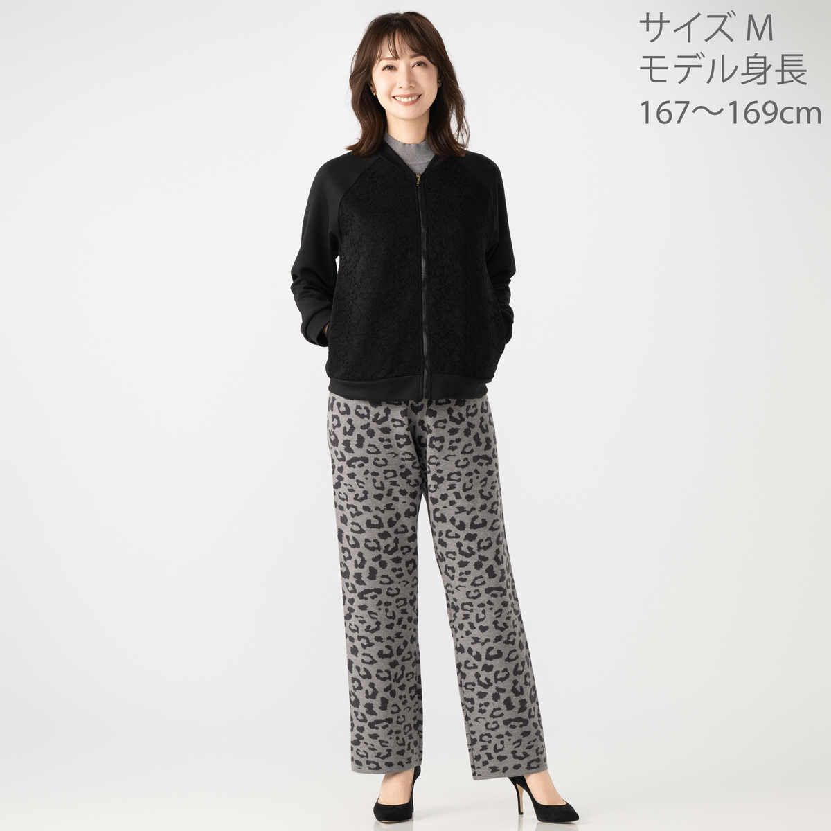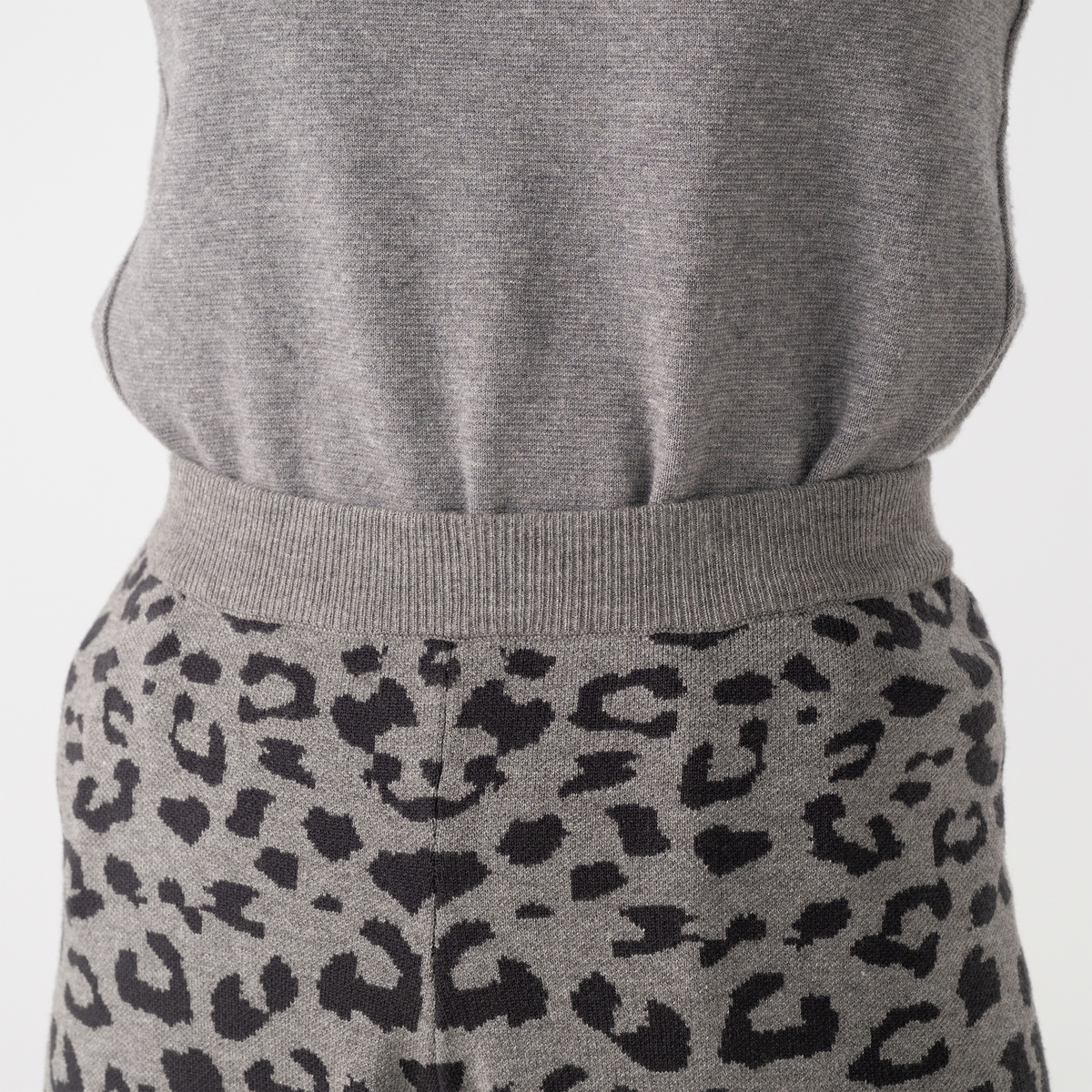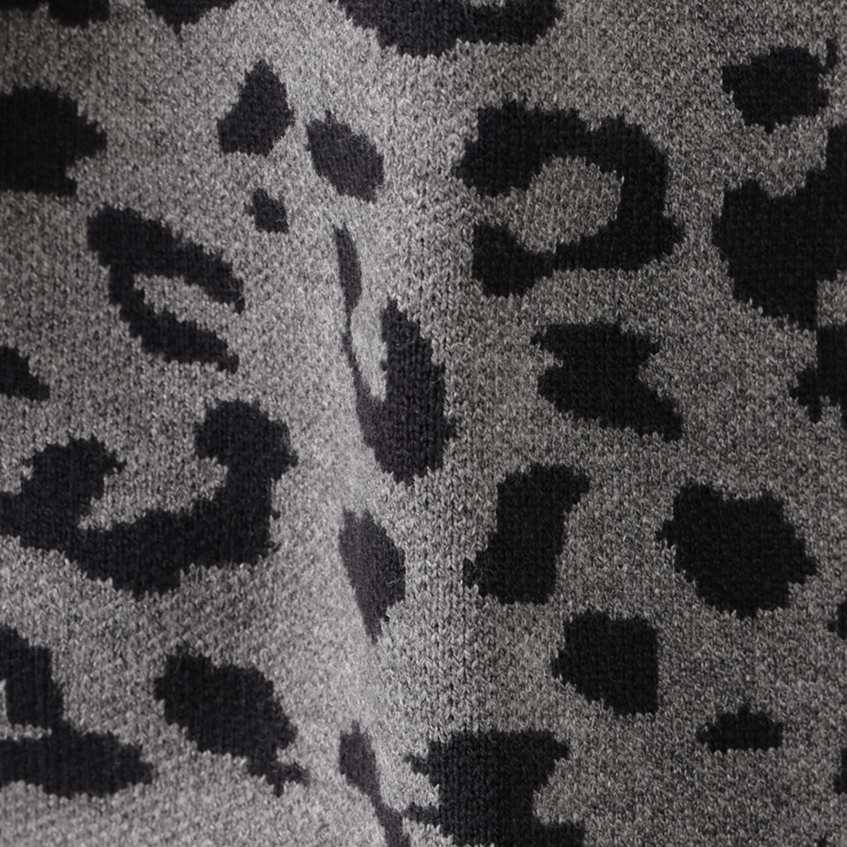 レオパード柄またはベーシックなドット柄に編立てた、12Gのダブルジャカード編み。ジャカード柄がアクセントになった、着こなしにプラスして頂けるデザインです
