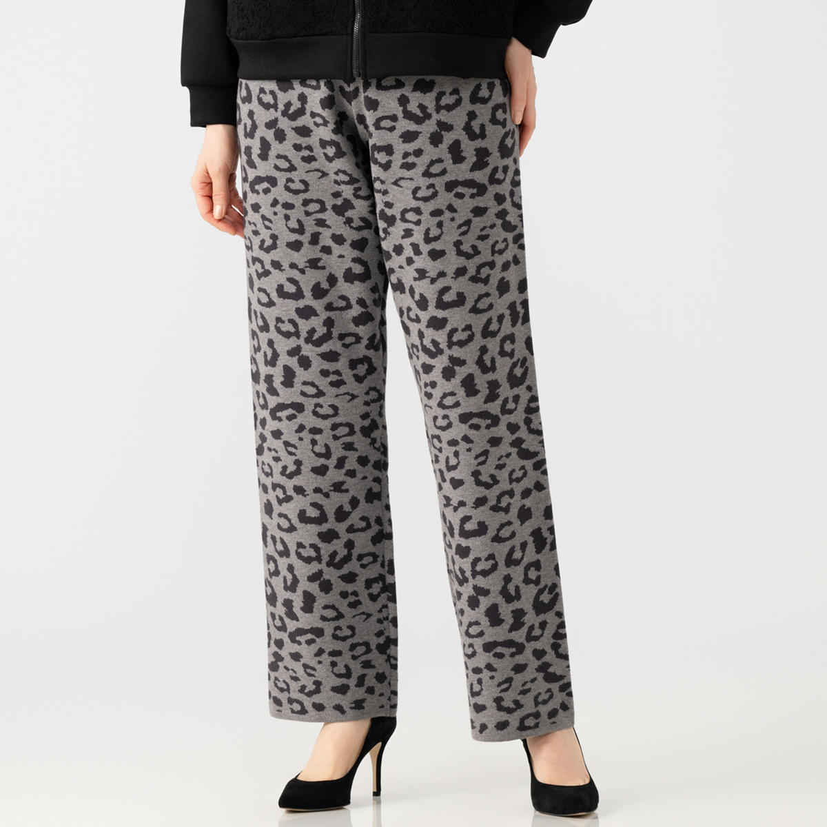 レオパード柄またはベーシックなドット柄に編立てた、12Gのダブルジャカード編み。ジャカード柄がアクセントになった、着こなしにプラスして頂けるデザインです
