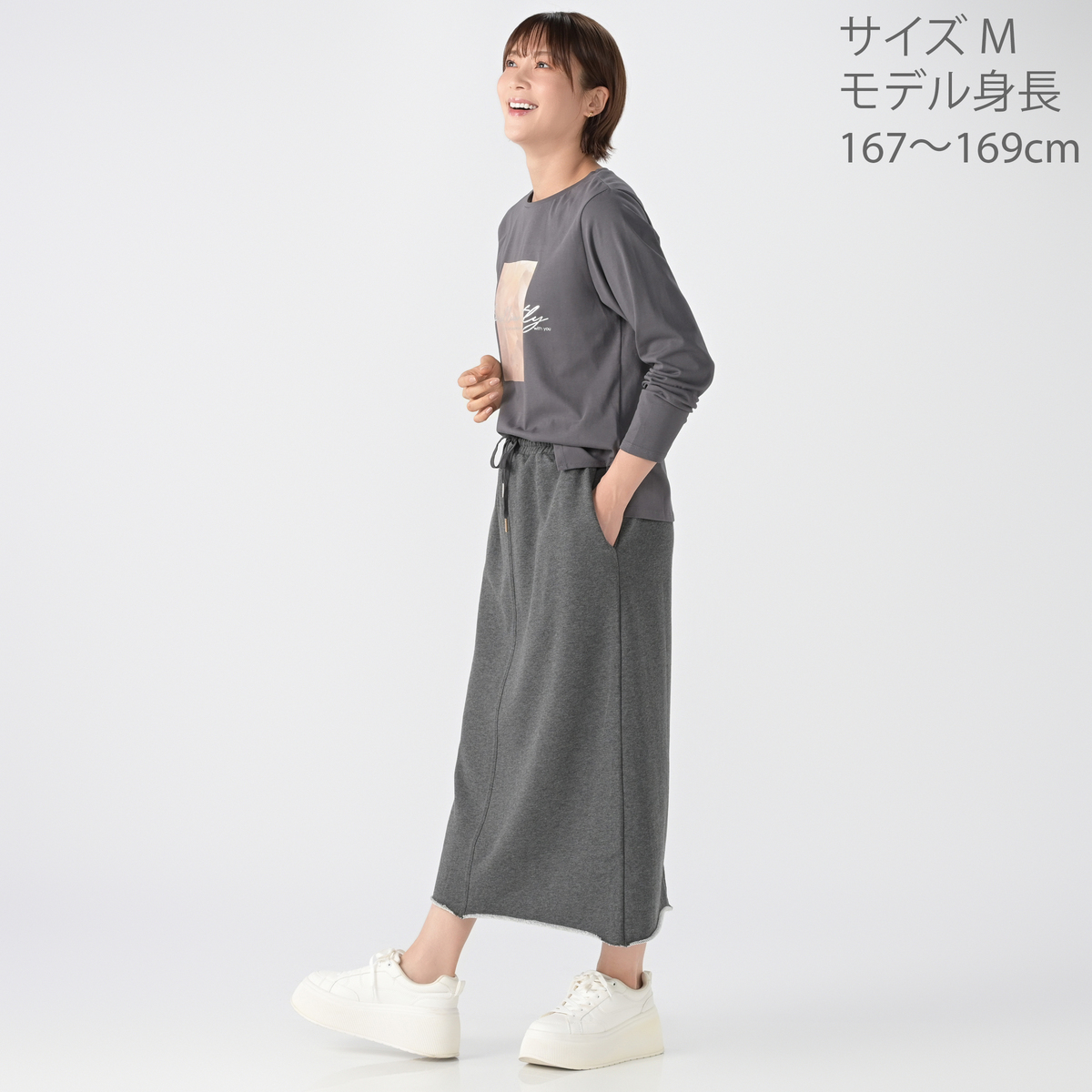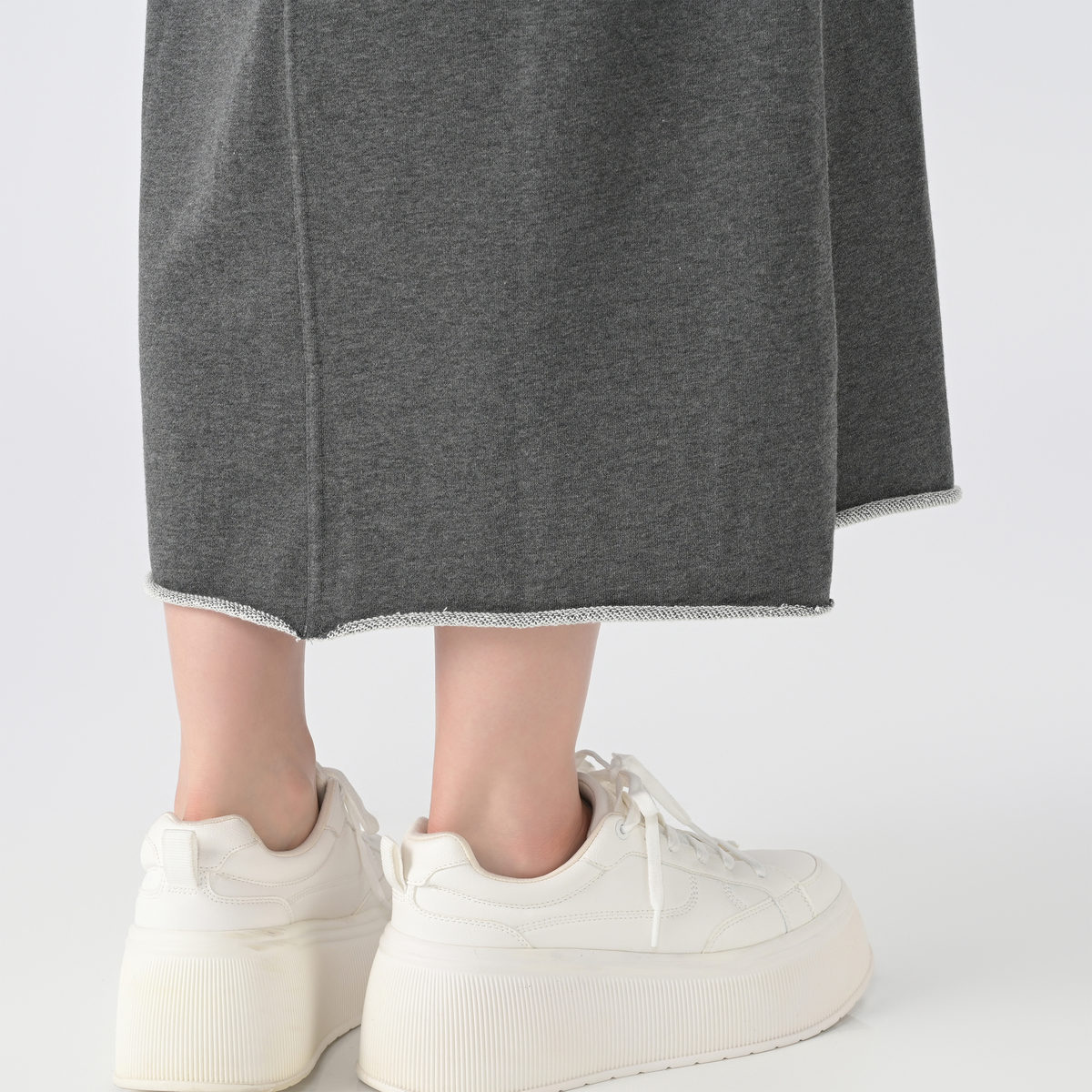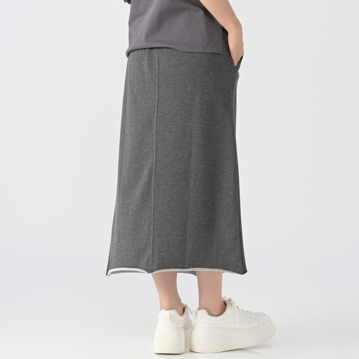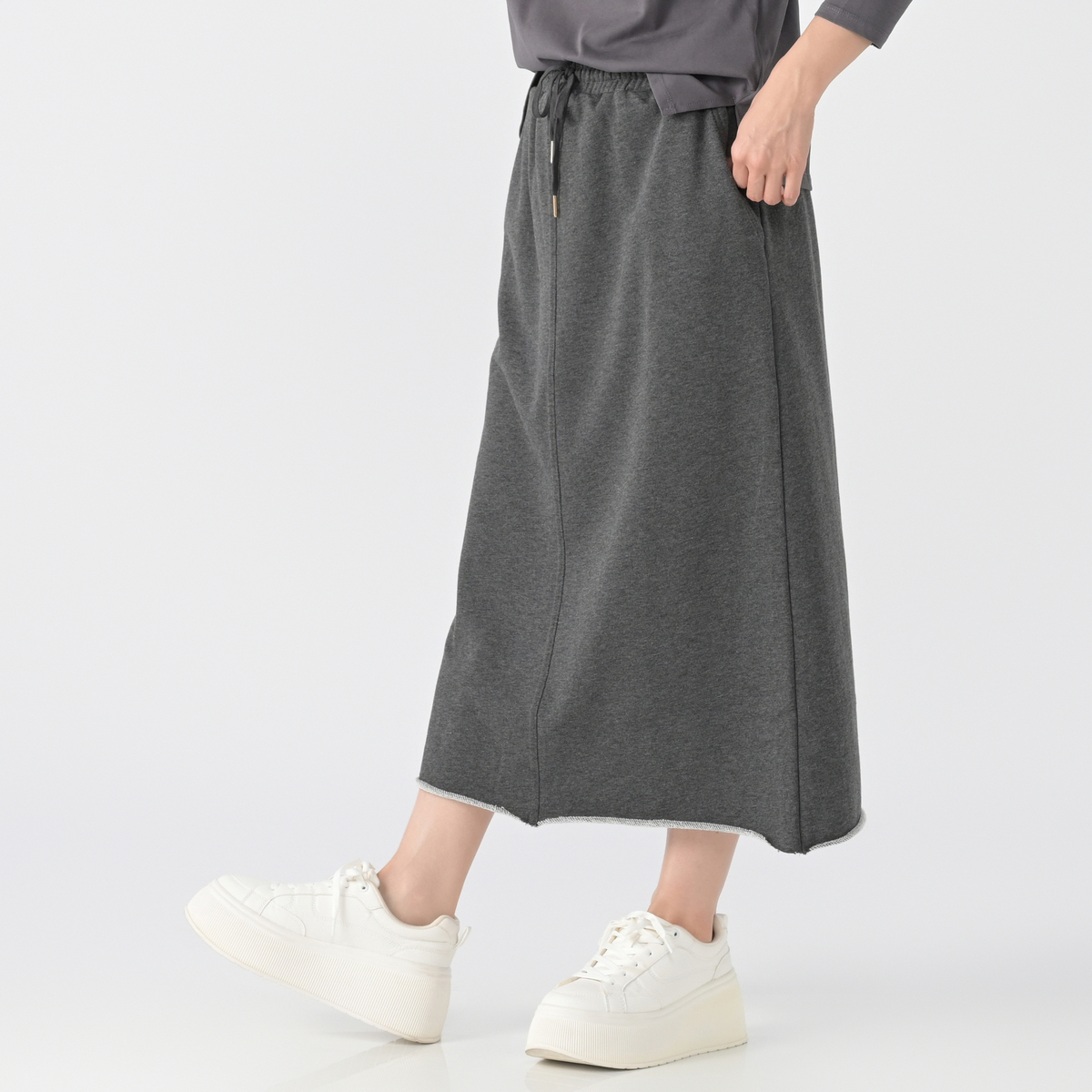 杢調の裏毛素材で仕立てたナロースカート。程良くカジュアル感があり、様々なコーデに活躍してくれます