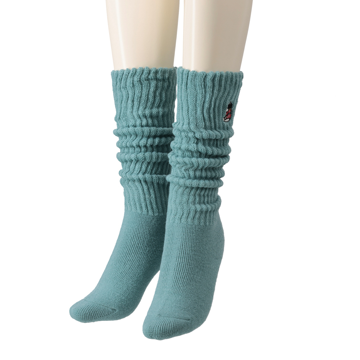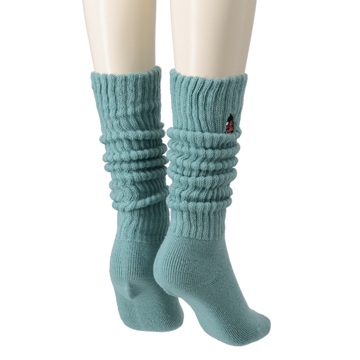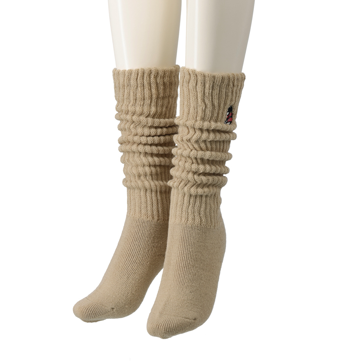 ルーズソックス風にクシュクシュさせておしゃれに履けるリブ編み仕様。ワンポイントでホット君の刺繍が入っています