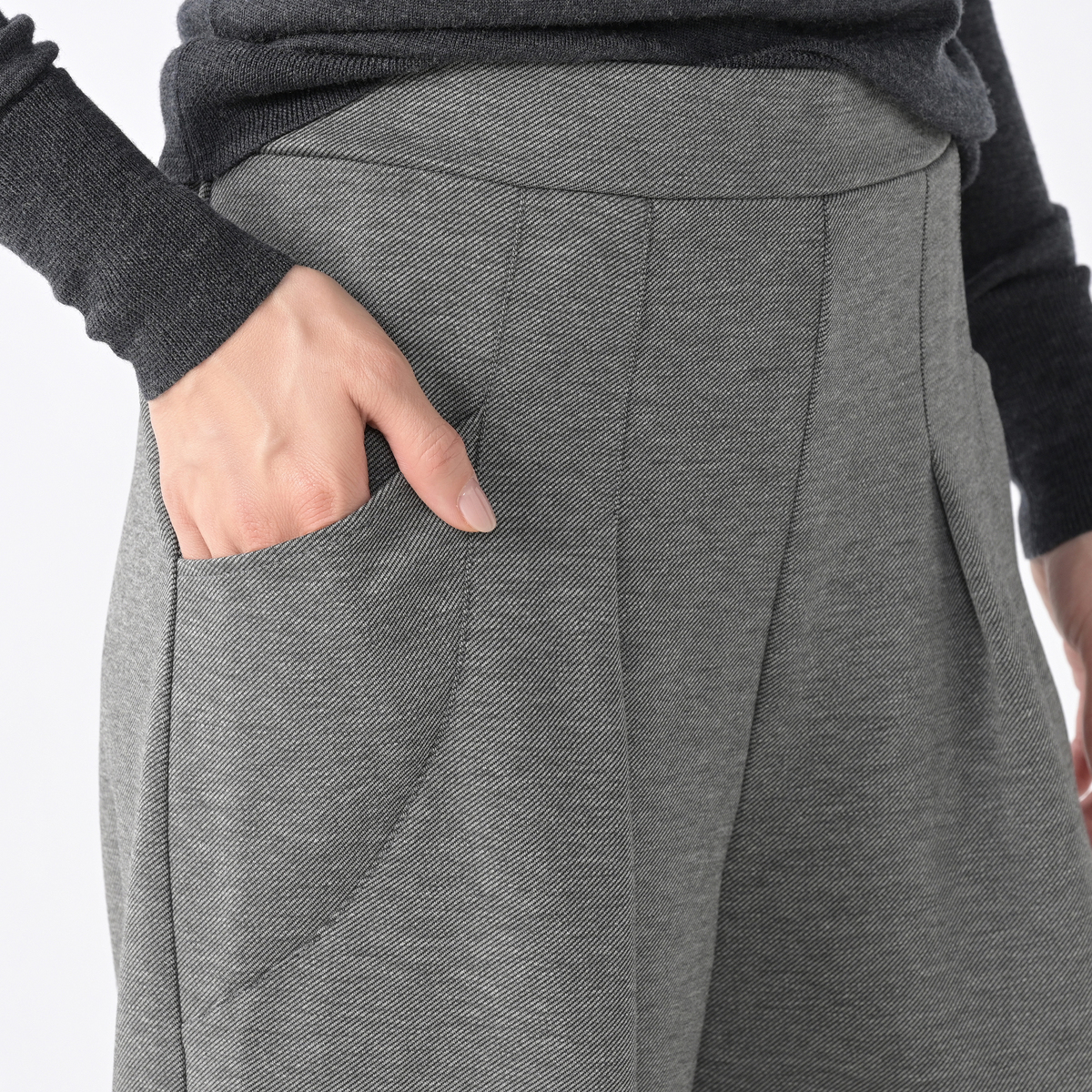 様々なコーデに活躍してくれるワイドパンツ。カーブデザインのポケットで細見え効果が期待できます