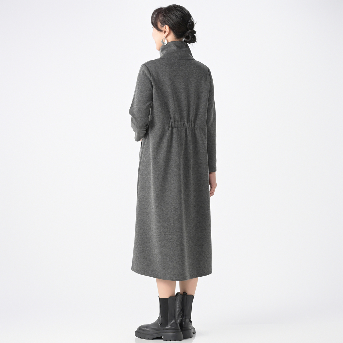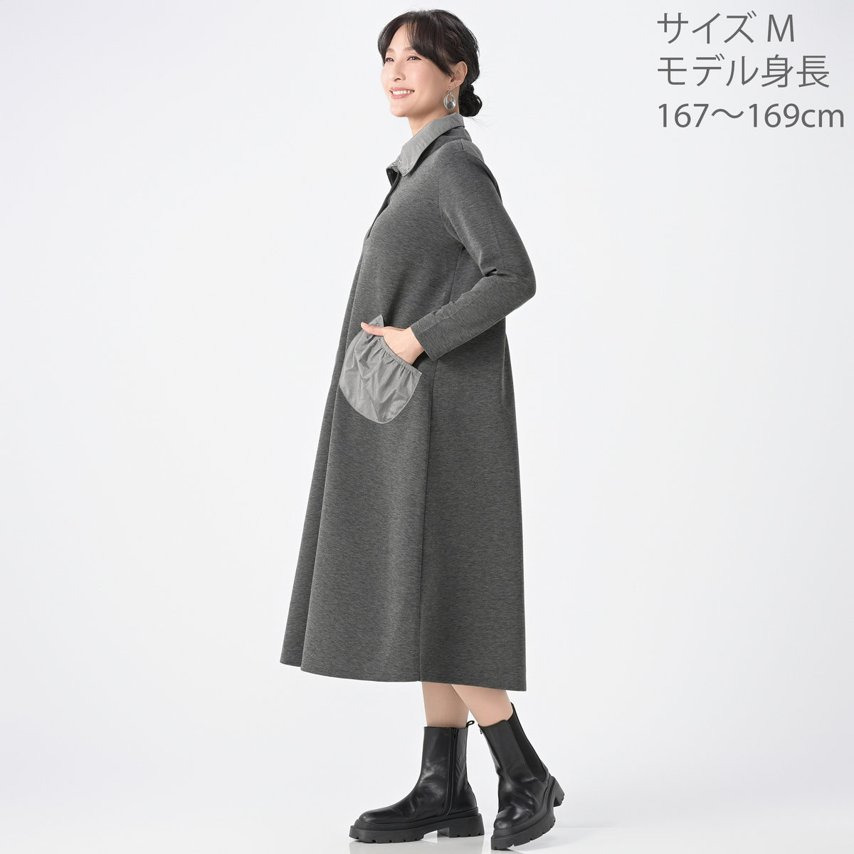 [商品寸法(ヌード)cm] サイズ バスト 着丈 S: 96(73〜81) 110.5 M: 101(79〜87) 112 L: 107(85〜93) 113.5 LL: 113(91〜99) 115 3L: 119(97〜105) 116.5 サイズ 肩幅 袖丈 ウエスト ヒップ S: 35 55 (62〜68) (81〜87) M: 36 55 (66〜72) (85〜91) L: 37 55 (70〜76) (89〜95) LL: 38 56 (74〜80) (93〜99) 3L: 39 56 (78〜84) (97〜103) [素材] 本体:ポリエステル50% レーヨン45% ポリウレタン5% 別布:ナイロン100% [お手入れ] 洗濯機洗い可 [注意事項] ※商品寸法の誤差は多少発生します。ご了承下さい ※洗濯後は重ね置きしないで下さい ※洗濯後はすぐに脱水し、形を整えて干して下さい。長時間、水につけたままにしないで下さい ※素材の特性上、着用や洗濯・クリーニング時の摩擦により毛羽立ち、毛玉が発生します。その際はお早めに毛玉取り器等で手入れをして下さい ※直射日光や蛍光灯の影響で変色することがありますのでご了承下さい ※濃色製品は着用中の摩擦により色移りすることがあります。また、雨や汗等で濡れた状態で着用すると色移りすることがあります。その際はお早めに洗濯をして下さい ※洗濯やクリーニングにより徐々に色あせします。また、色落ちすることがありますので、他の物と分けて洗って下さい ※洗濯の際は裏返しにし、洗濯ネットを使用して下さい ※付属部分にアイロンを当てないで下さい ※洗濯・クリーニングにより多少、収縮することがあります 【中国製】