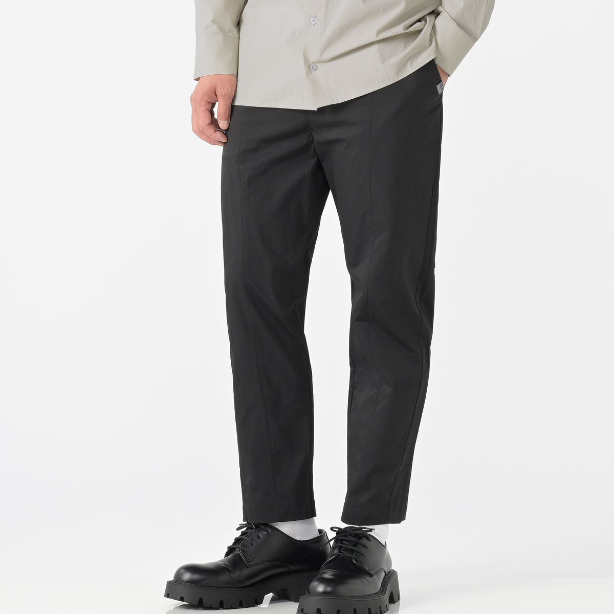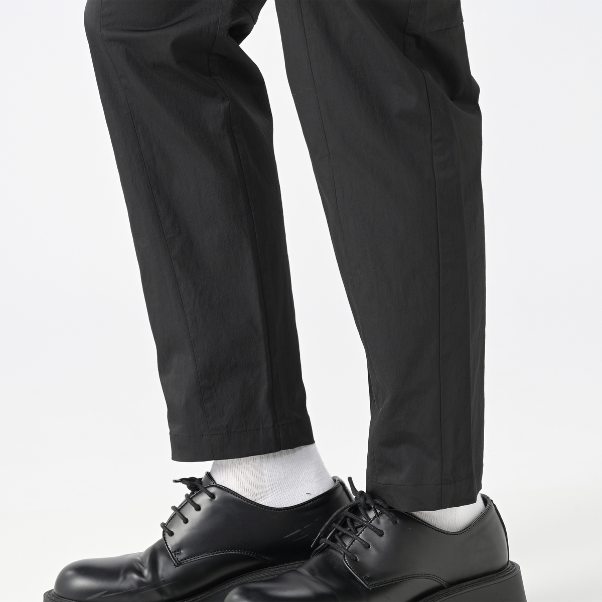 適度な肉感のストレッチ素材を使用したテーパードパンツ。テーパードラインが、足元をきれいに引き立て、裾の切り替えで立体的なつくりに。リラックス感のあるシルエットで、オン・オフどちらも活躍します