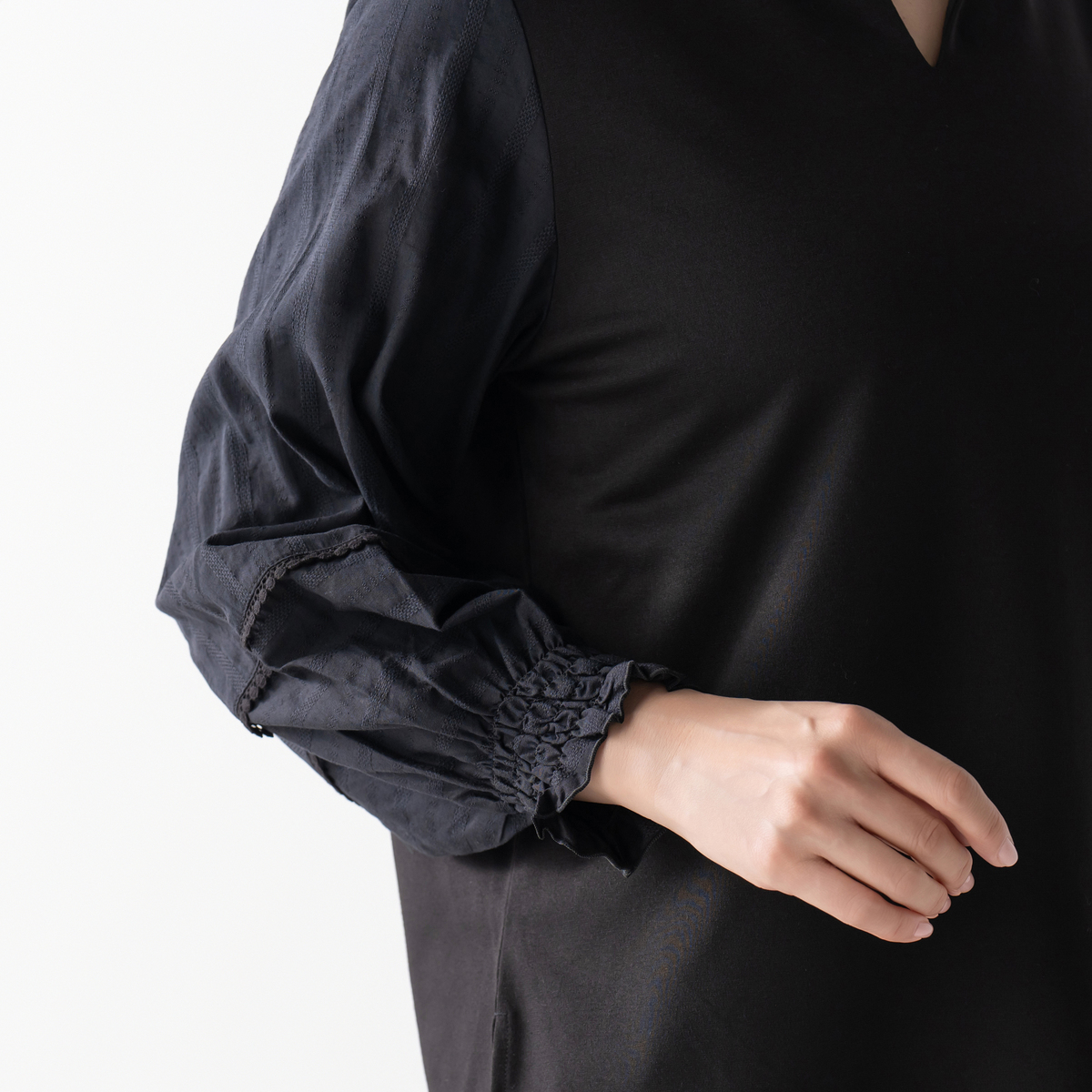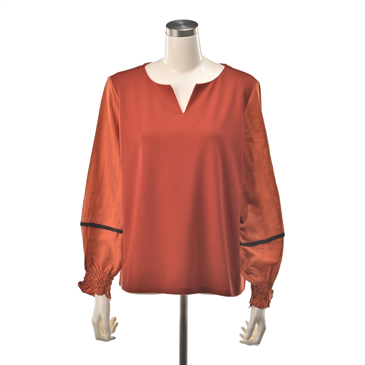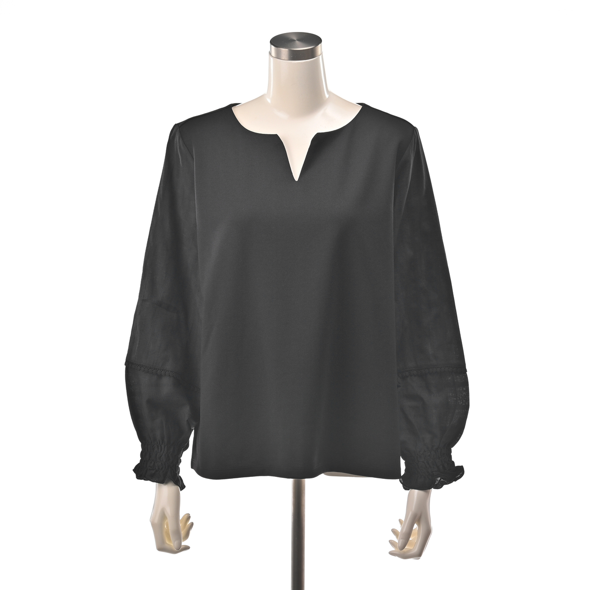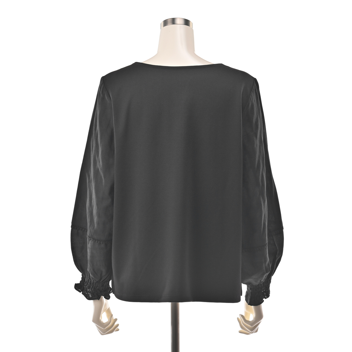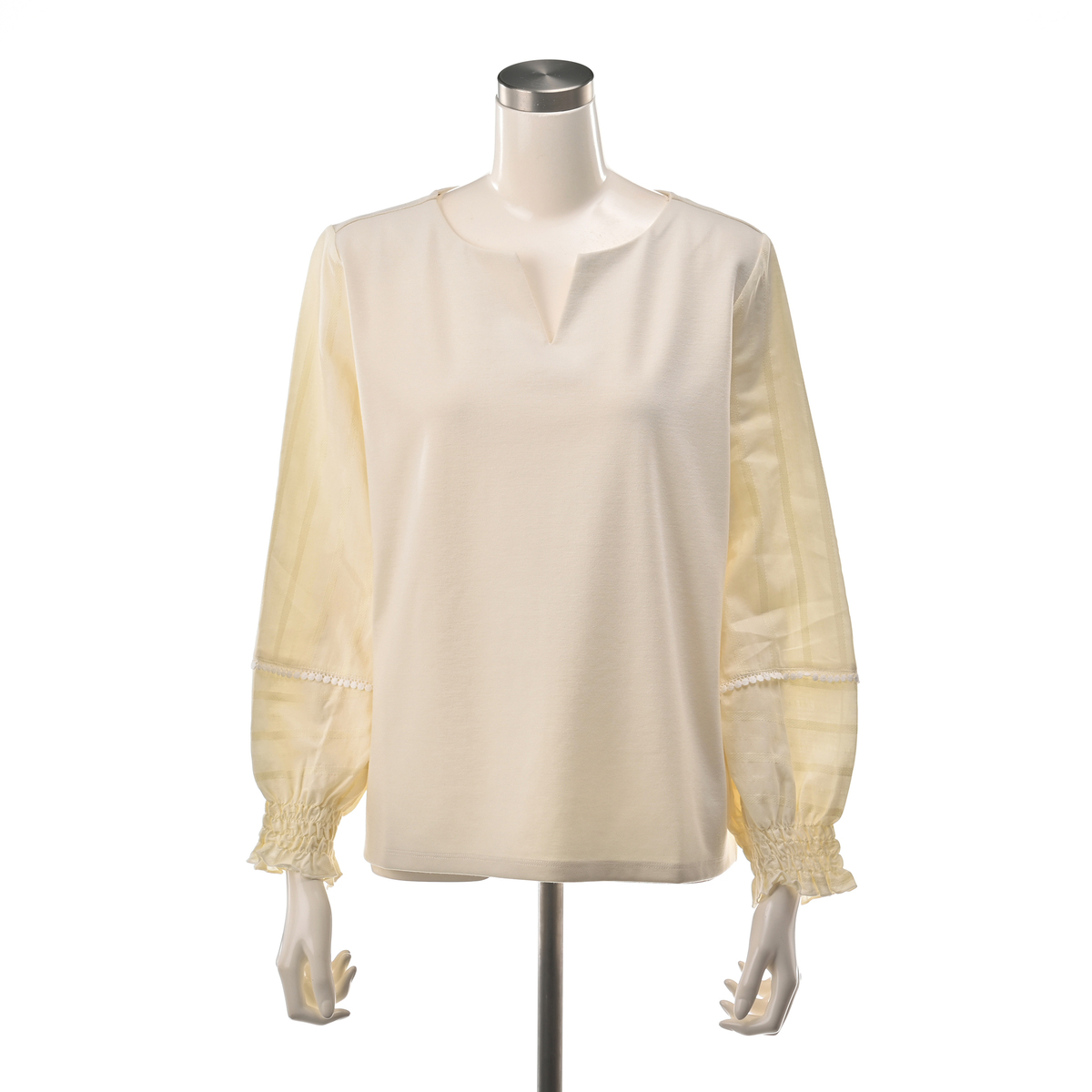 No. 747349 エニワイズ ピコレース袖の異素材キーネックプルオーバー