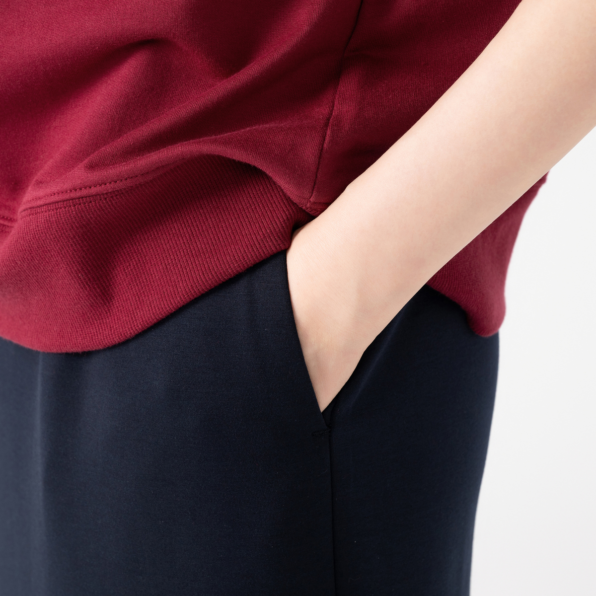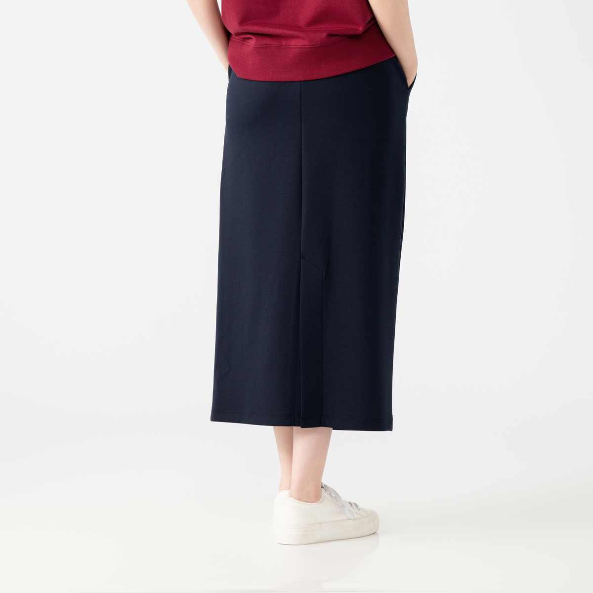 前後にダーツを入れ、腰まわりのフィット感と立体感を演出。ウエストは総ゴム仕様でラクな穿き心地です