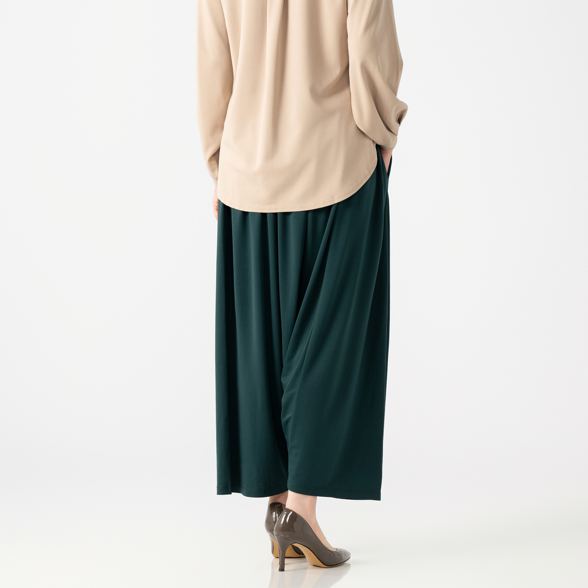 ラクに穿けて、おしゃれに決まるガウチョパンツ。上品な光沢感があり、オンオフ問わず活躍します