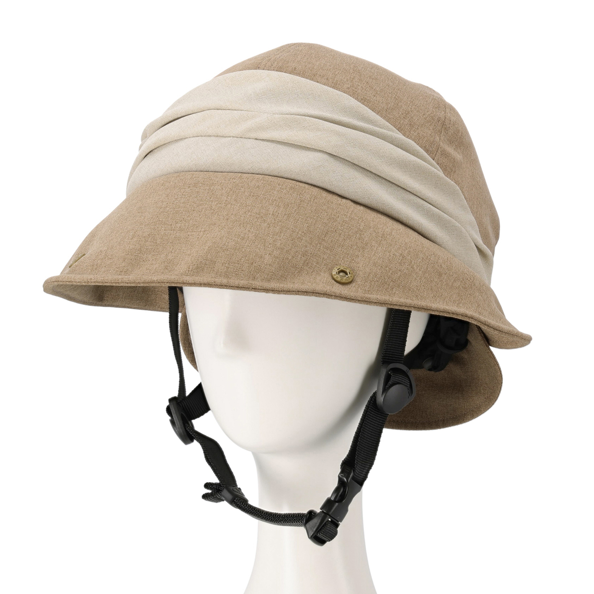 [商品内容] ・自転車用ヘルメット(帽子カバー付き) ・インナーパッド(内装)12mm厚×2 [サイズ] ヘルメット本体:約25×21×12cm(カバー除く) 頭周の目安:54〜57cm未満 [重量] 300g [材質] 外面:ポリカーボネート、内面:EPS(発泡スチロール) 帽子(ヘルメットカバー):ポリエステル [お手入れ] ヘルメットカバー:手洗い可 [使用方法] ツバの調整方法: 自転車乗車時以外は帽子のツバを下げた状態で使用いただけますが、自転車乗車時は、視界の妨げにならないよう、必ずツバを上げてご使用ください 使用用途(自転車乗車時以外、自転車乗車時)に合わせて、2箇所のスナップボタンを付け外しして、調整をおこなってください 帽子(ヘルメットカバー)の取り付け方法: 帽子をヘルメットに装着する場合は、帽子の縫製印とヘルメットの△の印を合わせるように入れ込んでください。※帽子のフチがヘルメットをしっかり覆うように取り付けてください 1.帽子をヘルメットに装着後、スライダーを引っ張り、紐を締め、帽子がヘルメットから脱落しにくいように調整してください。帽子を外す際はスライダーを緩めてください 2.スライダーを締めた後、紐の先端はゴムバンドに通すことで、バタつきを抑えることが出来ます インナーパッド(内装): 標準装着パッド(6mm厚)でヘルメットのかぶり心地がゆるい場合は、同梱品パッド(12mm厚)に交換することで、よりフィット感を高めることができます ■取り扱い説明を十分にご確認の上、ご使用下さい 【中国製】 [注意事項] ※このヘルメットは自転車用であり原動機付自転車及び自動二輪車に乗る場合には使用できません ※このヘルメットは自転車や走行遊具乗車用に設計されているため、その用途のみでご使用ください ※このヘルメットの用途、及び使用年齢範囲・サイズをお確かめのうえご使用ください ※頭のサイズによく合ったヘルメットを選び、また大きさを調整できるものにあっては、それを用いて正しくサイズ調整をおこなってから着用してください ※ヘルメットを使用する場合は、あみだ(ななめ)かぶりにならないようにかぶり、あごひもを必ず正しく締めてください ※ヘルメットを着用する前に、あごひもを最適な状態に調整し、しっかり留めてください。調整が不完全ですと万一転倒した際にヘルメットが脱落するおそれがあり大変危険です ※夏期の自転車の上やカゴ内、直射日光の当たる車の中や、冬期の暖房のそばなど高温・高熱(50℃以上)になる場所への放置や保管は、ヘルメットの品質低下を招くおそれがありますのでおやめください ※一度でも大きな衝撃を受けたヘルメットは、外見に損傷がなくても同じ箇所に再度衝撃が加わりますと衝撃を吸収しきれない事がありますので絶対に使用しないでください。保管場所も落下のおそれのない平らな場所を選びましょう ※ご使用前に帽子が正しく取り付けられているか必ず確認してください。取り付けが不完全ですと走行中に帽子が外れるおそれがあり、大変危険です ※ヘルメットは前から後ろにかけて水平になるように正しく着用してください ※強風を受けた場合、風で帽子が外れる場合がありますので十分にご注意ください ※当社が指定する帽子(ヘルメットカバー)とヘルメットの組み合わせのみ着用が可能です ※ヘルメット、専用帽子を改造しないでください(刺繍、ワッペン、その他装飾品の取り付け等) [お手入れ] <帽子(ヘルメットカバー)> ・ツバ部分がワイヤー入りのため、多少型崩れを起こす場合がございます ・帽子は撥水などの加工はされておりません。雨や雪・水に濡れてしまうと色褪せや生地の縮みが起きる可能性があります ・雨などで濡れた場合は形を整えて、日陰で吊り干ししてください ・濡れたままの放置、タンブラー乾燥はお避け下さい ・濡れたまま放置すると、色泣きしたり、白物に色移りする事が有りますので、ご注意ください ・摩擦により色落ちや毛羽立ちが生じることがあります ・漂白処理はできません ・アイロンはお避け下さい ・ベンジン、シンナー、ガソリンなどの有機溶剤を使用したもので拭かないでください