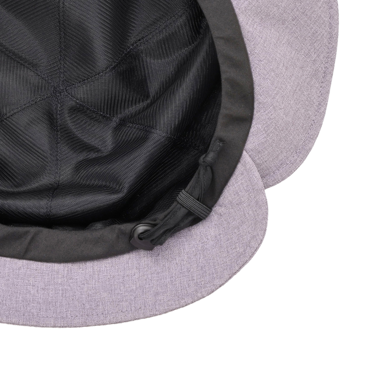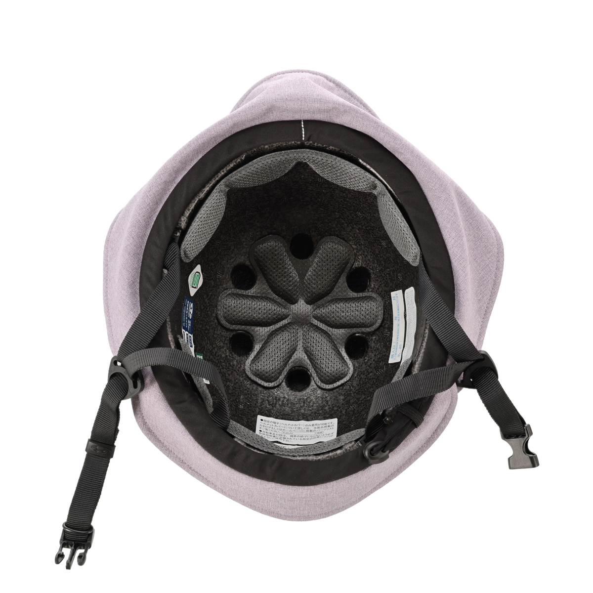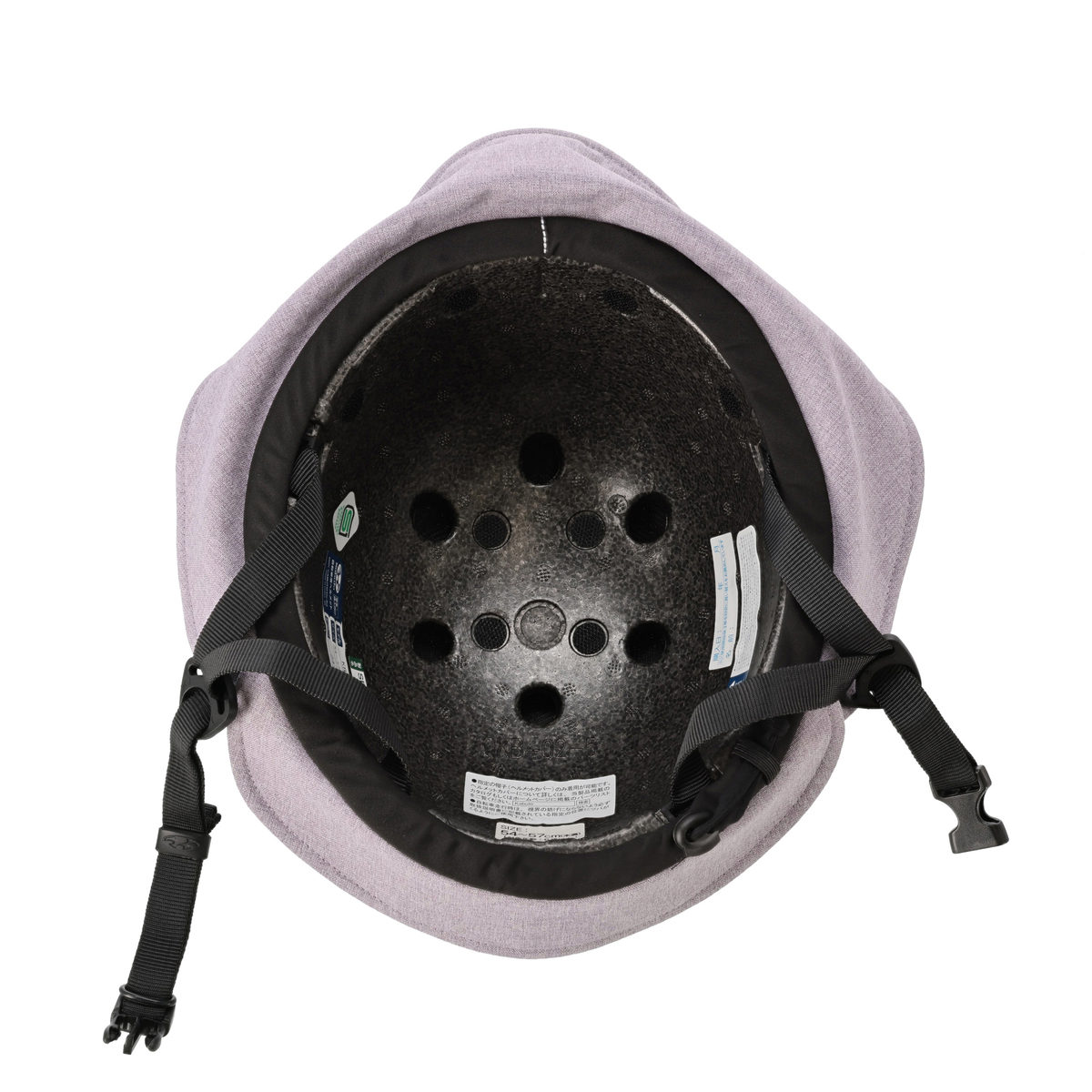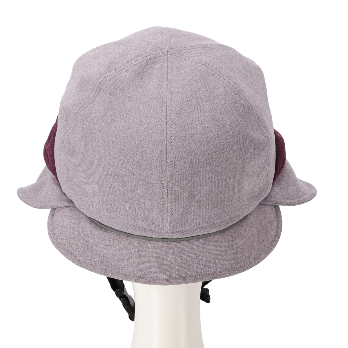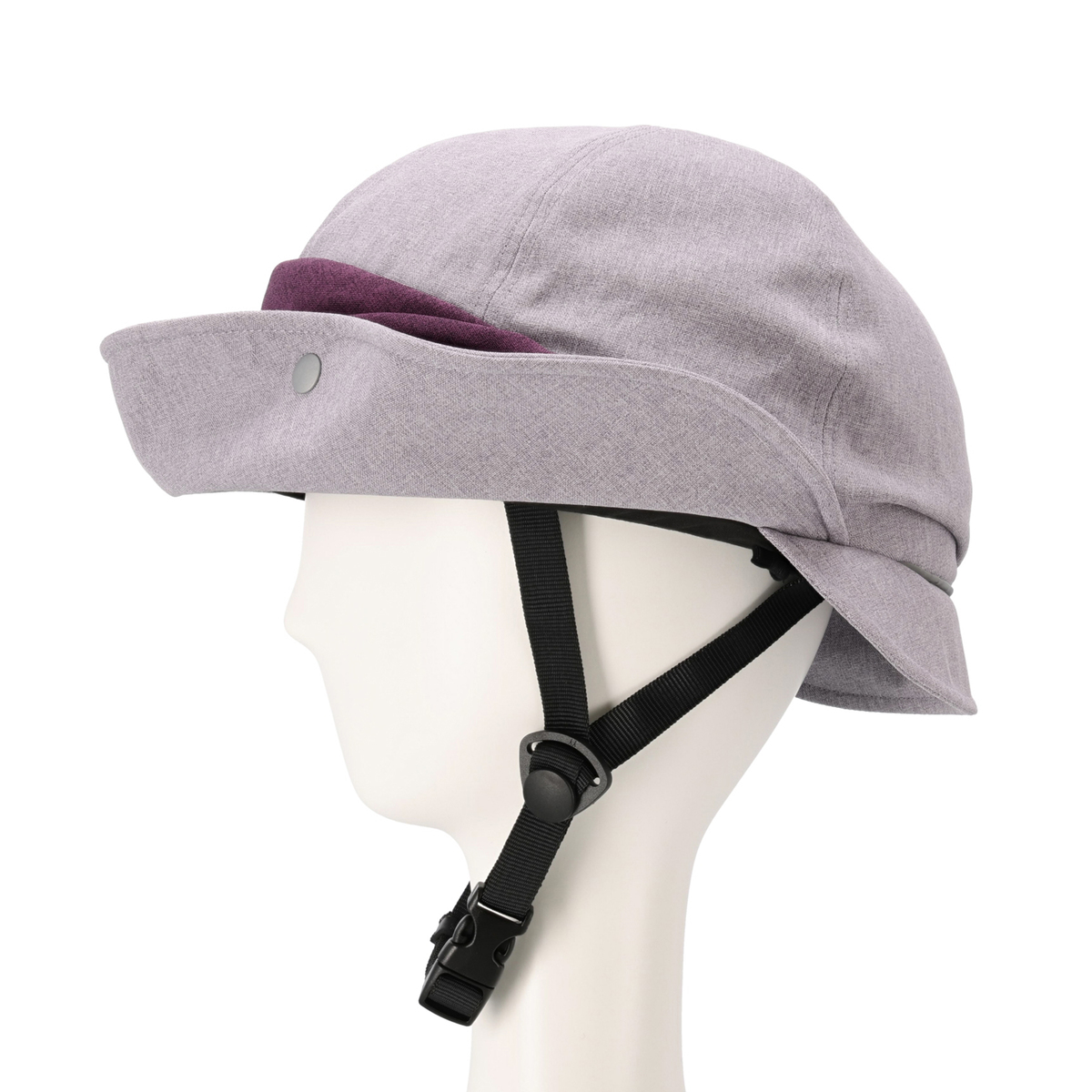 ボタンを使ったツバの跳ね上げ構造で、走行時のバタつきを抑え、視認性を確保。帽子カバーの縁にある紐を締めることで内部のヘルメットとしっかり密着します。SGマーク付きで、反射材も付いています