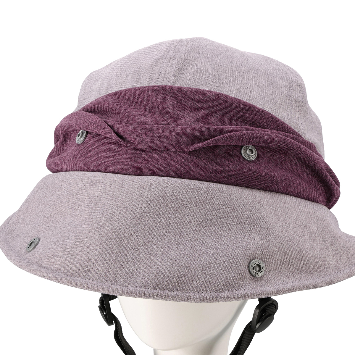 エレガントでクラシックな印象のクロッシェタイプで、違和感なく使えます。軽量でコンパクトな設計で、下向きのブリム(ツバ)がフェイスラインをすっきりと見せます。クラウンの下部には飾り布をあしらい、デザインにアクセントを加えました