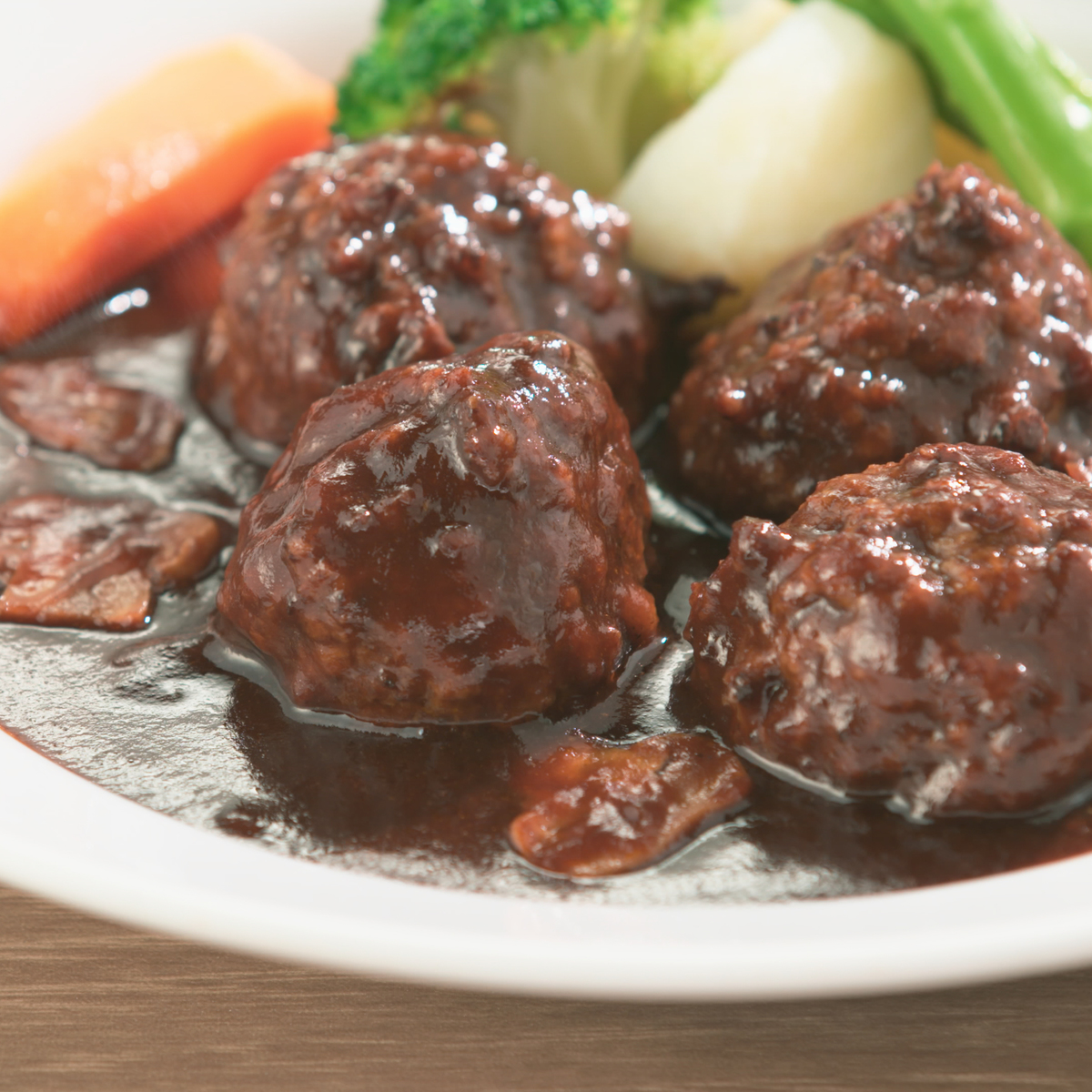 [アレルギー物質特定原材料8品目] 卵、小麦、乳 [内容量] 270g(団子30g×4+内添ソース144g+マッシュルーム6g)×3袋 [賞味期限] 出荷時点で賞味期限まで120日以上ある商品をお届けします [保存方法] 開封前:冷凍‐18℃以下 開封後:お早めにお召し上がりください [お召し上がり方] 沸騰したたっぷりのお湯に、凍ったままの商品を袋ごと入れ、約23分間温めてください [注意事項] ※一度解凍したものは再び凍結しないでください ※調理する際は外袋から取り出してください ※袋が熱い鍋のふちにふれたり、鍋からはみ出していると、溶ける場合があります ※加熱後は袋も中身も熱くなりますので、やけどにご注意ください [原料原産地] ミートボール(牛肉(日本)) [原産国] 日本 [原材料] ソース(フォンドヴォー、ソテーオニオン、トマトケチャップ、 にんじんペースト、ブラウンルー(小麦粉、植物油、ぶどう糖)、 マッシュルーム、牛脂、みりん、ビーフエキス、マッシュルームエキス、ワイン、トマトペースト、オニオンエキス、しょうゆ(小麦粉・大豆を含む)、食塩、砂糖、香辛料、酵母エキス、チキンエキス)、ミートボール(食肉(牛肉(日本)、豚肉)、つなぎ(ゼラチン、液全卵、パン粉、粉末状植物性たん白)、たまねぎ、牛乳、粒状植物性たん白、オニオンエキス、ぶどう糖、しょうゆ、食塩、ワイン、香辛料)/カラメル色素、増粘剤(加工デンプン)、揚げ油(なたね油、パーム油)