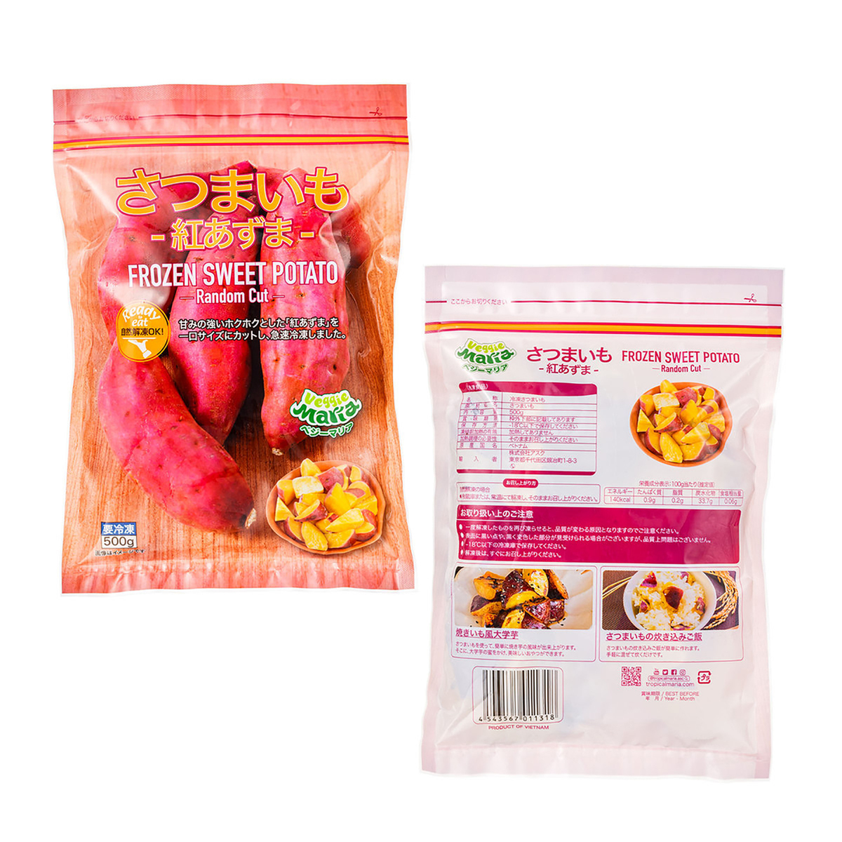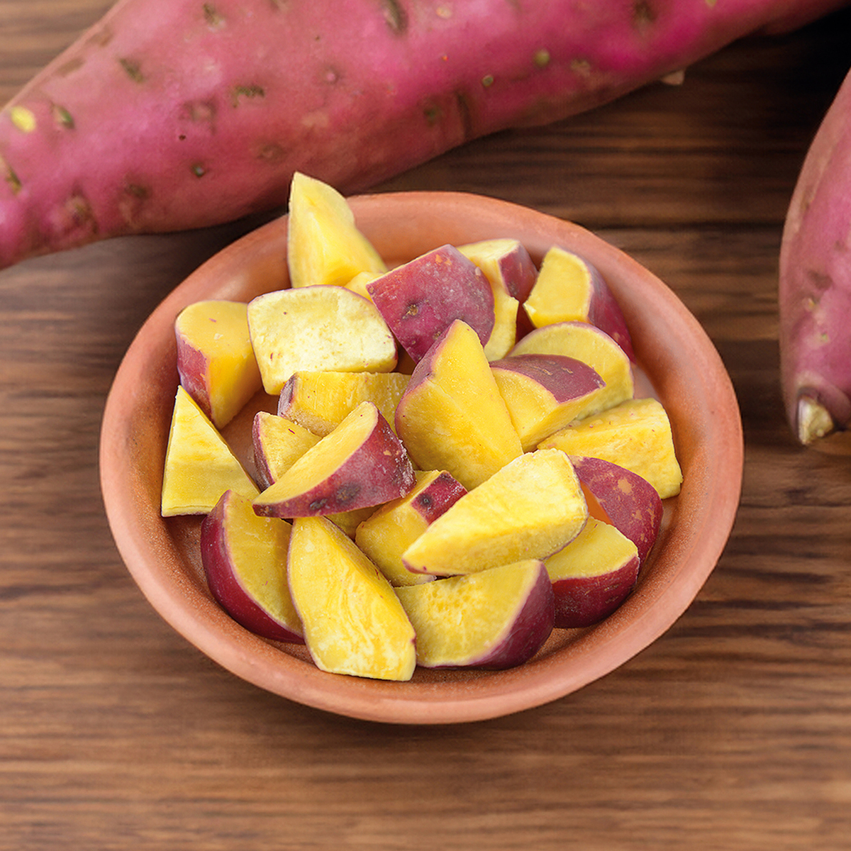 甘みの強いホクホクとしたさつまいも「紅あずま」を一口サイズにカットし、急速冷凍。ベトナム産のさつまいもを使用しています