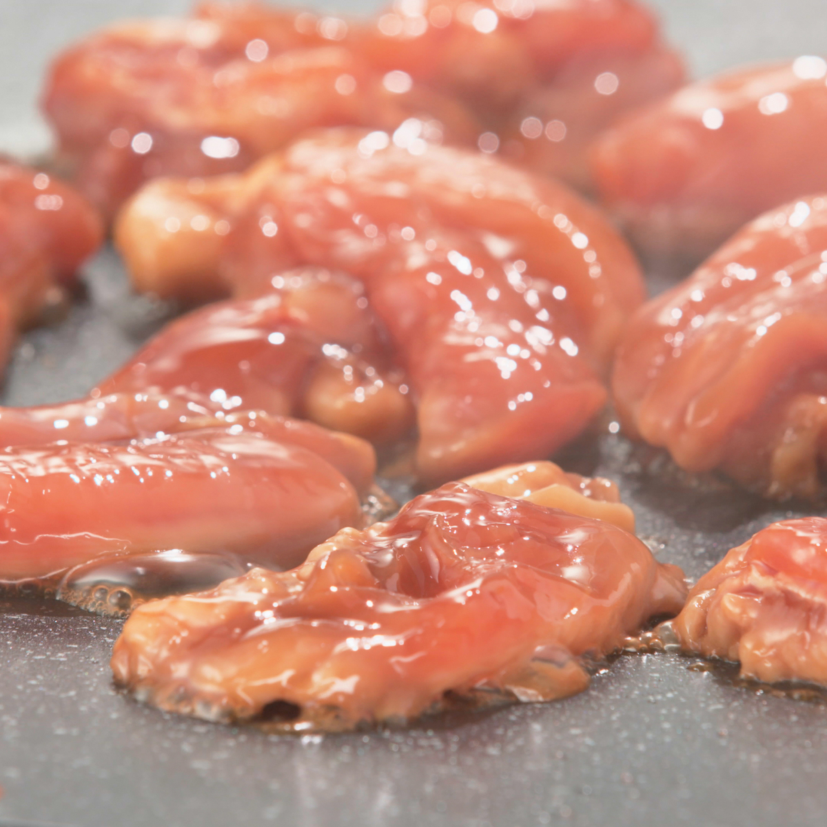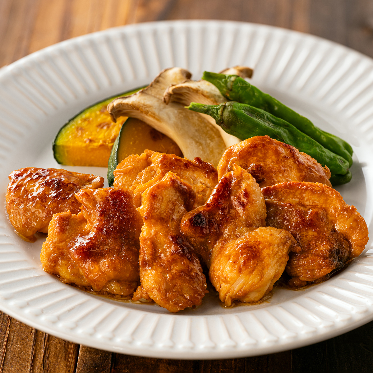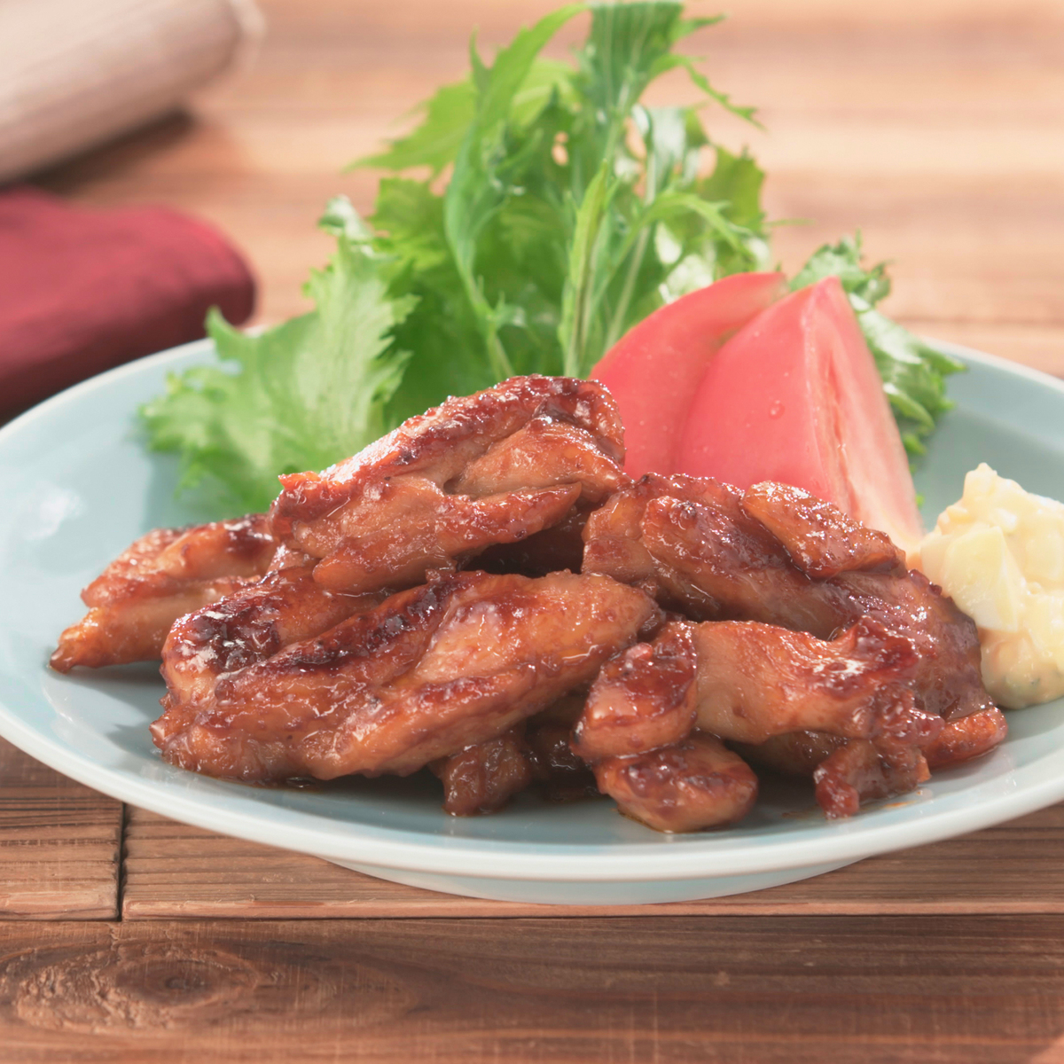 宮崎県産若鶏のモモ肉を使用。モモ肉はジューシーな部位となります。味付けがしてあるので焼くだけで照り焼きチキンが簡単に。お弁当のおかずにぴったりです