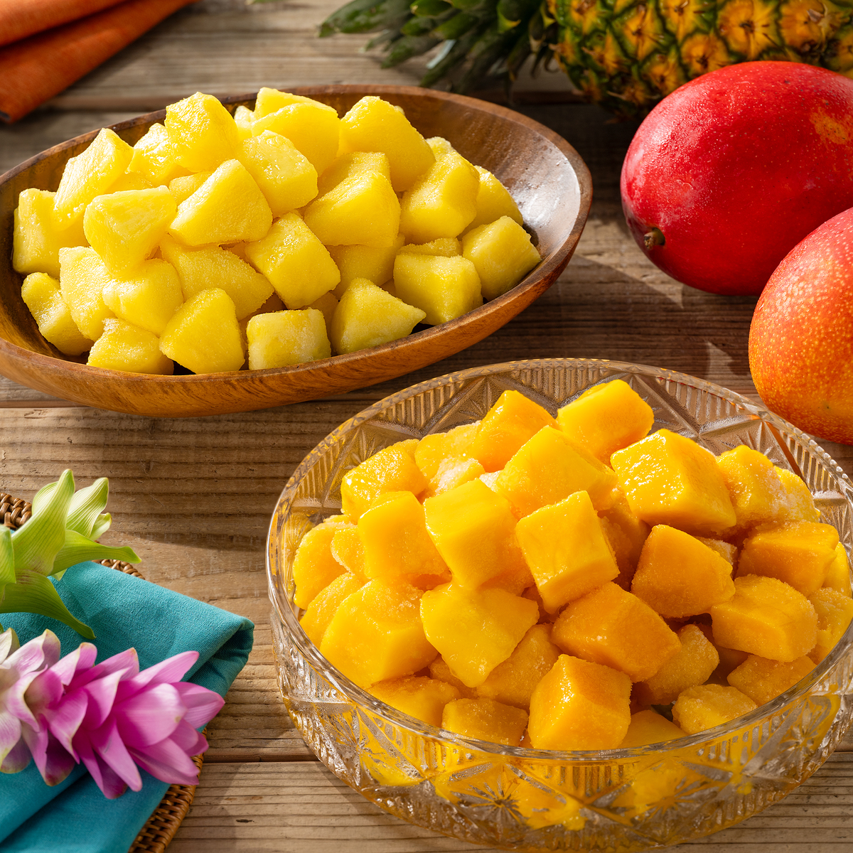 以前にマンゴーを購入、お嫁さんにお裾分け今年リクエストがあり再購入です。 アイス状のままもよし、二種でスムージー、好きな量ヨーグルトやアサイーにと足りない位、美味しい時期収穫したものを食卓で手軽に楽しめました。娘はパイナップル押しで私はマンゴーかな、またオフの時ポチっとしますので引き続き良いものつくってください。