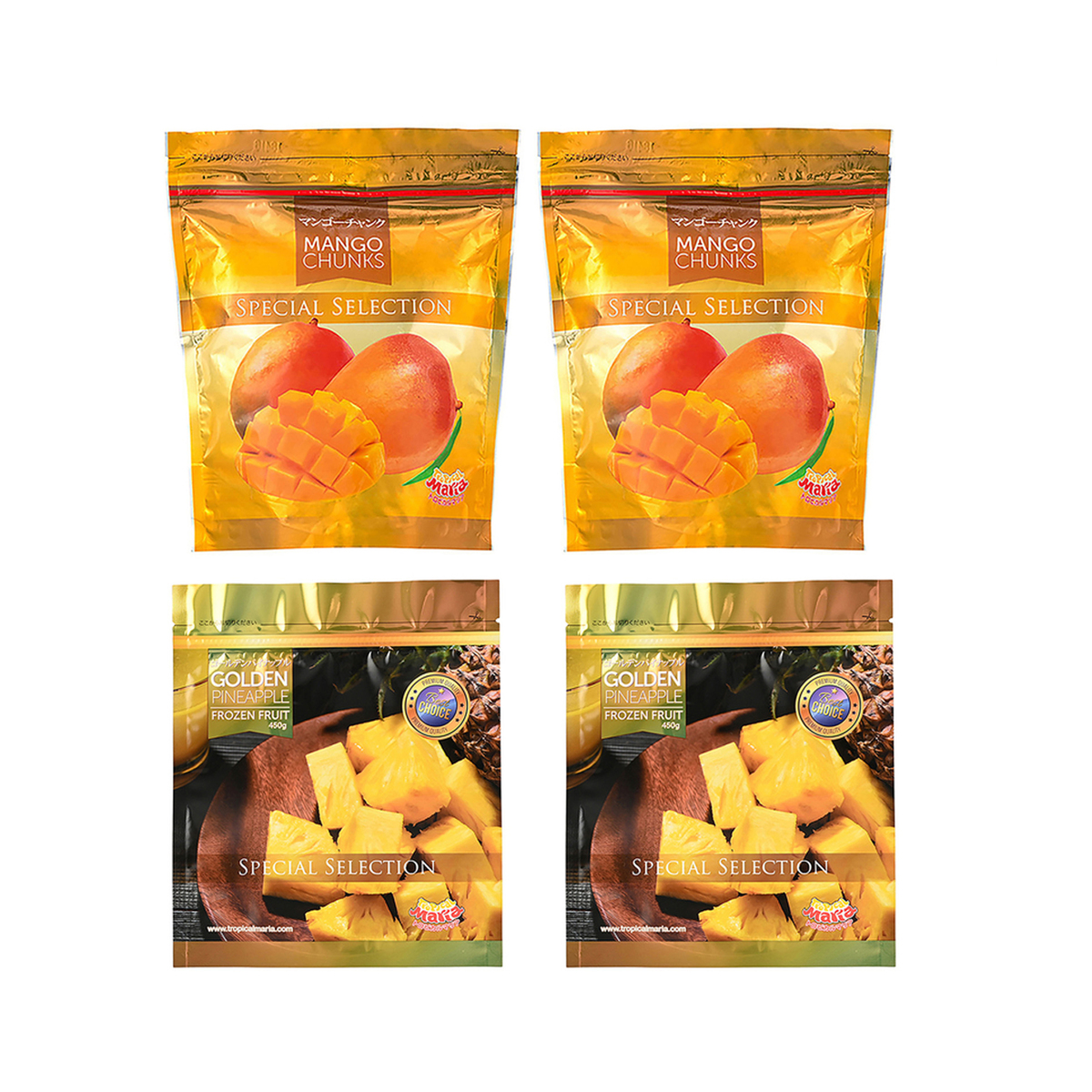 [アレルギー物質特定原材料8品目] なし [セット内容] ・マンゴーチャンク450g×2袋 ・パイナップル450g×2袋 [賞味期限] 出荷時点で賞味期限まで240日以上ある商品をお届けします [保存方法] 開封前:冷凍(-18℃以下)にて保管してください 開封後:解凍、開封後はお早めにお召し上がりください [お召し上がり方] <共通> 冷蔵庫または常温で半解凍し、そのままお召し上がりください <マンゴーチャンク> 解凍後1時間を目安にお召し上がりください [アレンジ例] マンゴー&パンケーキ:パンケーキを2枚用意し、間にマンゴーをたっぷりはさみます。ホイップクリームをトッピングし、上からたっぷりとマンゴーピューレをかけて出来上がり マンゴーデザート:ヨーグルトまたはアイスクリームに、半解凍または解凍したマンゴーをトッピングします <パイナップル> 完全解凍しますと、果汁が出ますので、スプーンでパイナップルに果汁をかけてお召し上がりください [注意事項] ※再凍結しますと、味・品質・鮮度が落ちますのでご注意ください ※冷蔵庫内に保存すると庫内の臭いが付着する恐れがございますのでご注意ください [原産国] ゴールデンパイナップル:コスタリカ又はエクアドル マンゴー:ペルー [原材料] ゴールデンパイナップル:パイナップル マンゴー:マンゴー