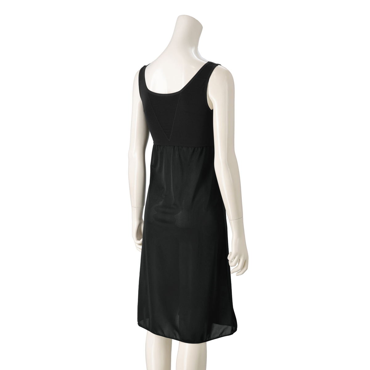 ウエストから下部分には滑りの良いトリコット素材を使用しました。スカートやワンピースの透け防止に。静電気が起こりにくい加工を施しているので、アウターのまとわりつきを軽減します。ロングスカートやワンピースも透けにくいよう、膝まである長めの丈設定。座る時やしゃがんだ時もしっかりカバーします
