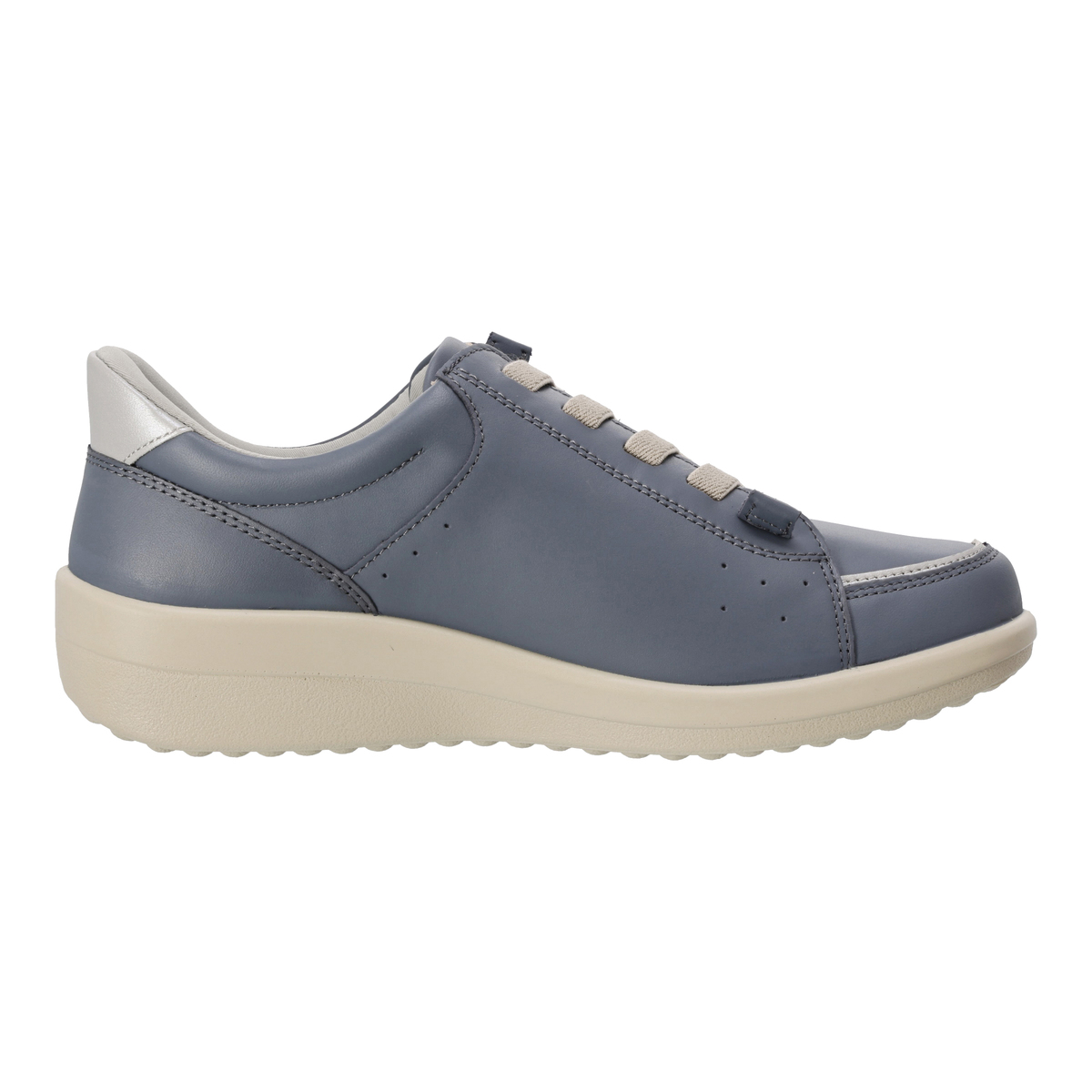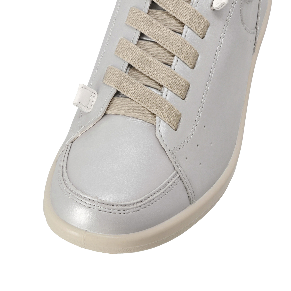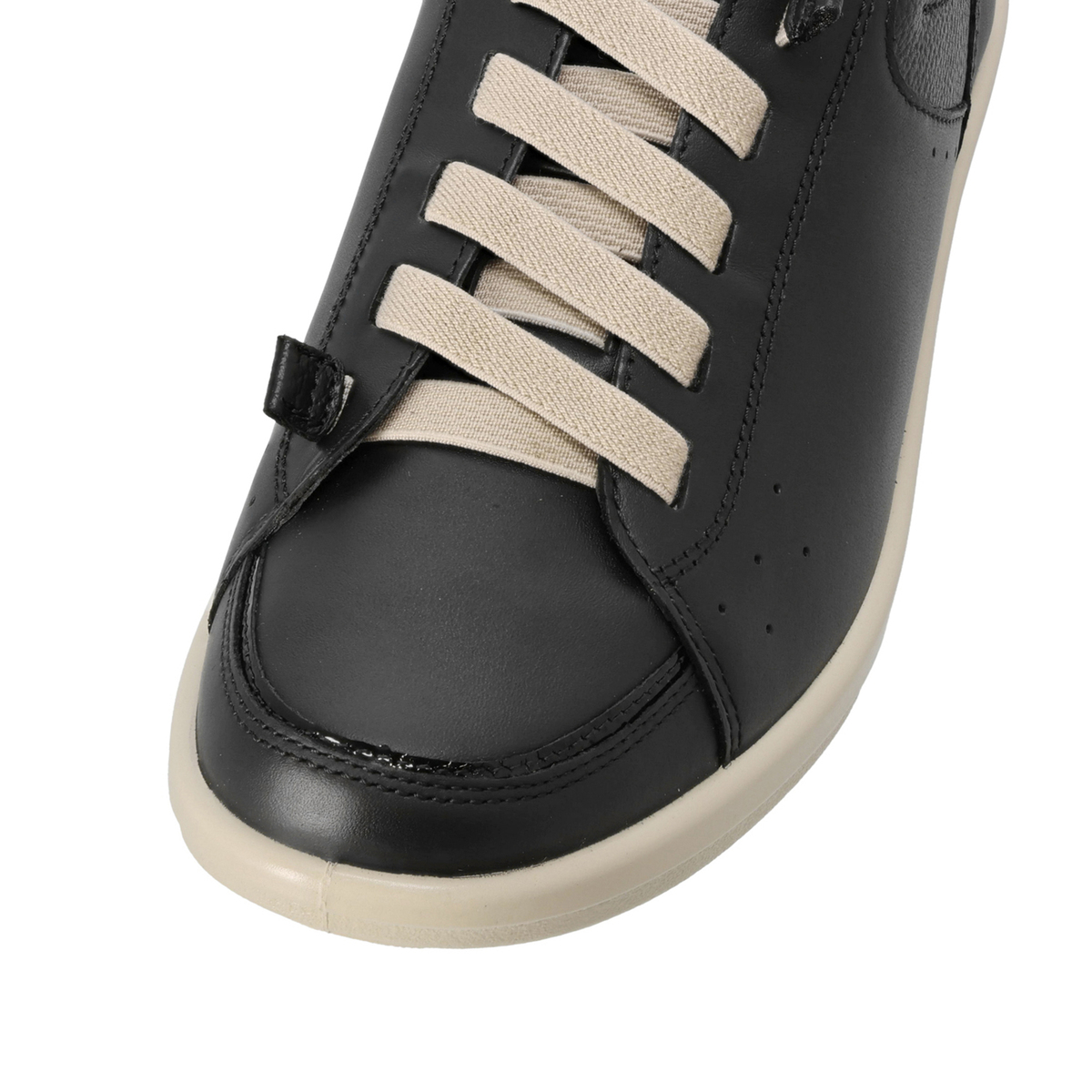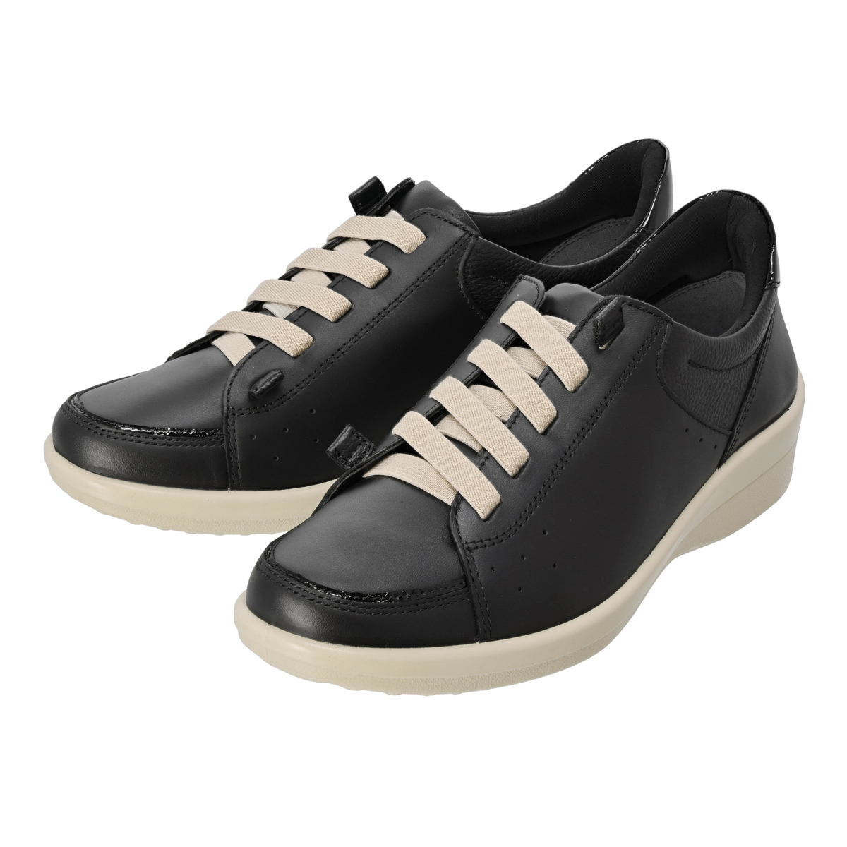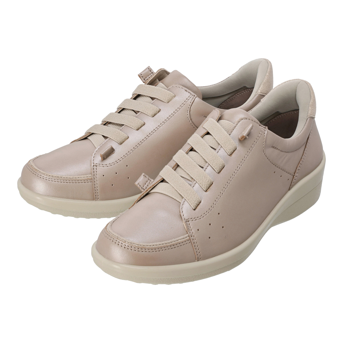 牛革を使ったゴム紐スリッポンシューズ。ゆったり4E設計で、ゴム紐なので着脱しやすく、甲のフィット感はゴム紐で調整できます