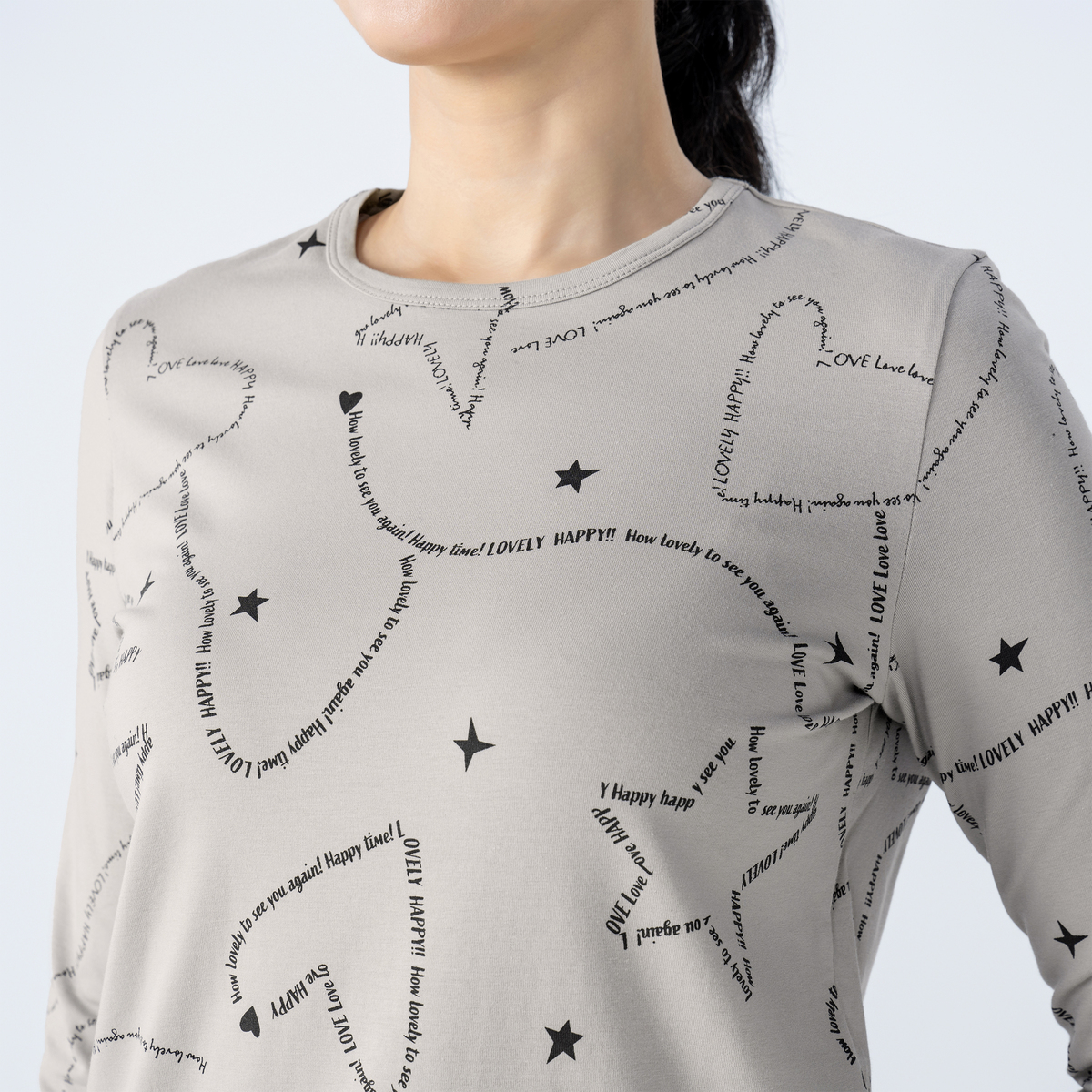 スターのロゴプリントが目を引く長袖Tシャツ。オリジナルのクリアーベア天竺素材を使用しています