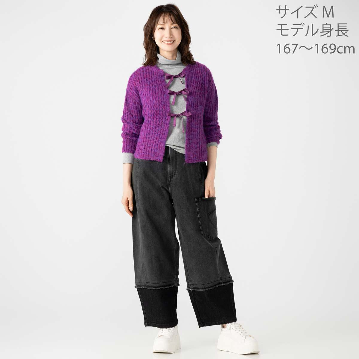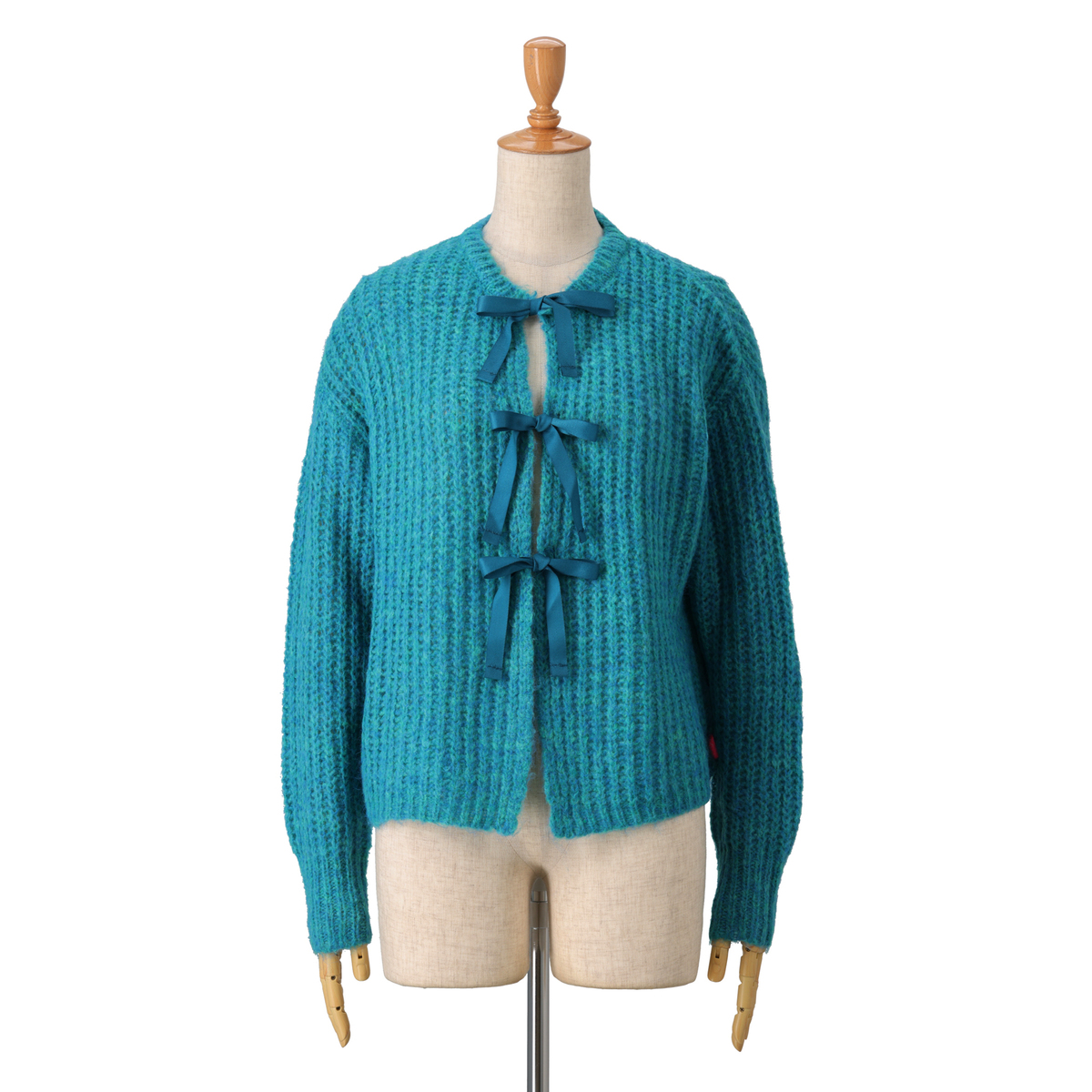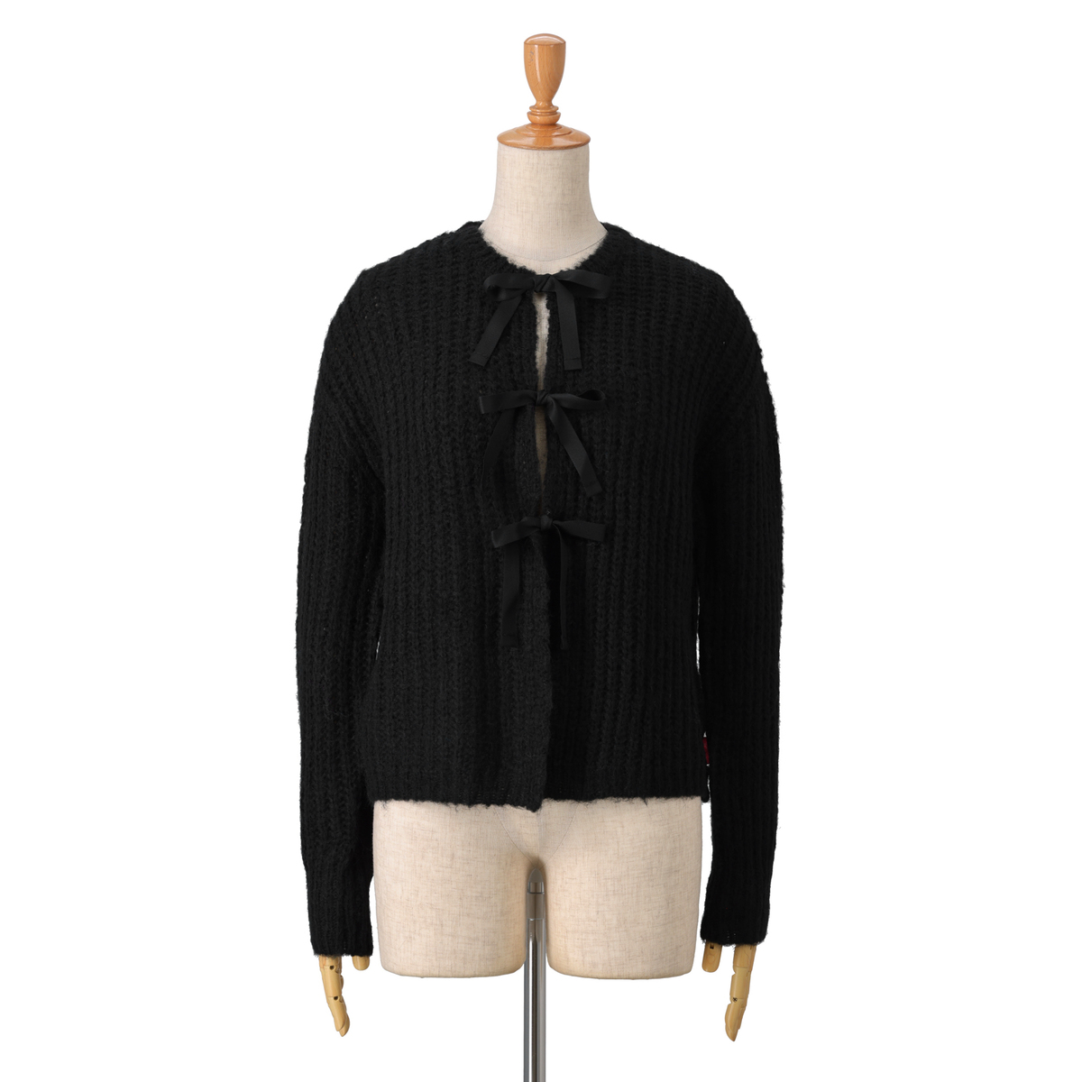 コンパクトなシルエットのショート丈ニットカーディガン。フロントのリボンは結んだり垂らしたり、着こなしに合わせてアレンジが楽しめます