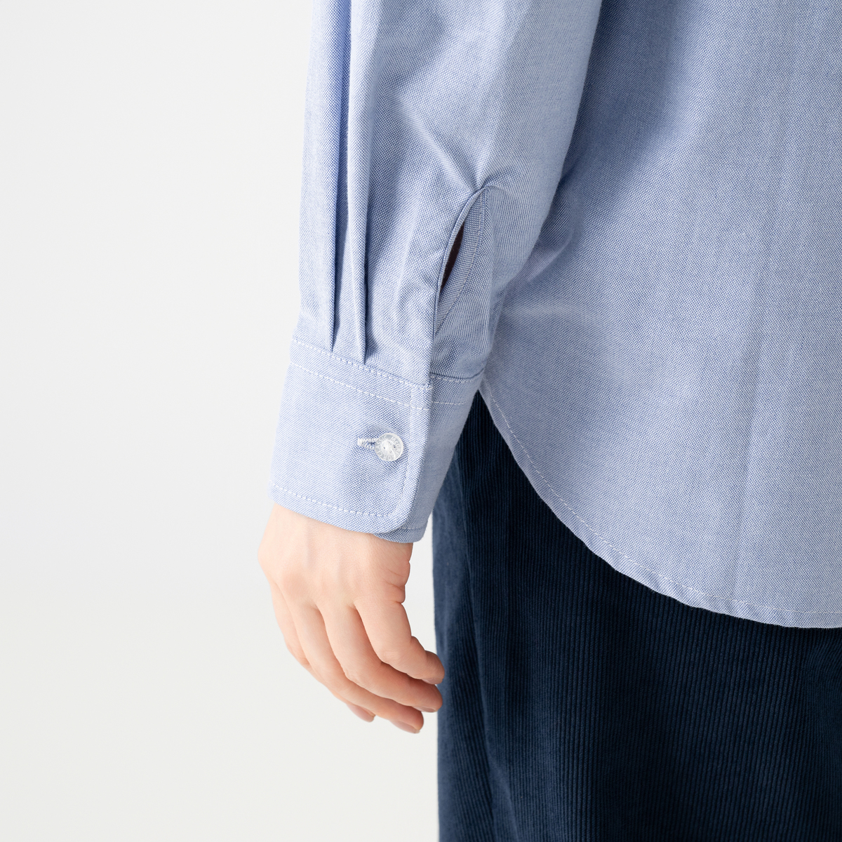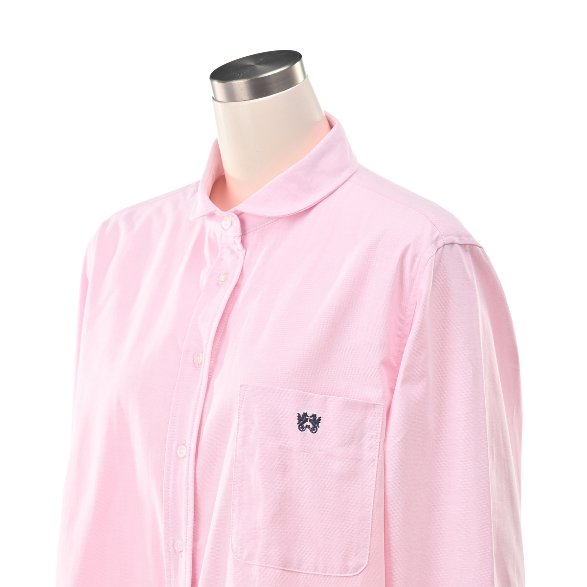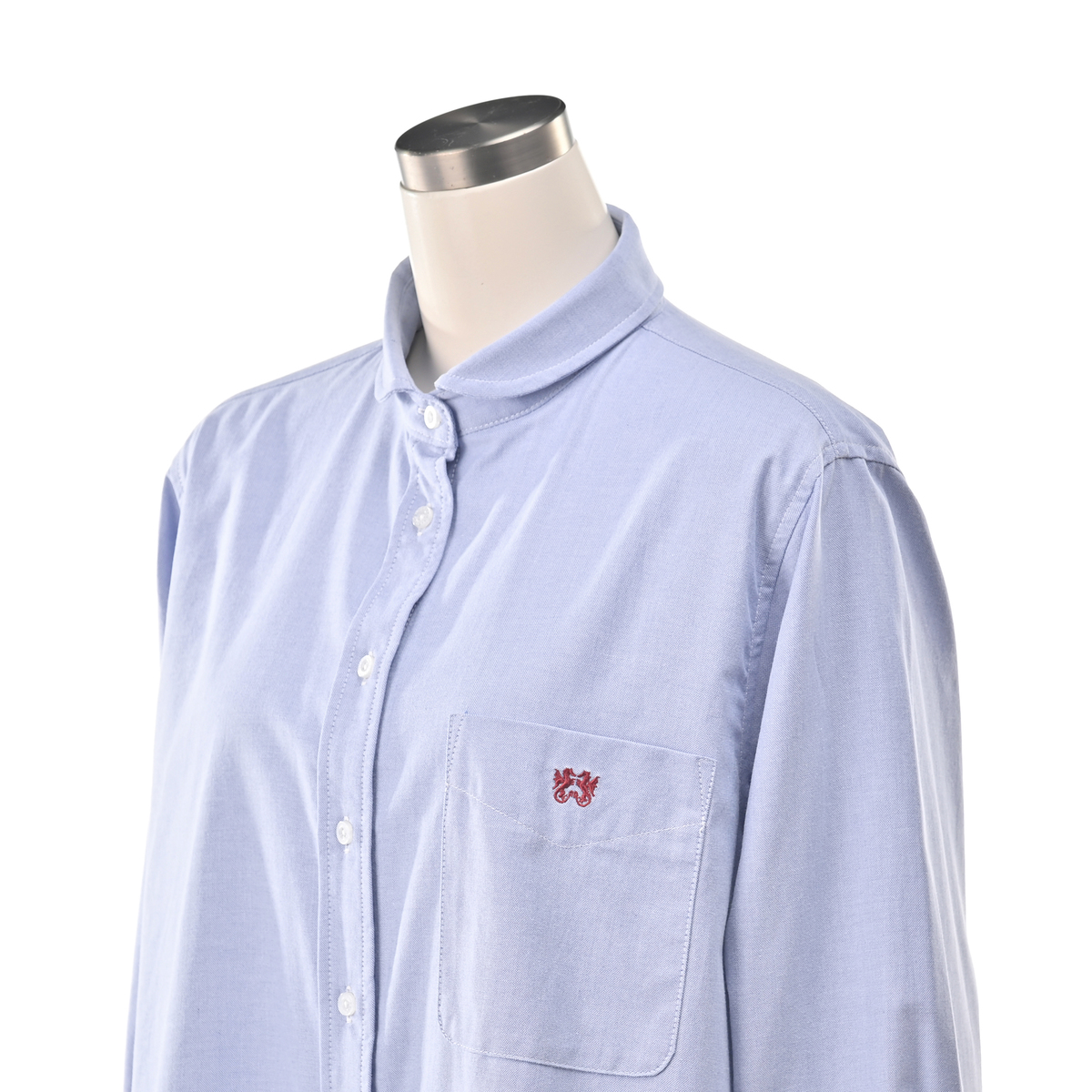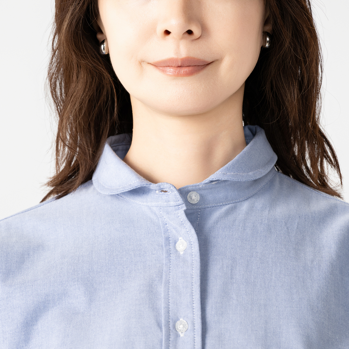 オックスフォード生地で仕立てたシャツ。柔らかなカーブを描く丸襟が洗練された雰囲気を演出してくれます