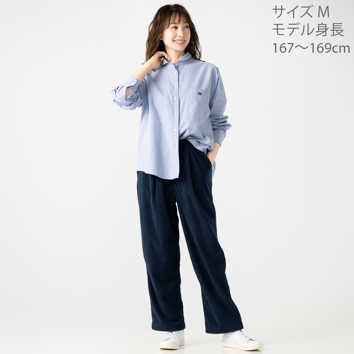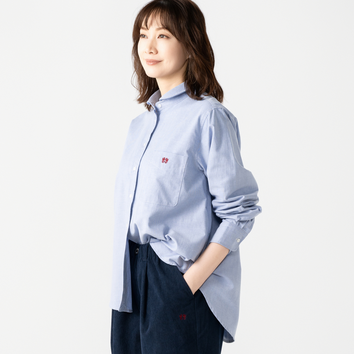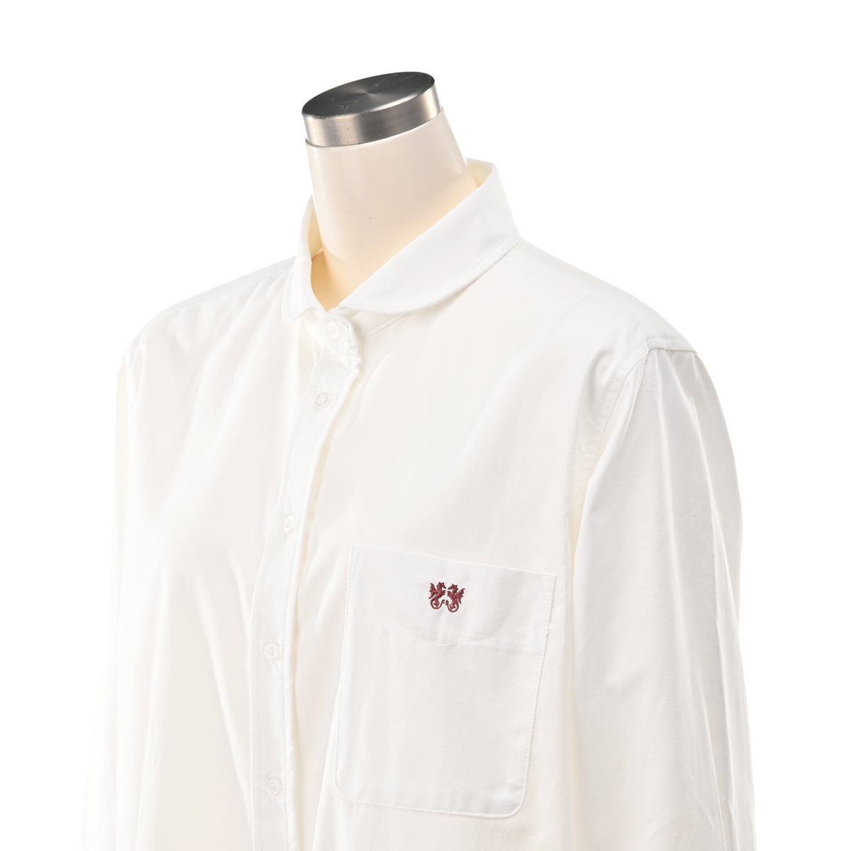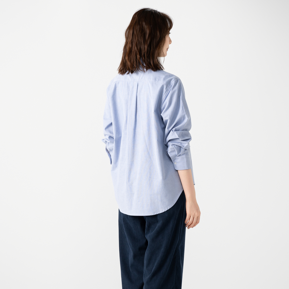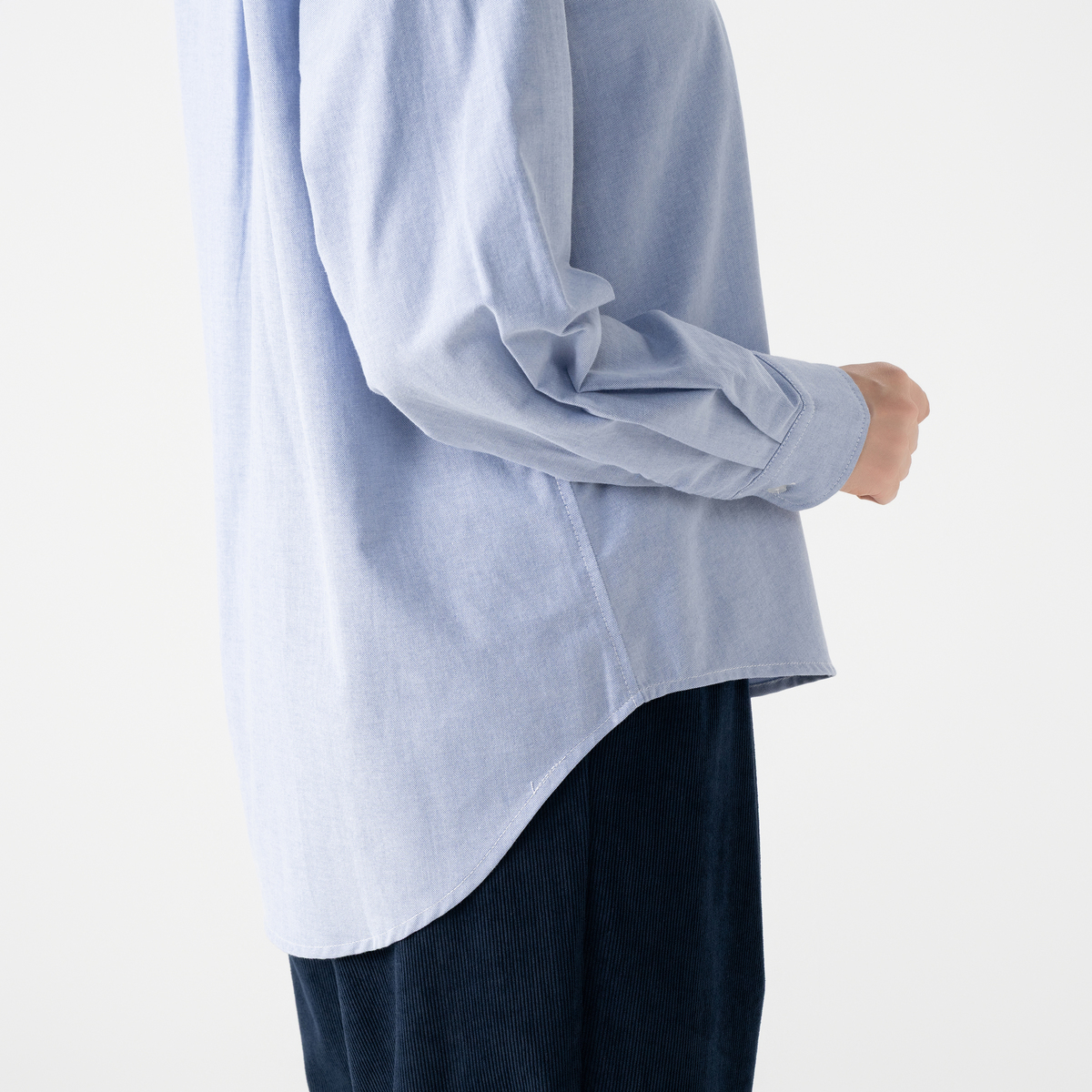 オックスフォード生地で仕立てたシャツ。柔らかなカーブを描く丸襟が洗練された雰囲気を演出してくれます