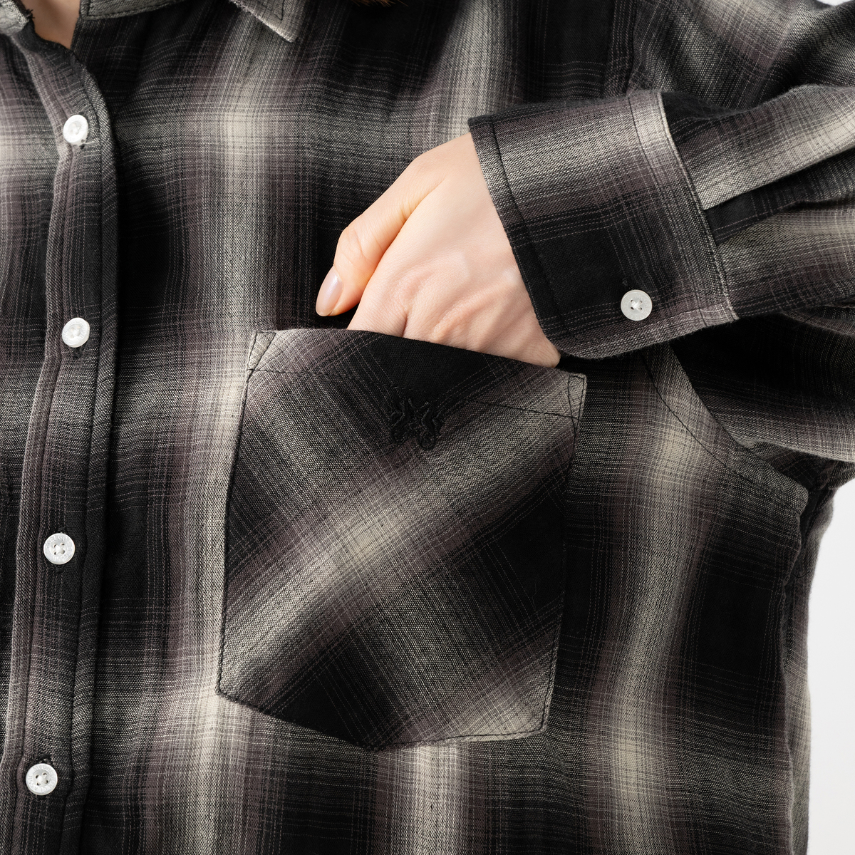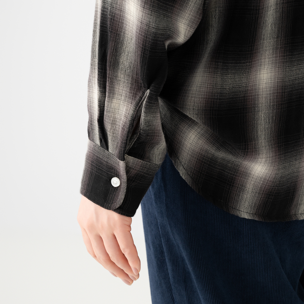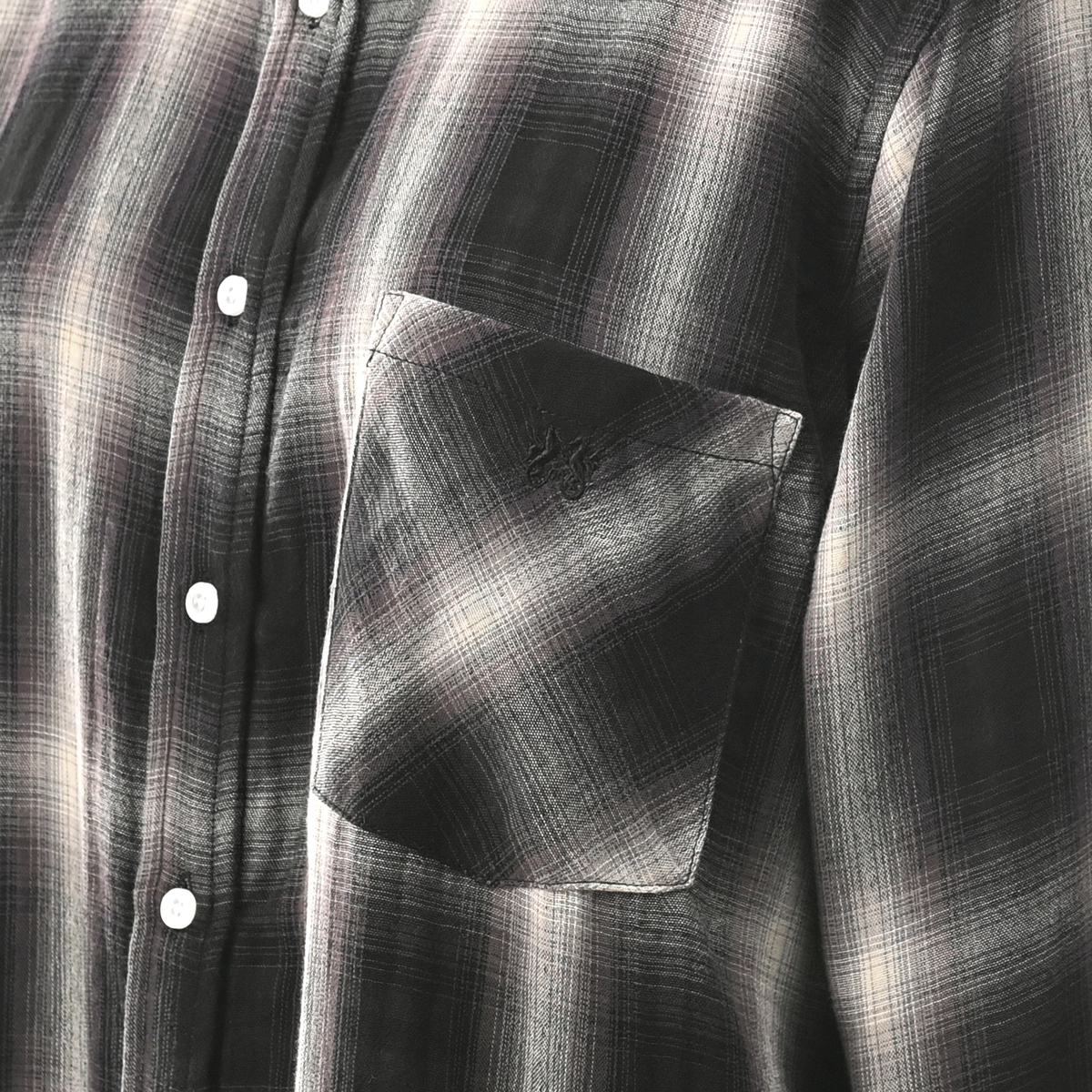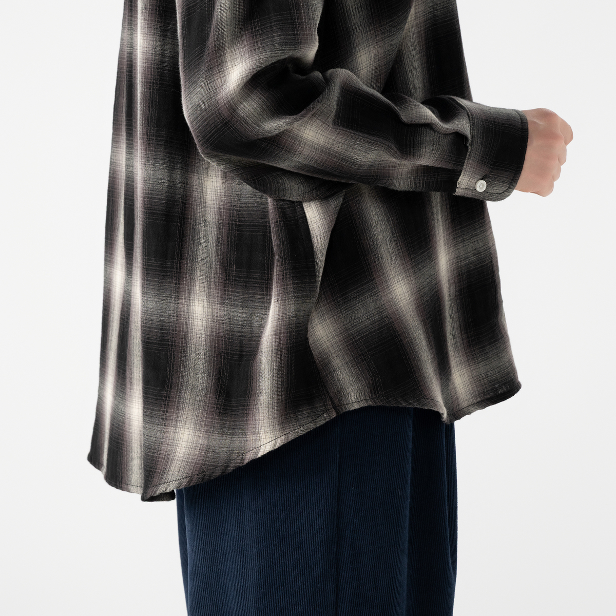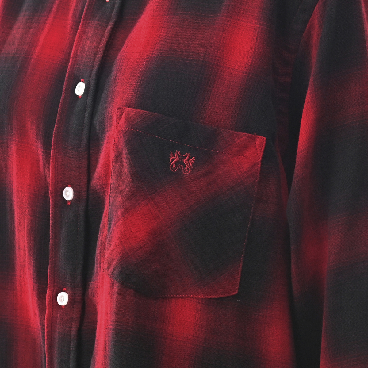 普遍的なチェック柄でありながら、素材と配色により一味違う奥行きを表現。デニムやチノパンでカジュアルに、スラックスやスカートできれいめにも着まわし可能です。同色系のドラゴン刺繍がさりげない個性を添え、幅広いシーンで活躍します