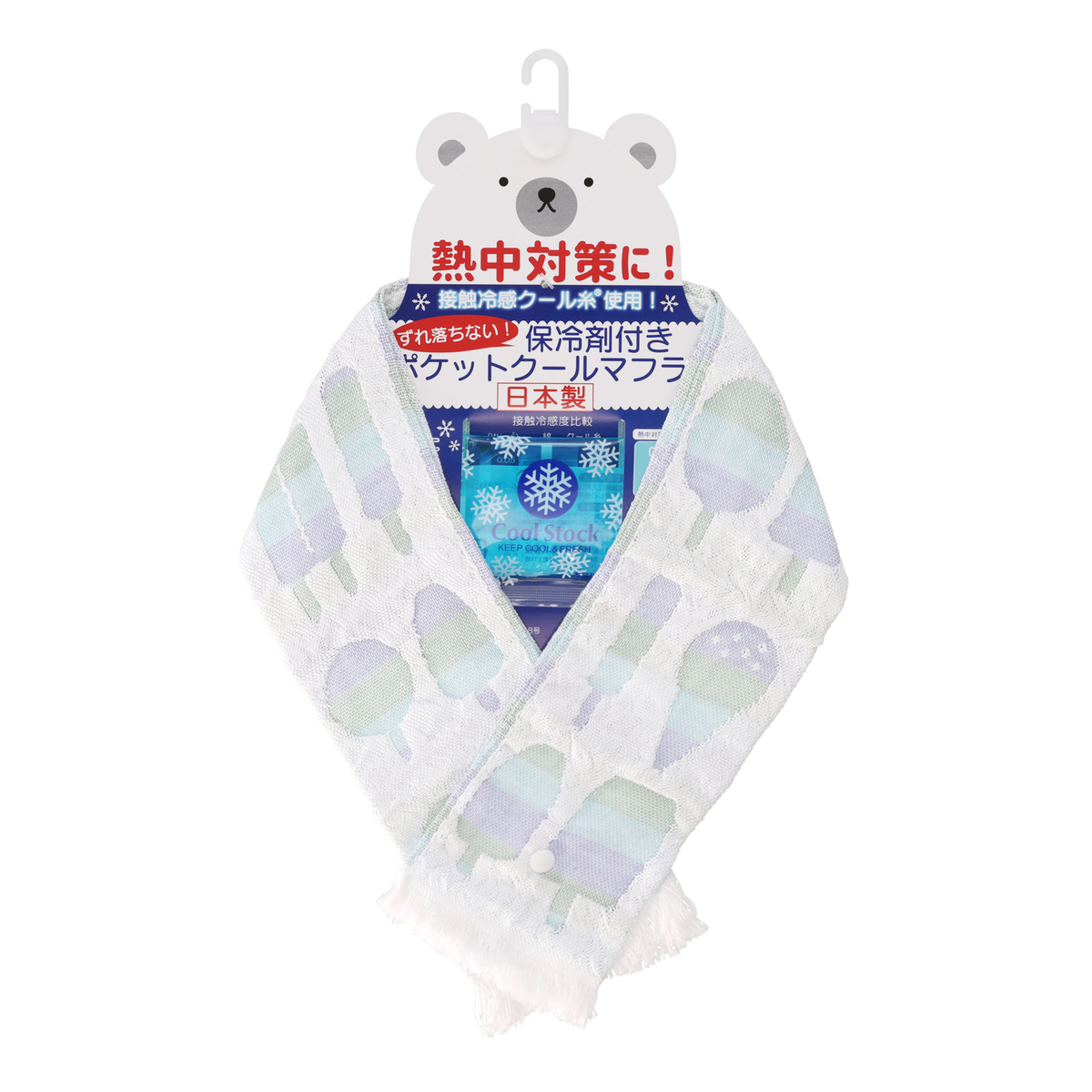 ECO de クールシリーズ ボタン付き保冷剤ポケットマフラー