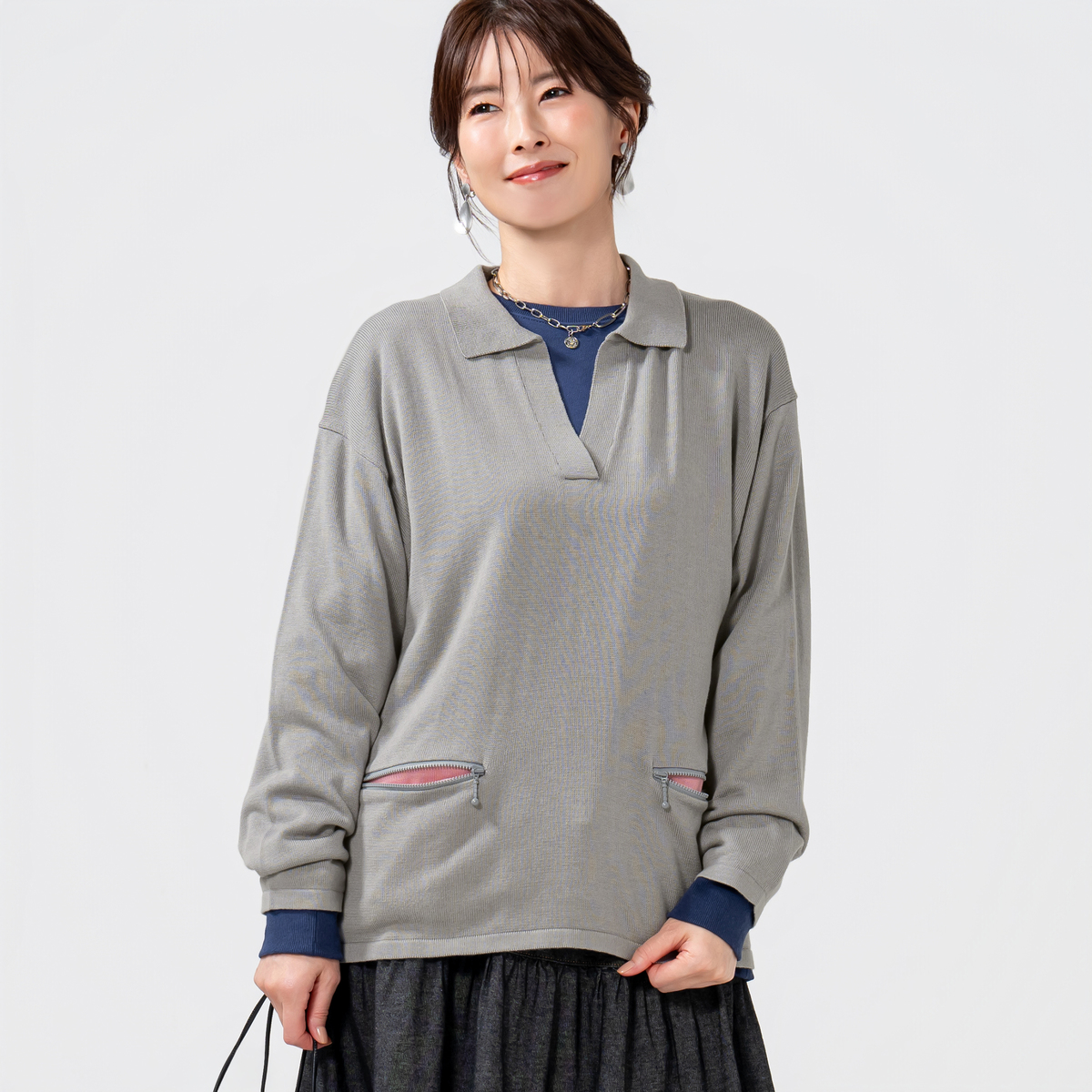 No. 747545 GRC 衿付きハイゲージニットプルオーバー