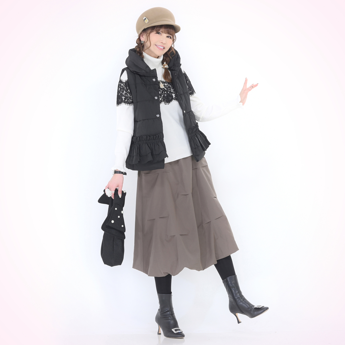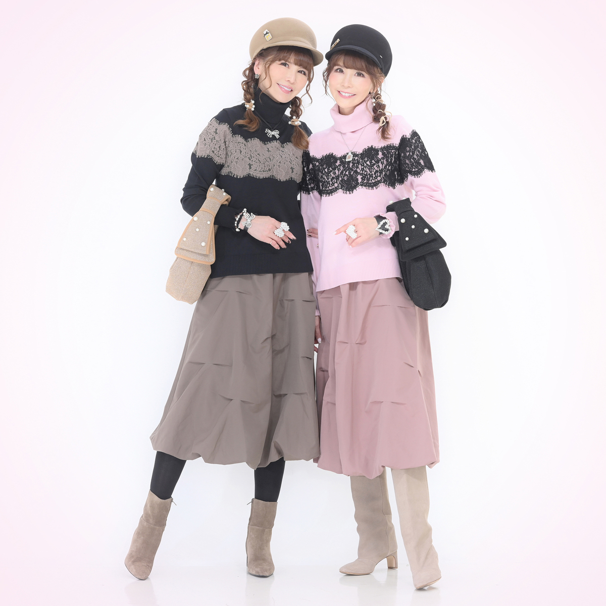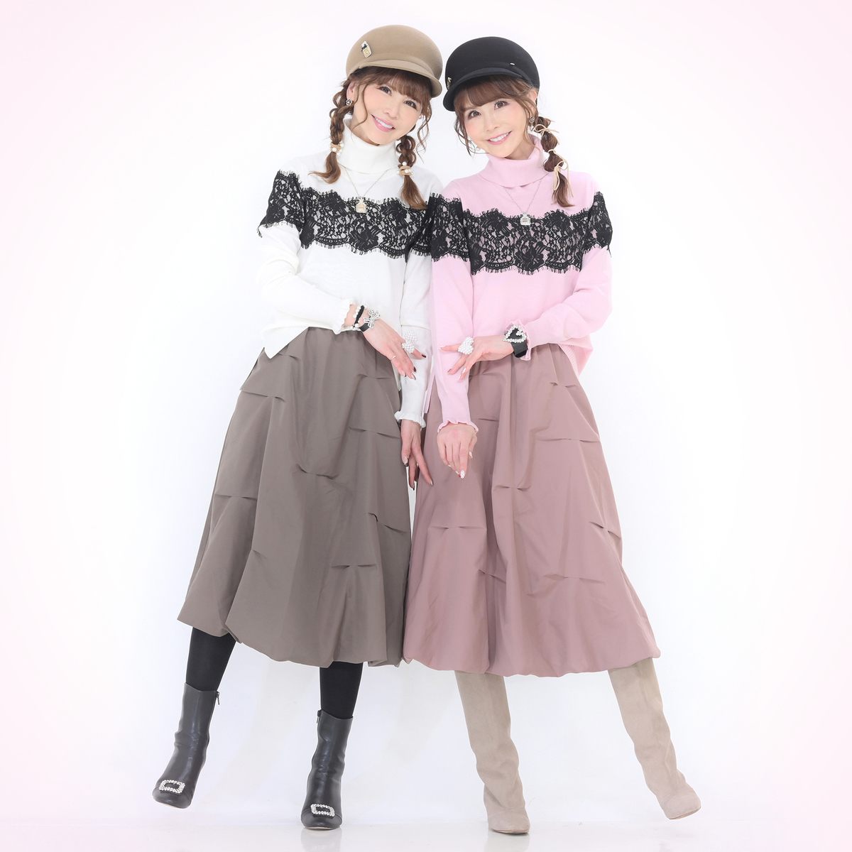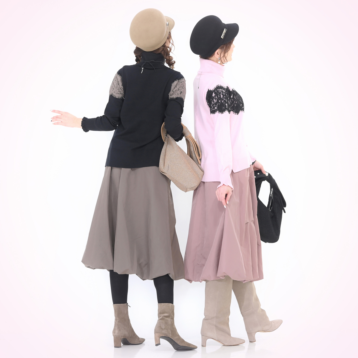 胸元から袖にかけて太めのコードレースを贅沢にあしらったタートルニットプルオーバー。繊細なレースが存在感を放ちます