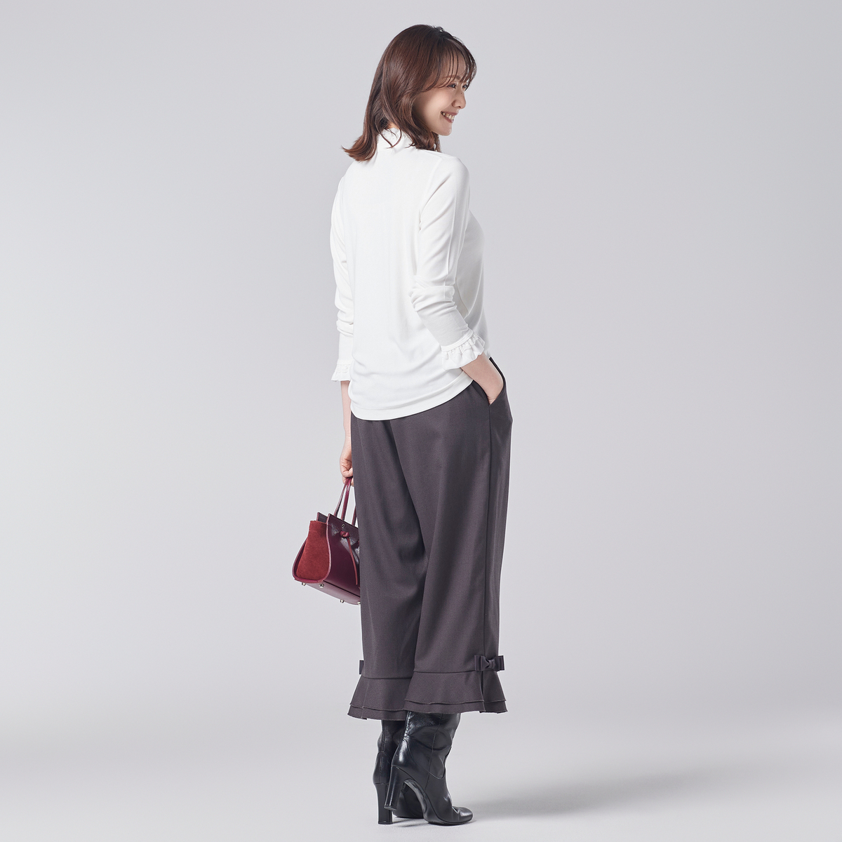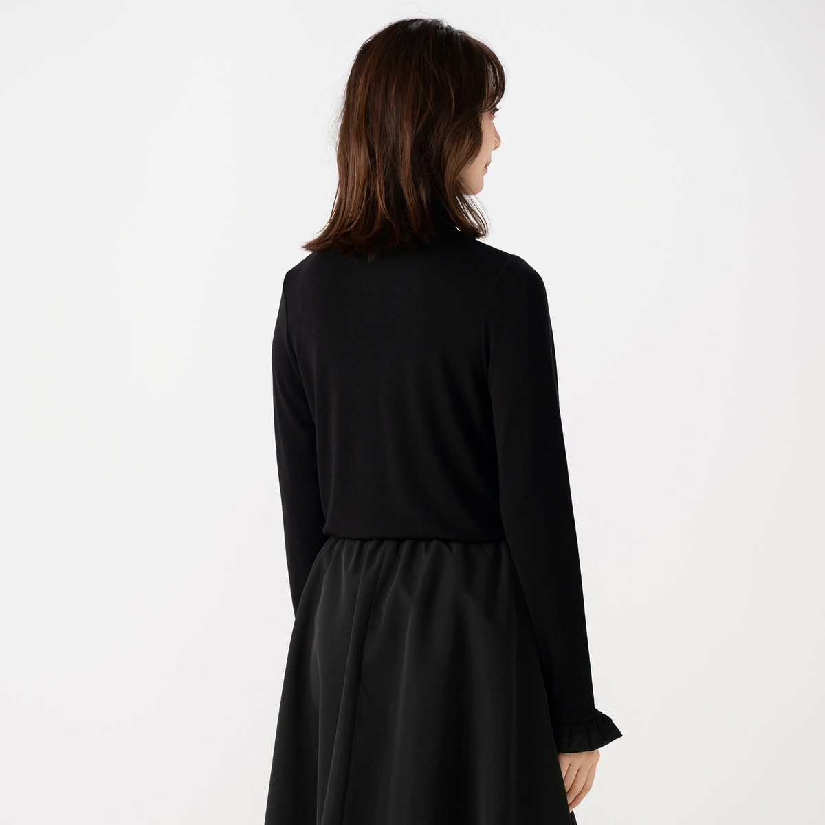 なめらかな肌触りと伸縮性を持つベアフライスを使用。フライス編みならではの柔らかな伸びと戻りがあり、体のラインにしなやかにフィットする着心地の良さです