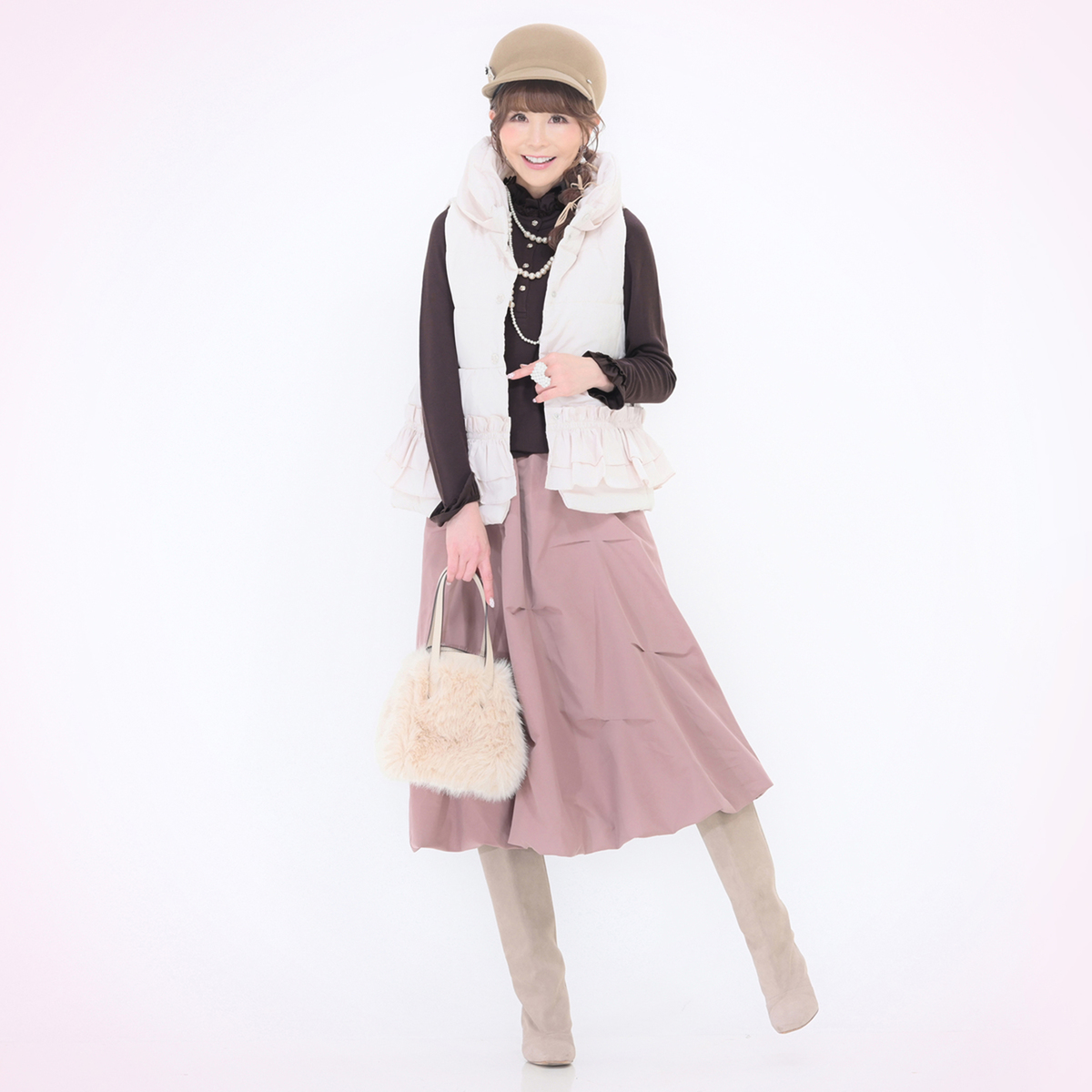 チョコレートのМサイズ買いました。良い色です。テロンテロンな生地で何だか癒されます。私はお腹ポッコリなので1枚だけで着れず…返品か?と思いましたが、先日のTSVのブラウス(ベージュ)が首周り広いので、上から着るとお腹が隠れて、首元寒くなく、可愛い手首のフリルが見えて丁度良かったです。ラメチュールスカートのブラウンと合わせると、とても可愛いブラウンコーデが完成しました。さとみさんが白のベストと合わせられてたので、ベスも今日買いました。&LOVE大好きです。