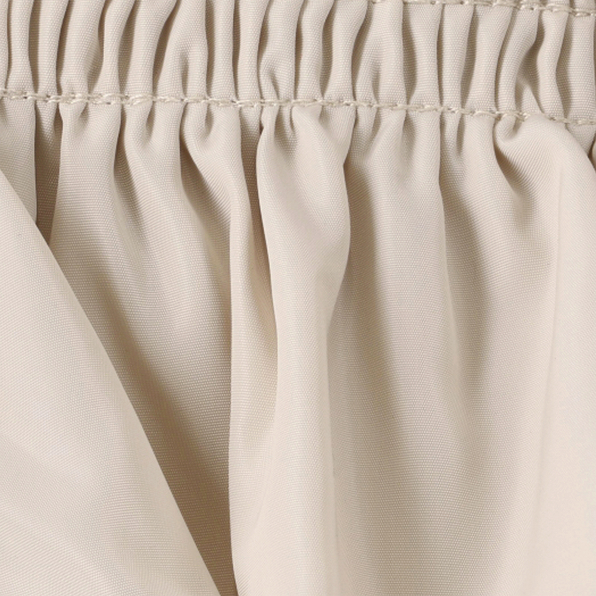 首元にボリュームのあるスタンドカラーを配し、お顔まわりを華やかに見せてくれます。前後に複数段の切り替えとギャザーを施し、マットな生地感が甘すぎない大人の可愛らしさを演出。両脇には便利なポケット付きで、実用性も兼ね備えています