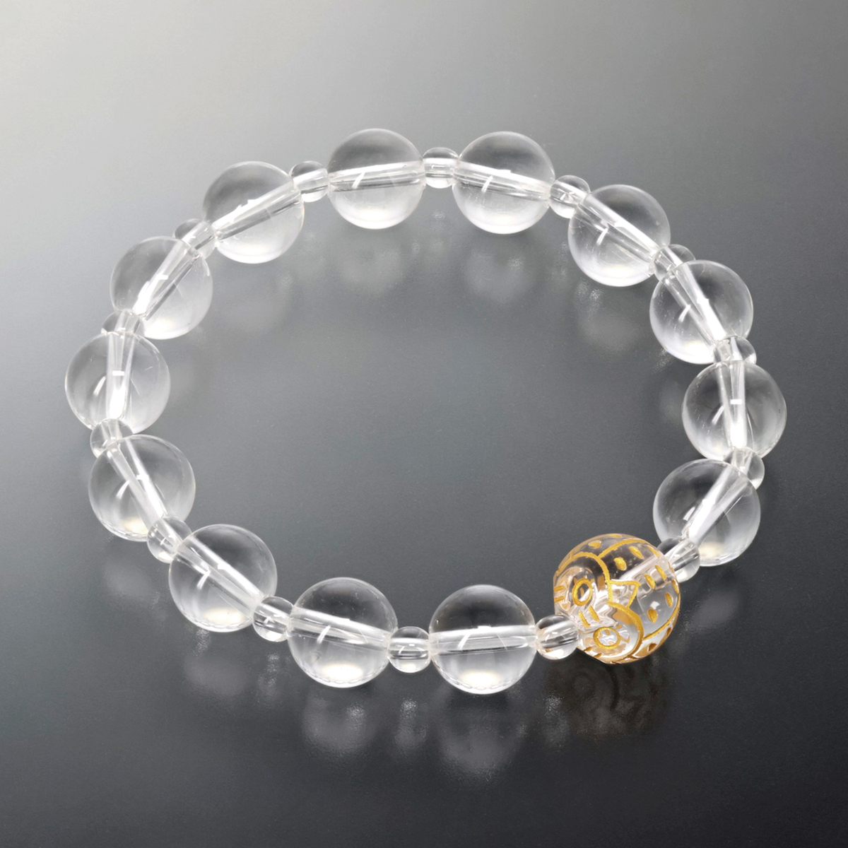 ふくろうをあしらった水晶のサークルブレス。パワーストーンとしても人気の水晶に、ふくろうを手彫りで刻みました。丸玉のみで仕立てたシンプルなデザインは、ユニセックスで楽しめるのも魅力。幸運・浄化・純粋・無垢という石言葉を持つ水晶が、日常にそっと寄り添います