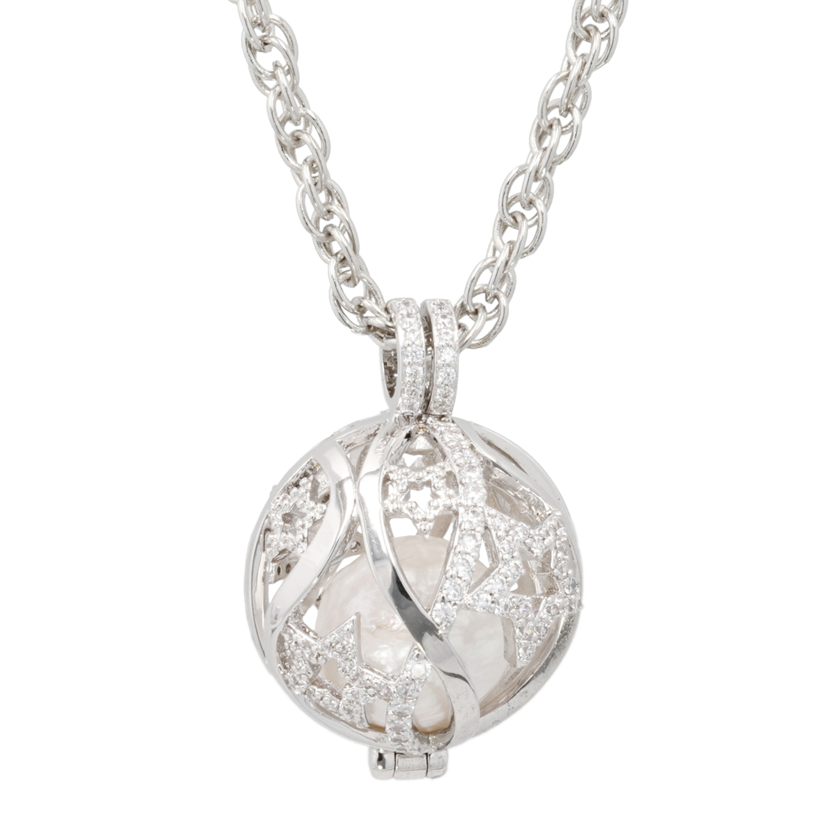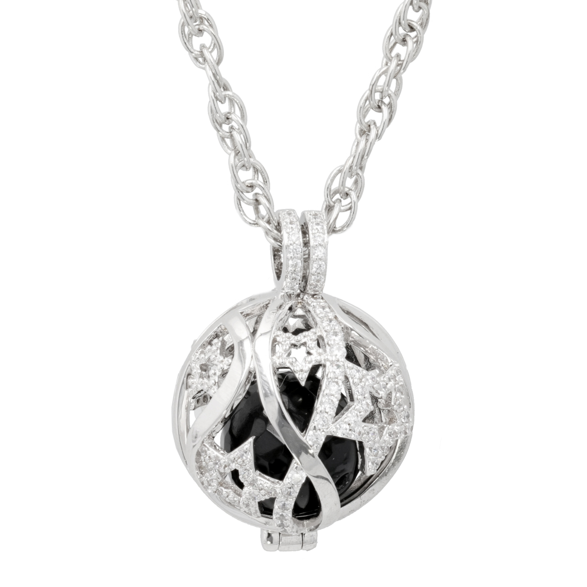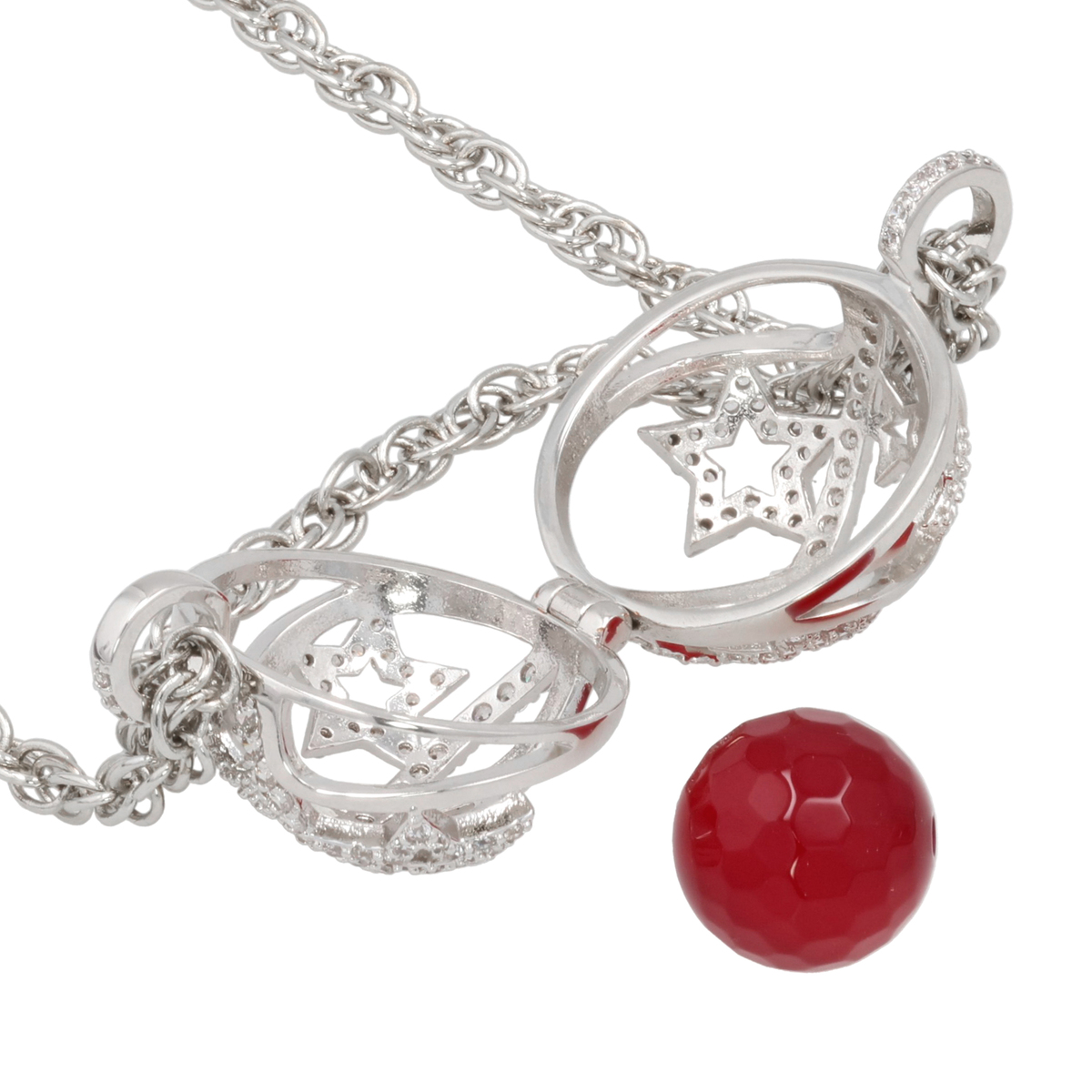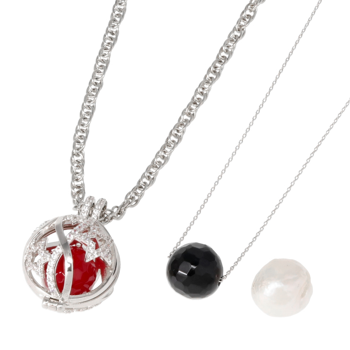 キュービックジルコニアが輝く星柄ペンダント。ペンダントヘッドは開閉できる仕様で、中のビーズパーツを変えることが可能です*。ブラックカルセドニー(着色)、レッドクォーツ(着色)、淡水パール(オーロラリップル)の3種類が付属しています