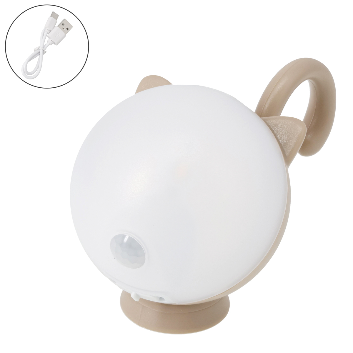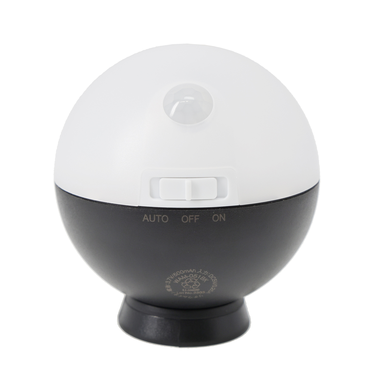 [商品内容] ・本体 ・台座 ・USBケーブル(Type-A to C) ※ACアダプターは付属しません [サイズ] 高さ7.4×幅6.8×奥行11.2cm※台座装着時 [重量]約110g(台座含む) [充電時間]約3.5時間 [電池寿命] AUTOモード:75日(1日10回点灯) ONモード:連続3時間 ※使用環境や電池の性能により異なる [電球]0.5W [全光束]50ルーメン [仕様] 探知方式:焦電型赤外線センサー 探知範囲:最大100度最遠3m(取り付け高さ 2m) モード切替:AUTO(15秒点灯)/OFF/ON(常時点灯) [使用方法] 最初に初期充電を行う。充電中:赤LED点灯、充電完了:緑LED点灯 <モード切替スイッチ操作方法> AUTO:周囲が暗い時に人が来ると人感センサーが探知し、自動点灯する。人がいなくなると15秒後消灯する そのまま人がいると点灯時間は延長する OFF:電源を切る ON:スイッチがついている間点灯する センサー探知範囲:最遠3m×最大100度の範囲で人や動く熱源を探知する ・取付高さは2m以下です。探知させたい方向にセンサーを向けてください ・取付高さが低いと探知範囲は狭くなります ・夏場、周囲の温度が高くなると探知が鈍くなります ・本体にむかって人が直進した場合は探知が極端に短くなります。左右に横切る場所に取り付けてください ・エアコンや風などでゆれる植物やカーテンの近くは誤作動や消灯しない原因になります ■取り扱い説明を充分にご確認の上、ご使用下さい 【中国製】 [注意事項] ※取付場所はもし落下しても安全な場所に取り付ける ※落下して事故や損傷のおそれがあります。また、落下による機器の破損やトラブル等の一切の責任を負いかねます ※屋内用ですので、屋外の雨のかかる所、湿気の多い浴室等で使用しない ※LED球を直視しない ※本機に強い衝撃を与えたり、分解・改造しない ※使用後はスイッチを切り、消灯を確認してから保管する ※熱器具の近くで使用しない ※センサーは周囲の明るさと温度変化を探知するので、以下の場所で使用すると誤作動や動作しないときがあります ・風などでゆれる植物やカーテン、犬猫等の小動物近く ・エアコン等の送風を受けるところ ・大理石の床や壁等の光の反射を強く受けるところ ・強い振動を受けるところ ・ガラスや壁ごしの所 ・電波器具の近く ※本機の下に貴重品等を置かない ※周囲温度が10℃〜40℃の範囲で充電する ※直射日光の当たる場所や炎天下の車内などで保管・充電しない ※ 3か月以上バッテリー残量の少ない状態で保管すると充電できない恐れがあります。3か月に一度は充電する ※充電後は必ずUSB端子カバーをしっかりと閉じて埃が入らないようにする