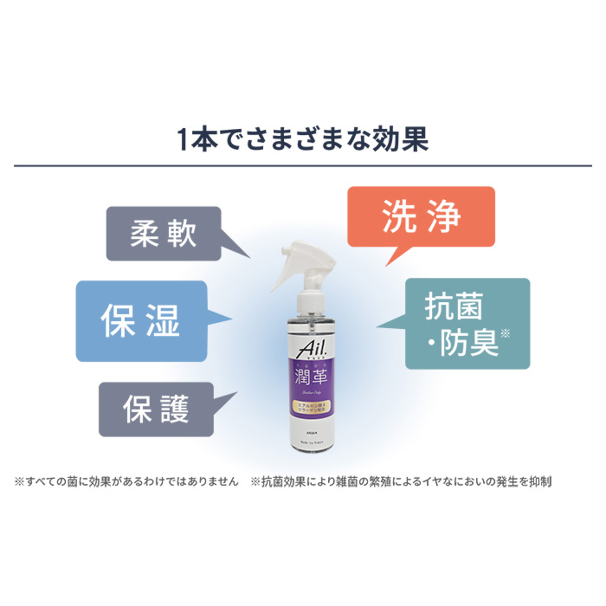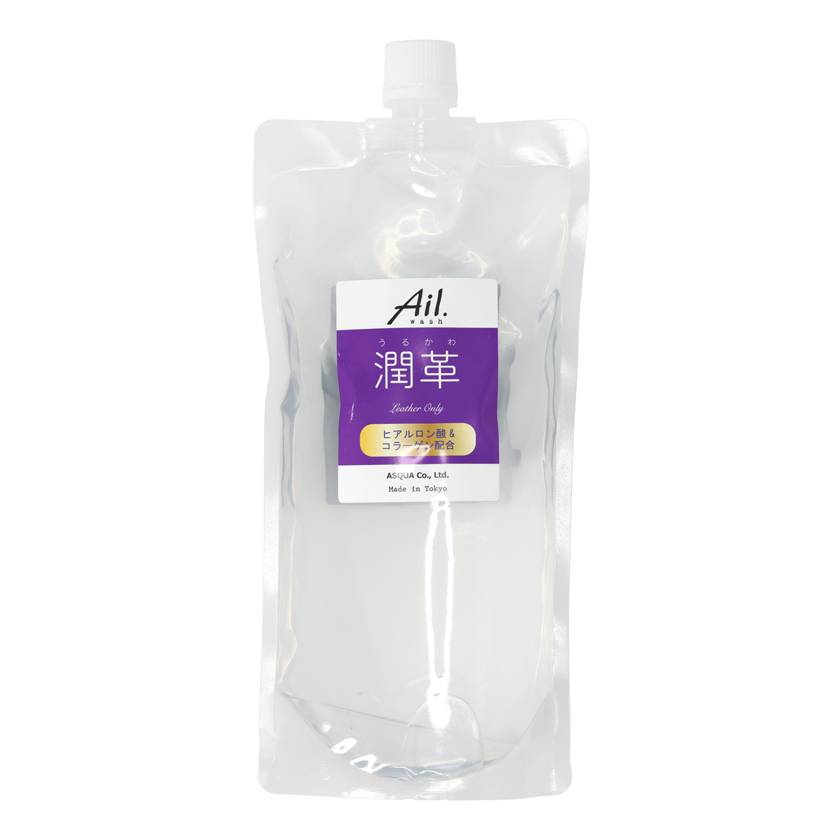 たっぷりの水分で革を洗い流すイメージで、表面上のカビ、皮脂、泥などの汚れを落とす、皮革用洗浄溶液。ヒアルロン酸に加え、コラーゲンも配合しています