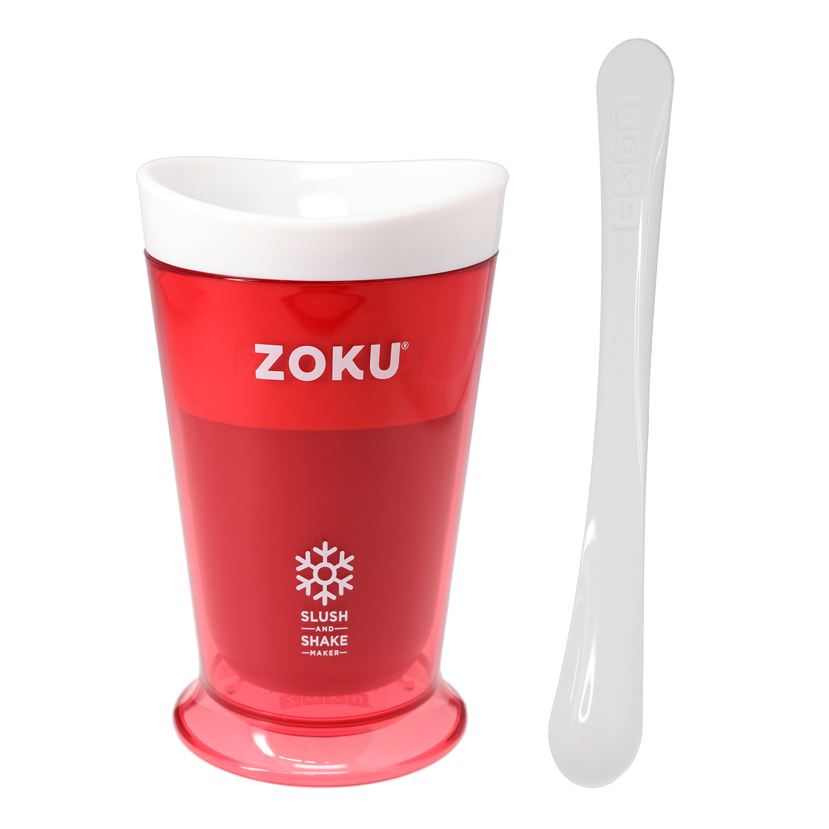 [商品内容] ・本体(インナーコア、アウタースリーブ) ・スラッシュスプーン [サイズ] 本体:幅10×奥行10×高さ16.8cm スラッシュスプーン:幅3×奥行0.7×高さ22cm [材質] インナーコア:ポリエチレン スリーブ:シリコン樹脂 アウタースリーブ:AS樹脂 スラッシュスプーン:ポリプロピレン [使用方法] 1.アウタースリーブからインナーコアを取り外し、インナーコアが完全に乾いていることを確認して、冷凍庫で8〜18時間凍らせます 2.凍らせたインナーコアを冷凍庫から取り出し、アウタースリーブにセットします 3.好きな飲み物をセットしたインナーコアの一定ラインまで注ぎ入れ、付属のスラッシュスプーンで混ぜます 飲み物を注いでから1〜2分待つと側面からだんだんと凍っていきます。付属のスラッシュスプーンで定期的に凍った部分をそぎ落とし、かき混ぜることで、飲み物の温度が急激に下がり、徐々に凍っていきます。これを繰り返すとフローズンドリンクが完成します 【中国製】 [注意事項] ※使用不可:食器洗い機、電子レンジ ※お子様だけのご使用はおやめください。お子様のそばでこ使用になる際は常に保護者様のもとでお取り扱いください ※本品は小さい部品を使用しています。破損などがあった場合、お子様が喉に詰まらせる恐れがこざいますので十分注意してご使用ください ※ご使用の前に中性洗剤とぬるま湯で洗ってください ※人工甘味料を含んだジュース(アスパルテーム、サッカリンなど)は固まらない可能性があるのでご注意ください ※シンナー、ベンジン等有機溶媒で汚れを拭きとらないでください。変色の原因となります ※電子レンジでのご使用はおやめください ※本体が冷たいまま洗浄すると洗う際に洗浄水が凍ってしまう恐れがあります。本体が常温になってから洗浄してください ※食器洗浄機使用不可。中性洗剤を使用して優しく洗浄してください。クレンザーや固いものでのこすり洗いは避けてください ※先の尖ったものや器具を本体の型にご使用にならないでください。内部に傷が付く恐れがあります。お召し上がりの際は、付属のスプーンをご使用ください ※火のそばやホットプレート、ストーブ、また熱源に近いところではご使用にならないでください ※アウタースリーブを冷凍庫に入れないでください ※インナーコアを冷凍庫で上下逆さまにご使用・保管はしないでください ※ご使用後は中性洗剤とぬるま湯で洗ってください。研磨剤の入った洗剤や、硬いスポンジで表面を擦らないでください ※冷凍庫に入れる前に表面に水滴がついていないことを確認してください ※破損の恐れがありますので、強い衝撃・圧力等を与えないでください。高いところから故意に落としたり投げたりしないでください ※一般家庭での使用に限ります ※絶対に食器洗浄機に入れないでください。常に平らな場所で直立させて保管してください ※スラッシュシェイクメーカーとすべての付属品は中性洗剤と水で洗ってください。研磨剤が入った洗剤や表面の固いスポンジなどで擦らないでください ※冷凍庫に入れる前に表面に水滴などがついていないことを確認してください。使っていない時は冷凍庫で保管しておけばいつでも使うことができ便利です