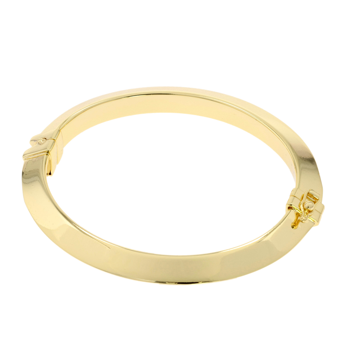 [地金]真鍮 最大幅(約) 7.4mm 総重量(約) 13.6g 留具の形状 差し込み式(セーフティー金具付) 内周(約) 内周:17.0cm チャームの有無 無 [メッキ] 金色メッキ ■素材の大きさ・形・色合い、製品のサイズは1点1点多少異なります ■セーフティー金具付き 【イタリア製】